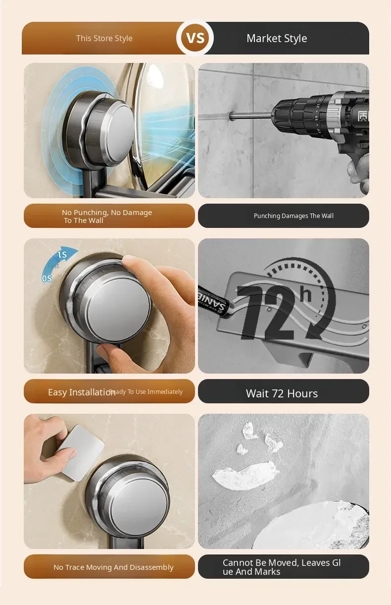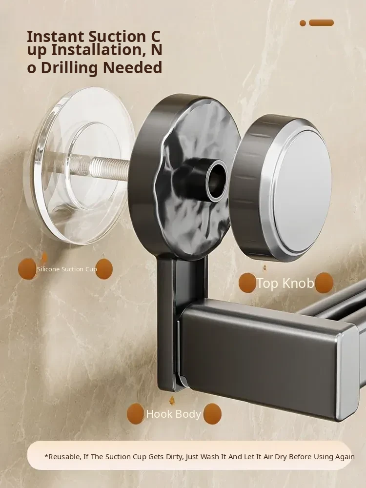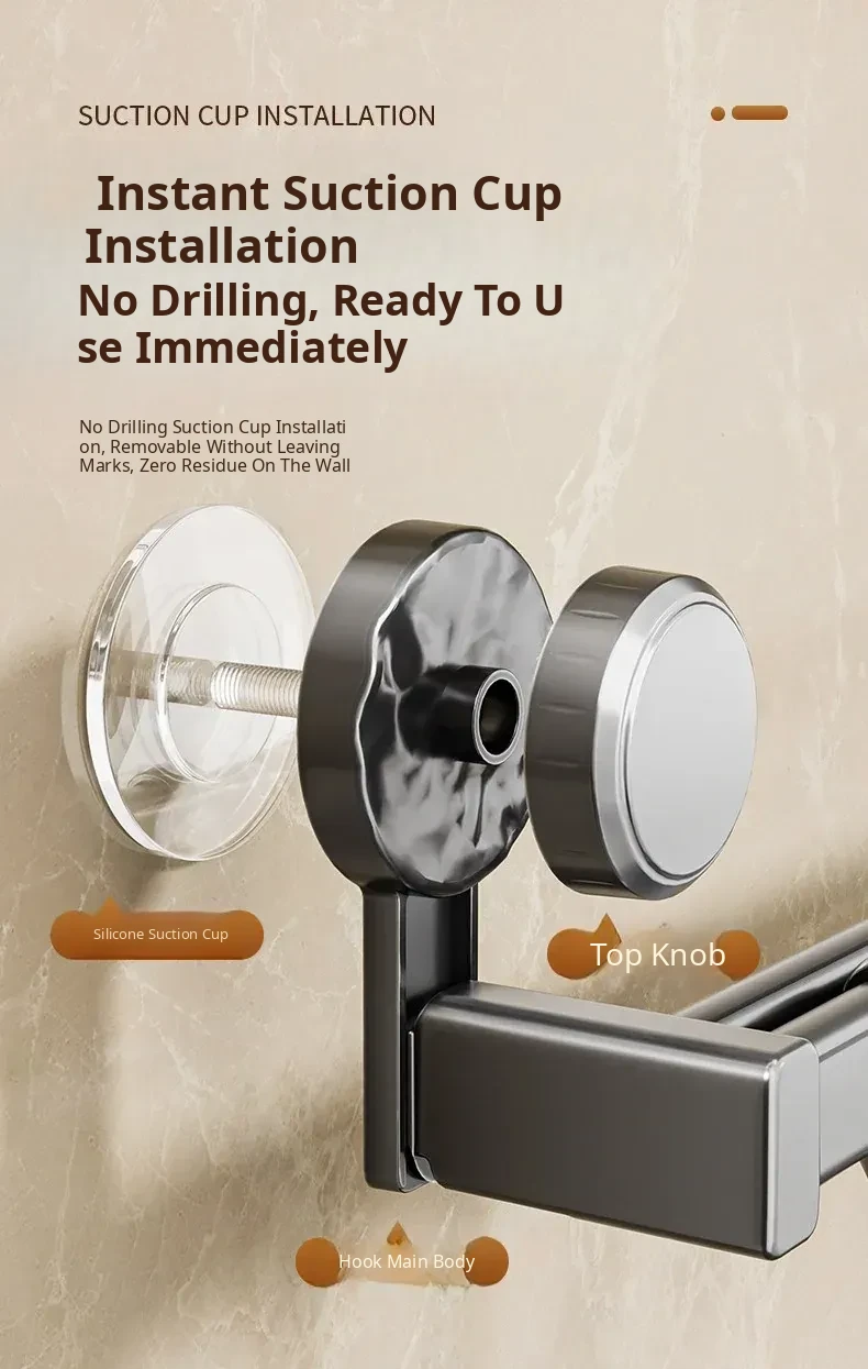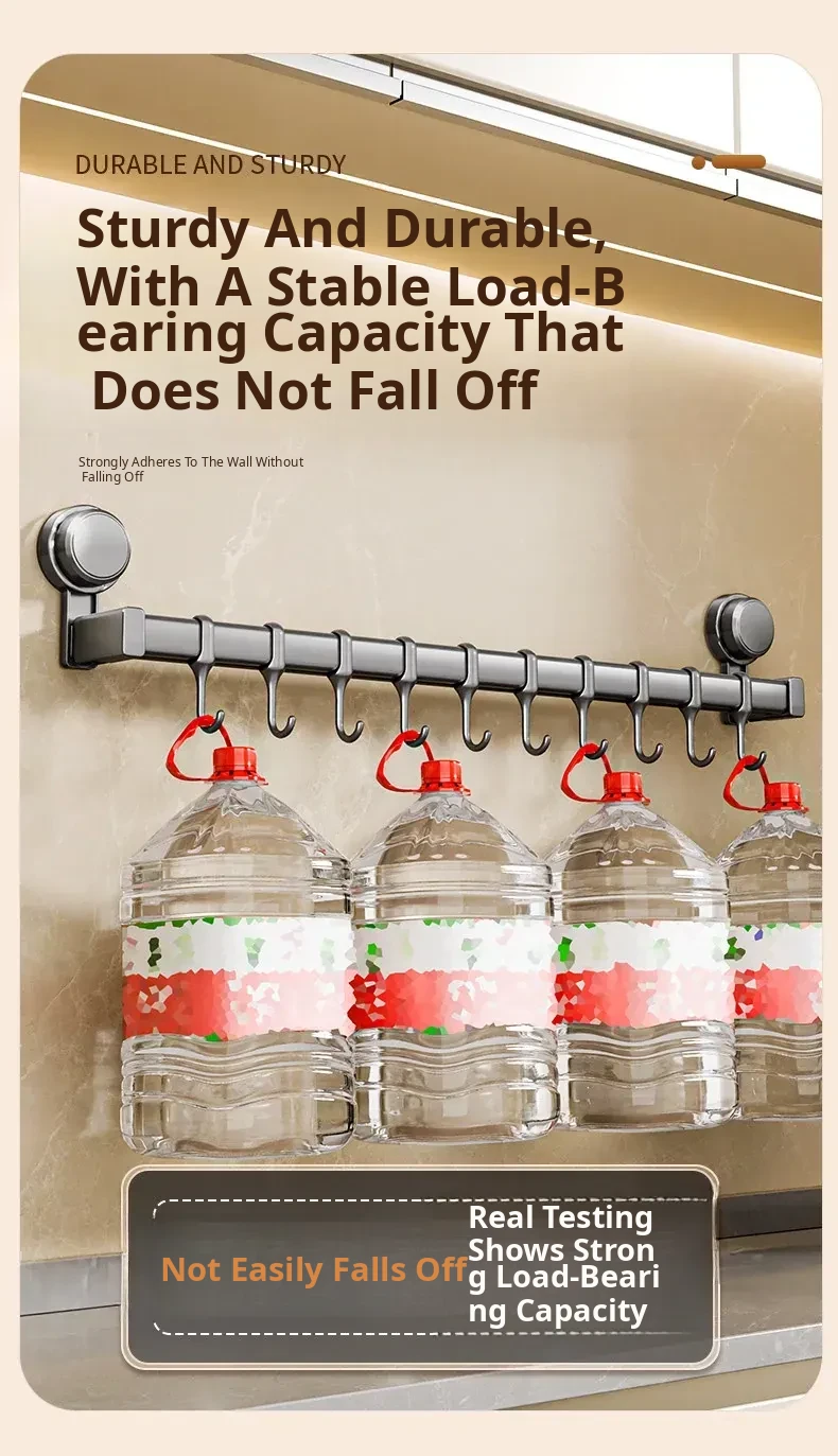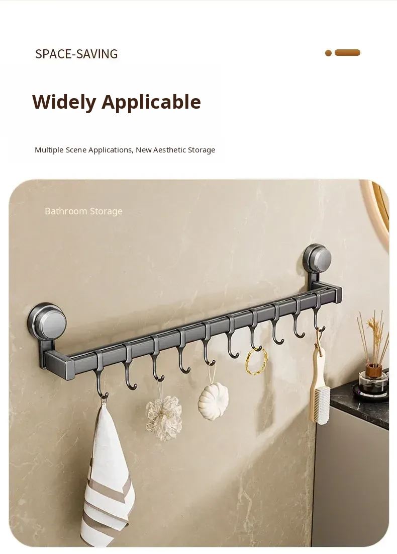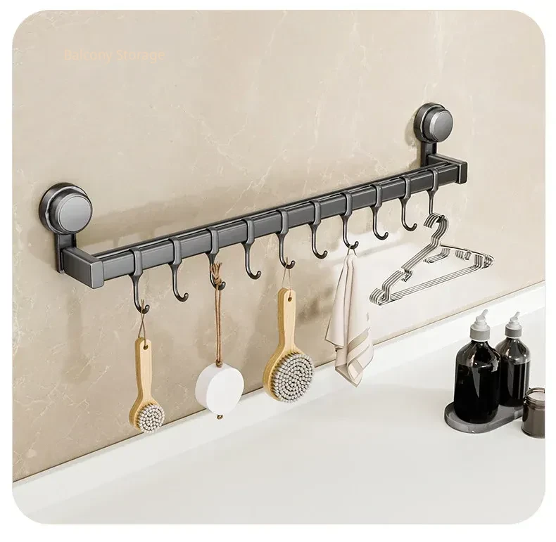 Suction Cup Kitchen Hook Rack - No Drill Hanging Organizer for Utensils, Pots, and Knives - Space-Saving Storage Solution for a Tidy Kitchen