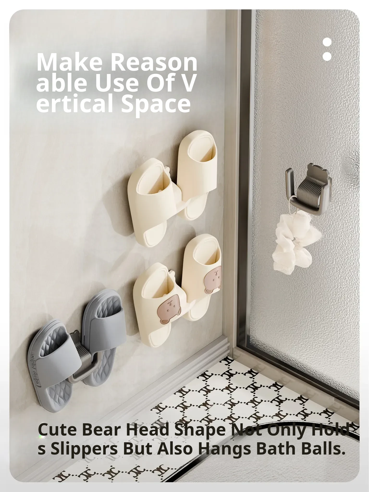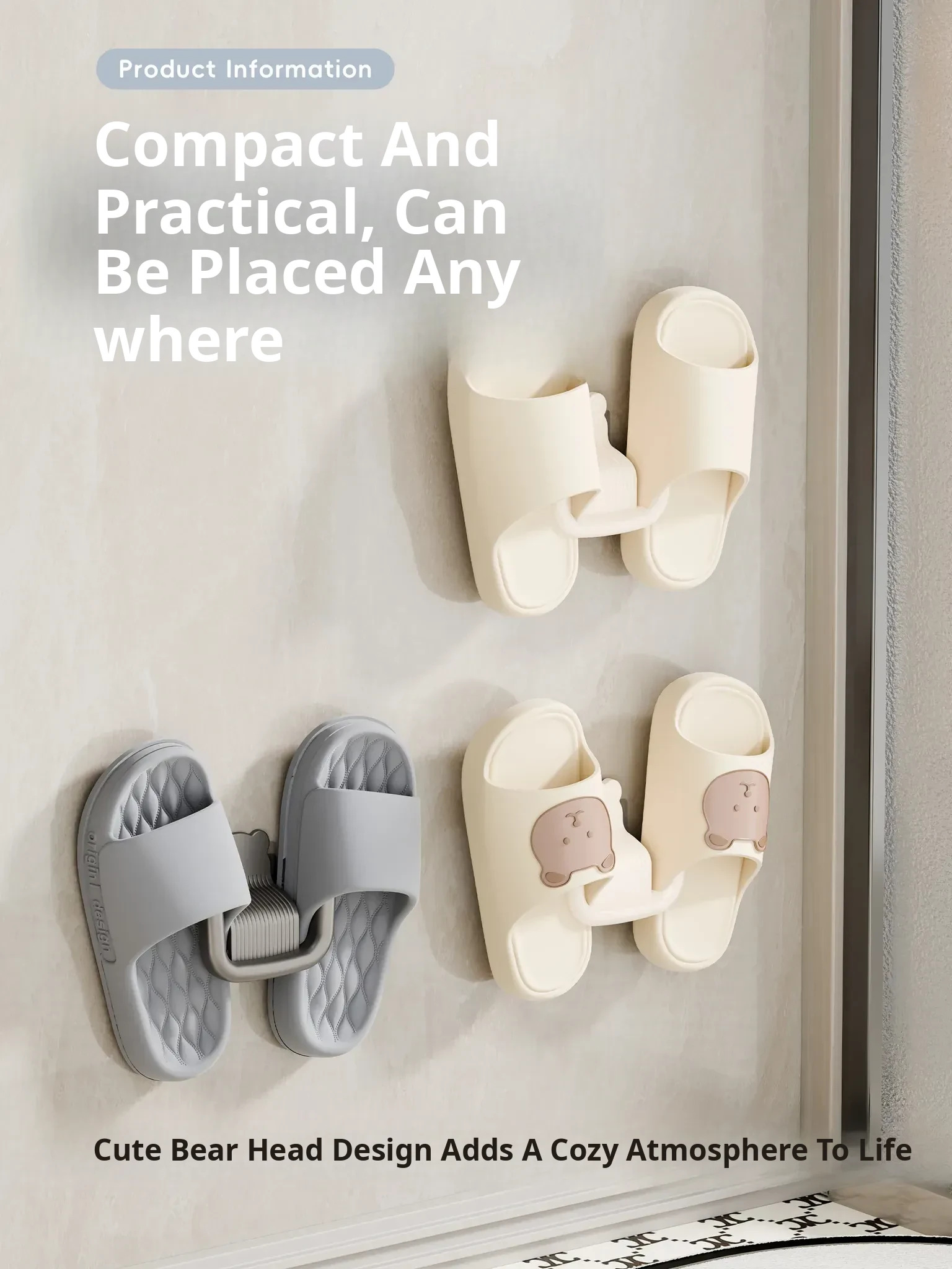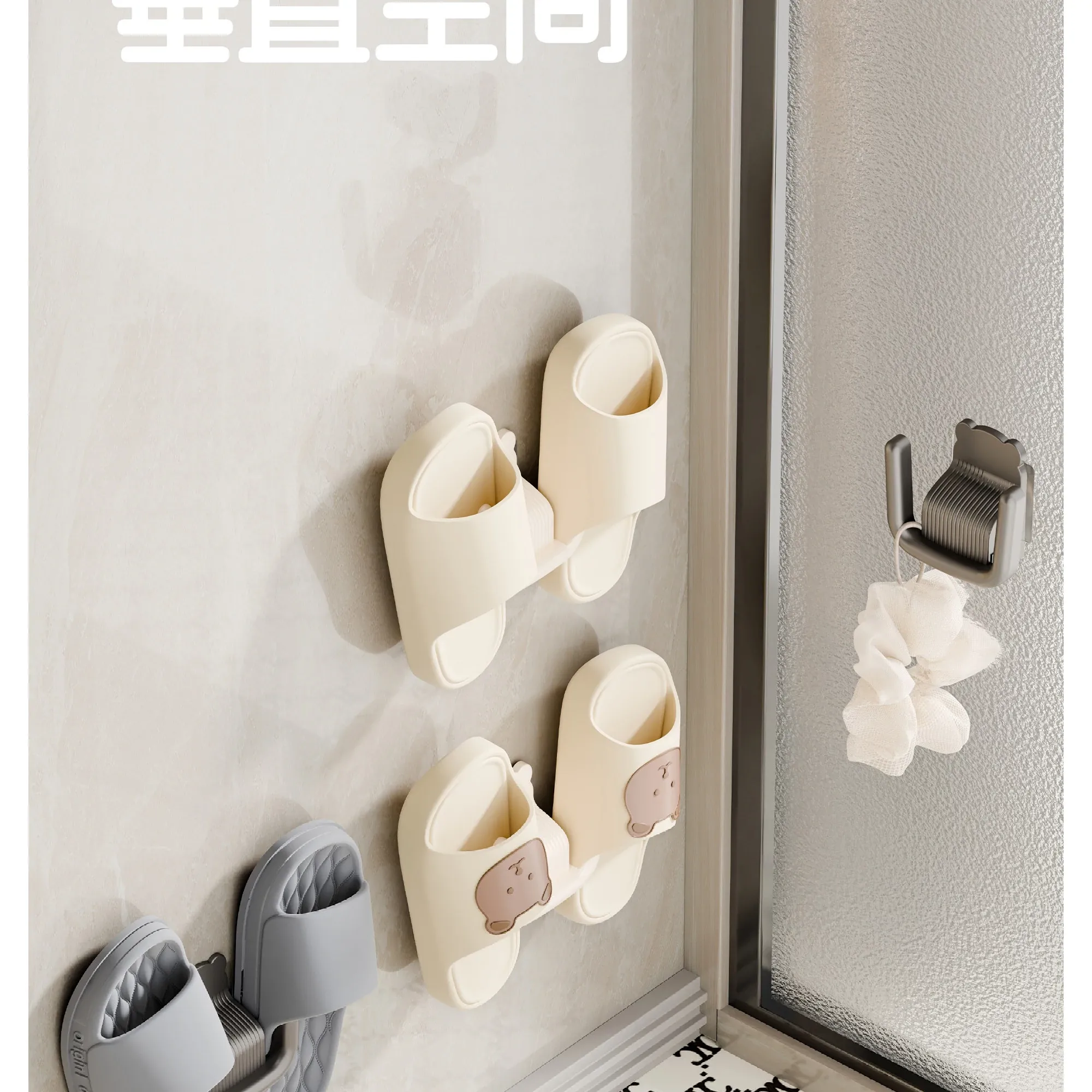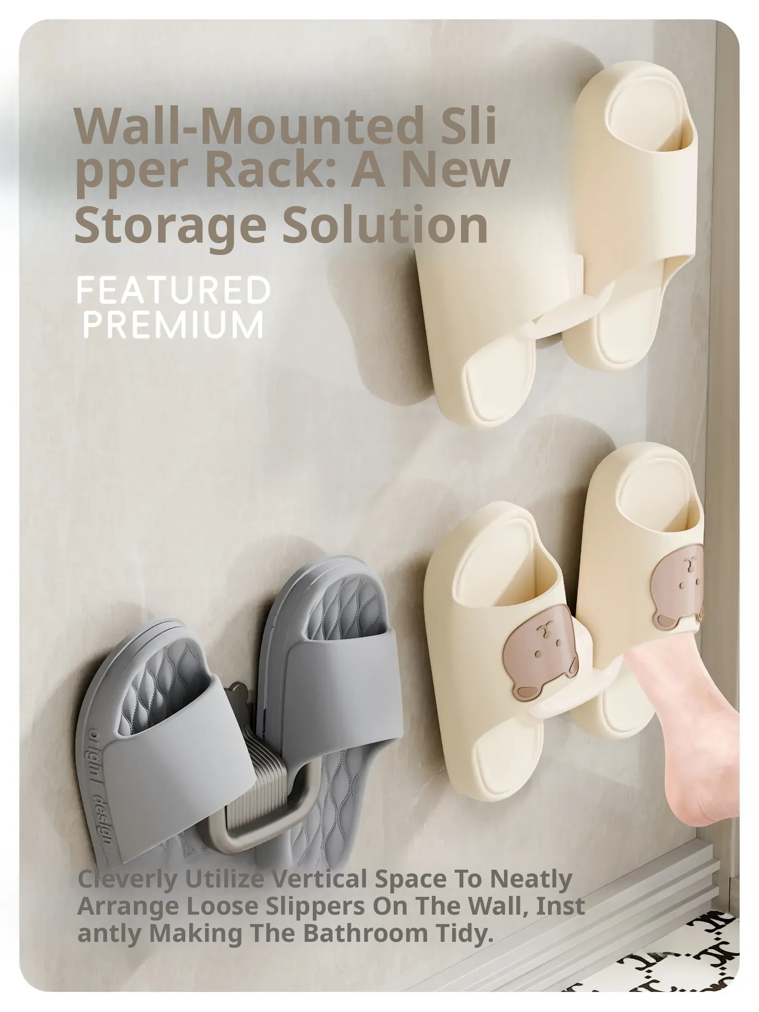 Wall-Mounted Slipper Rack [Cream Color] 1 Pack