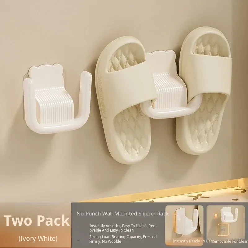 Wall-Mounted Slipper Rack [Cream Color] 2 Pack