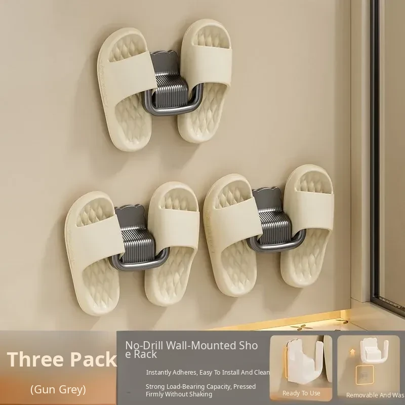 Wall-Mounted Slipper Rack [Gun Gray] 1 Pack