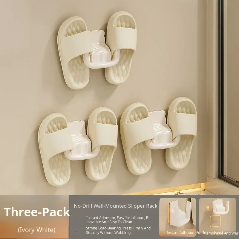 Wall-Mounted Slipper Rack [Cream Color] 3 Pack