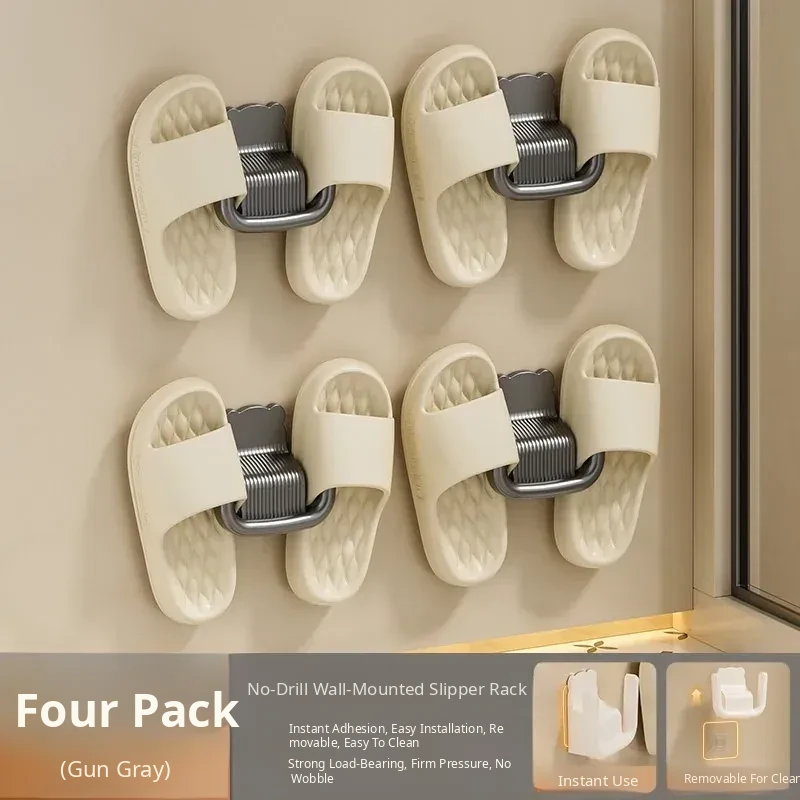 Wall-Mounted Slipper Rack [Gun Gray] 4 Pack