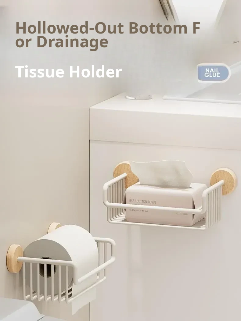 Wall-Mounted Cream Wind Toilet Paper Holder - No Drilling Required, Perfect for Home Bathrooms - Convenient Tissue and Toilet Paper Organizer