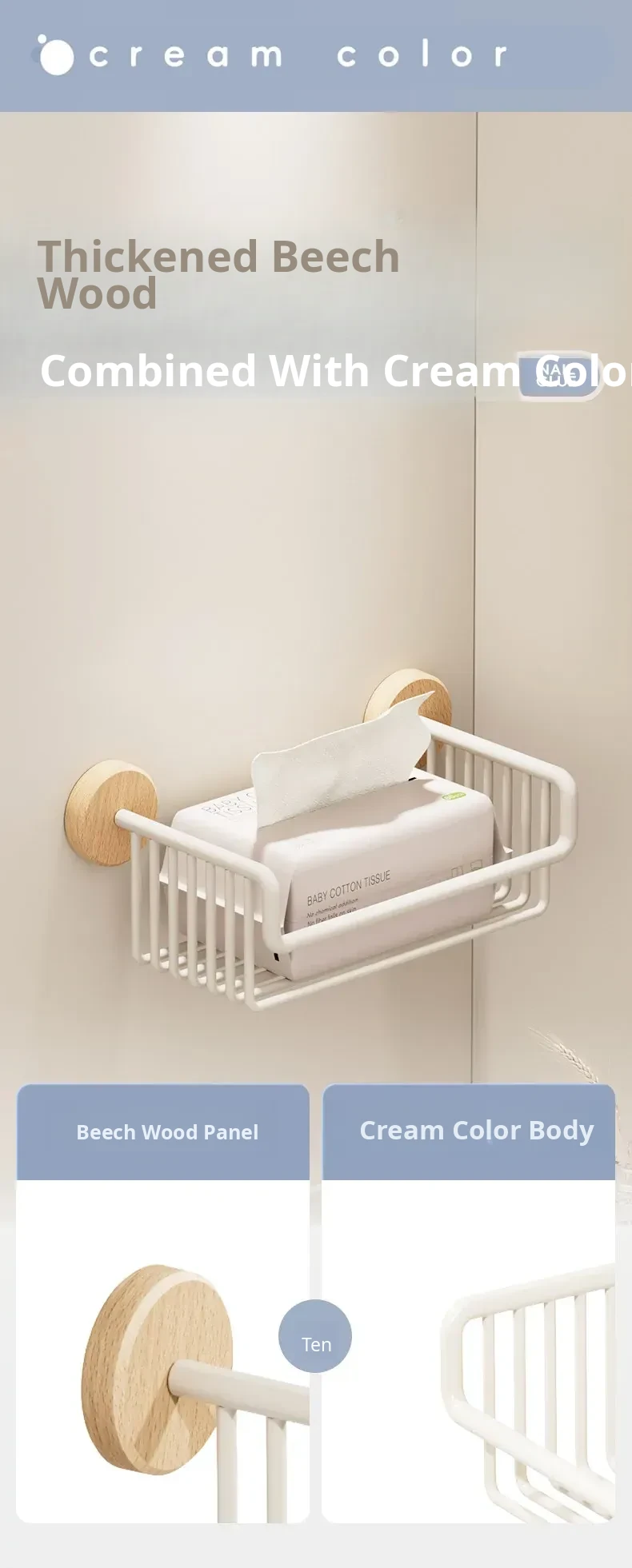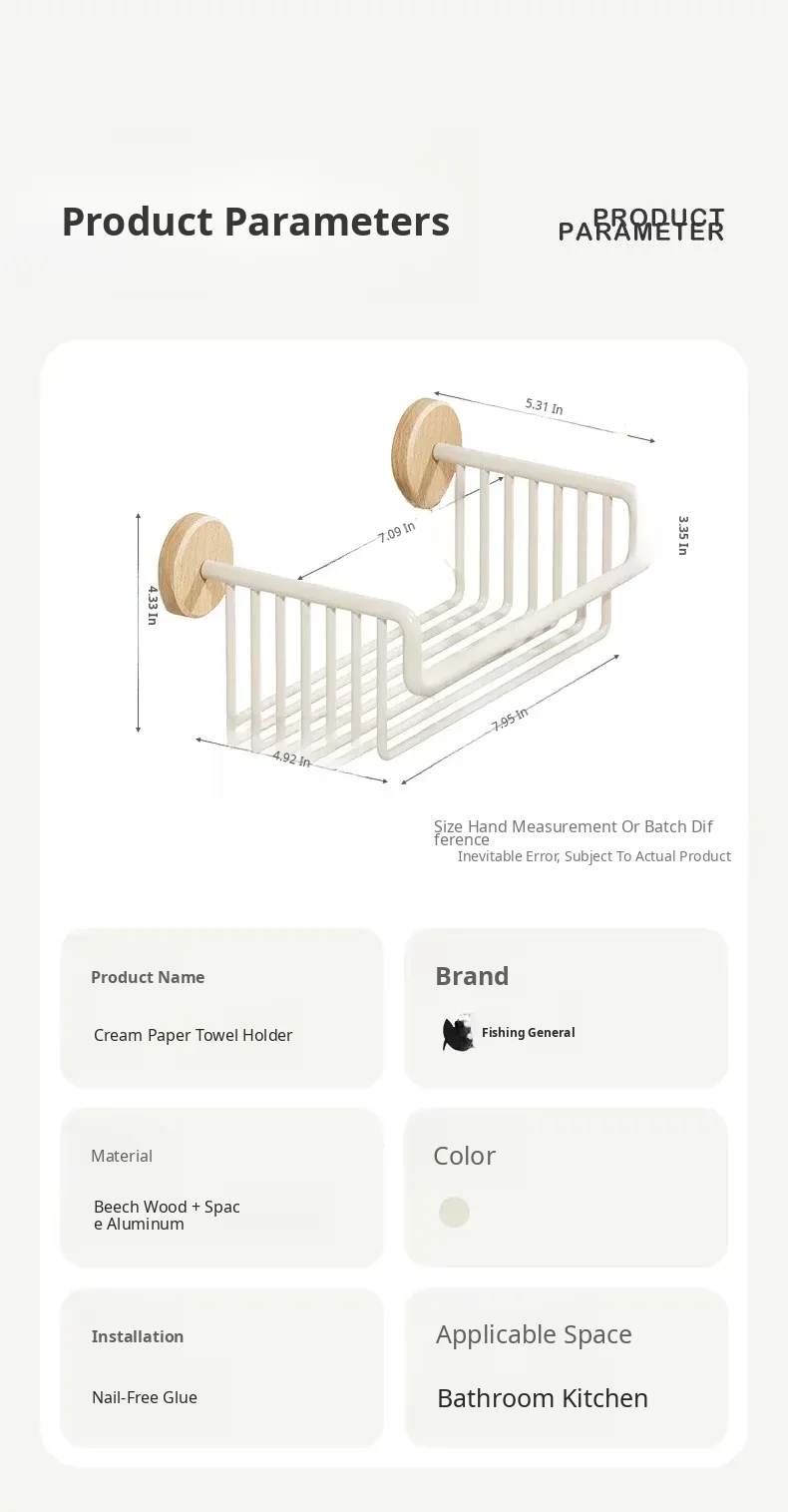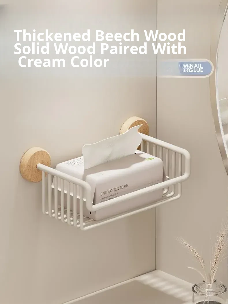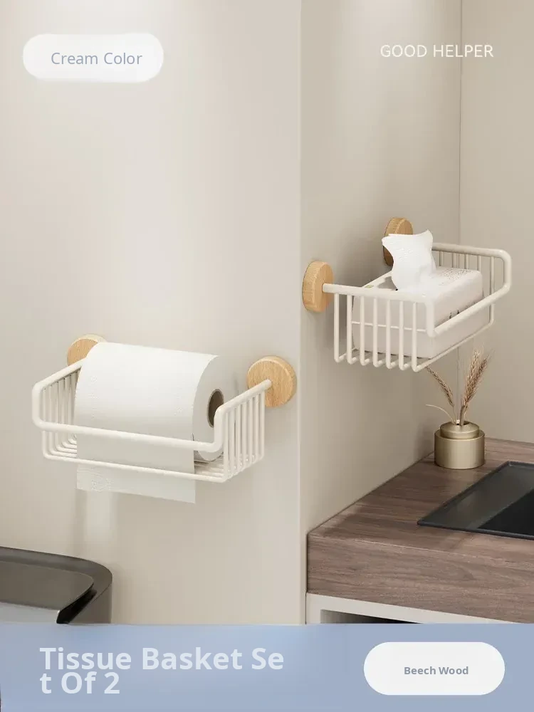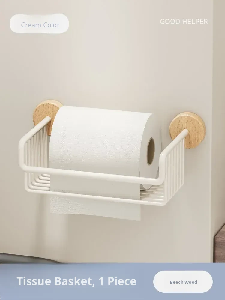 Cream Style + Beech Wood [Thickened Space Aluminum Paper Towel Basket]