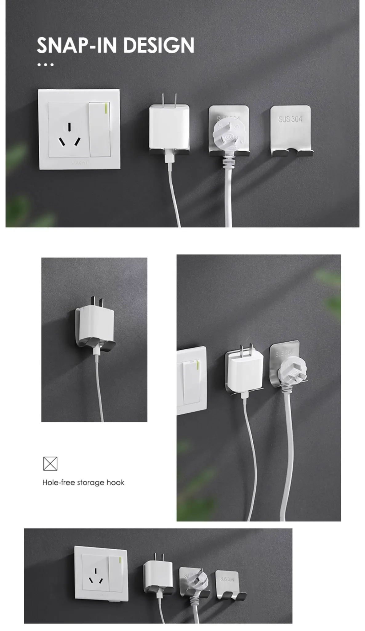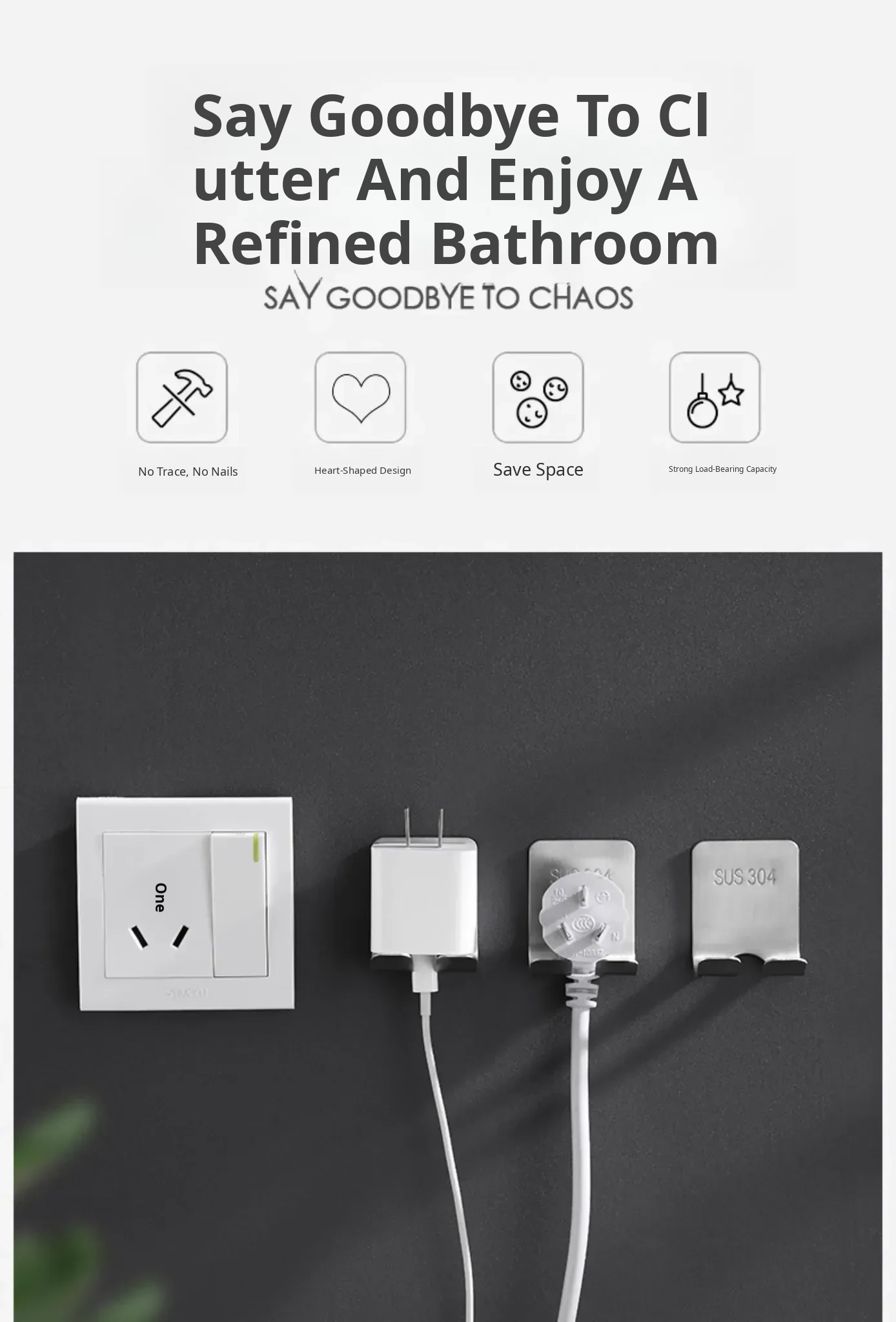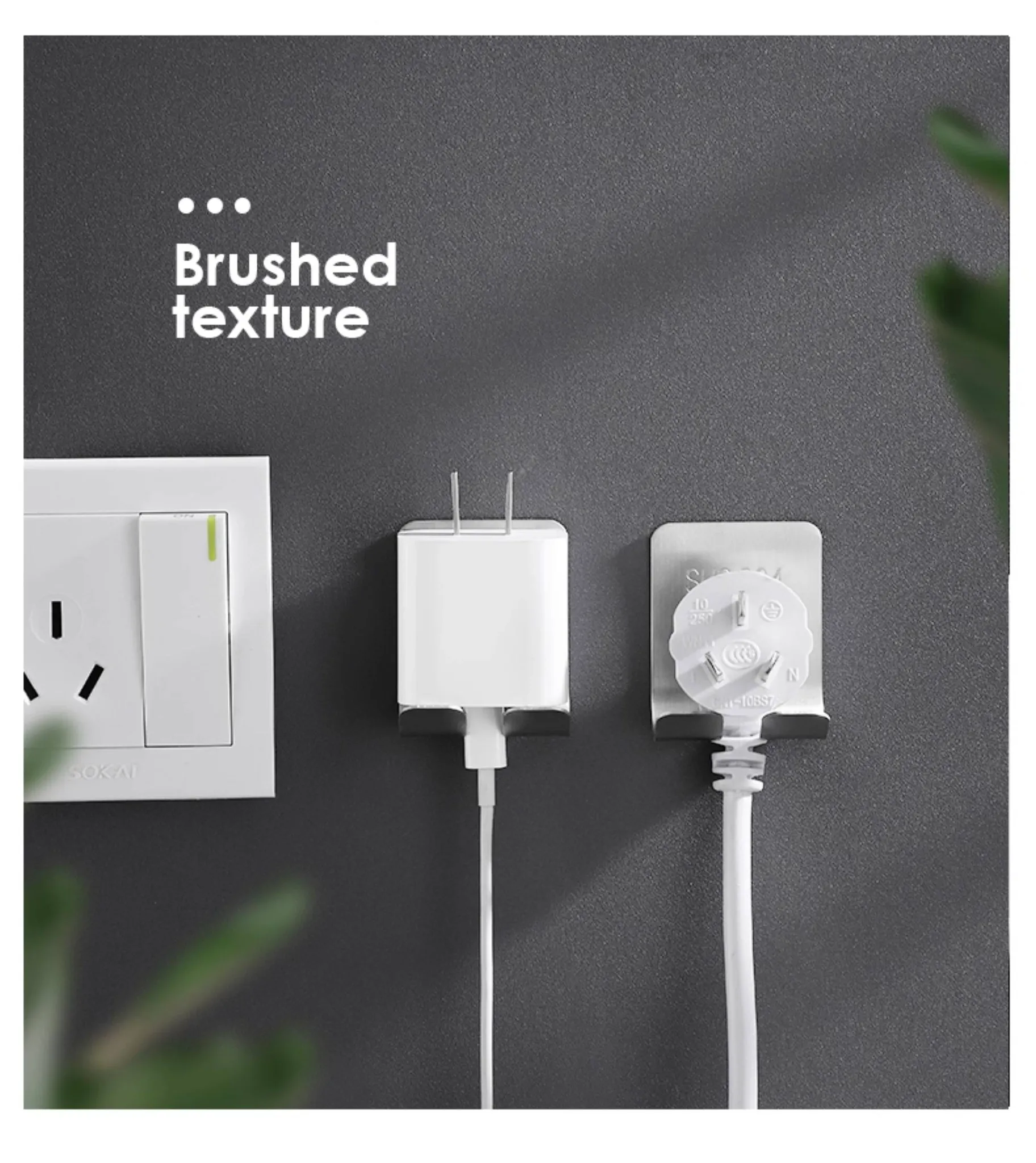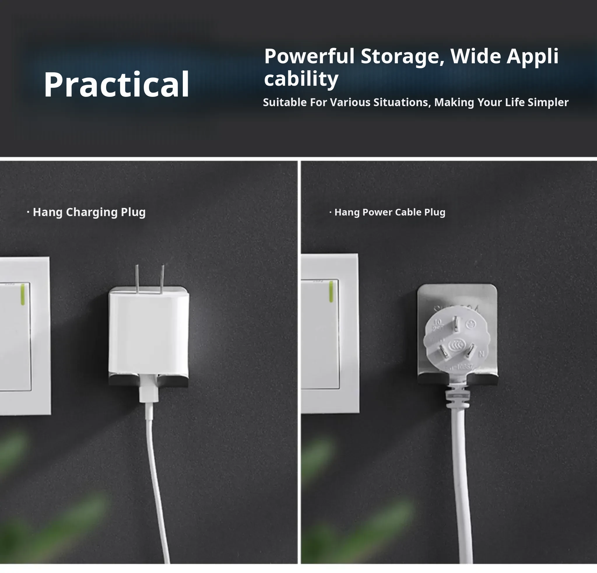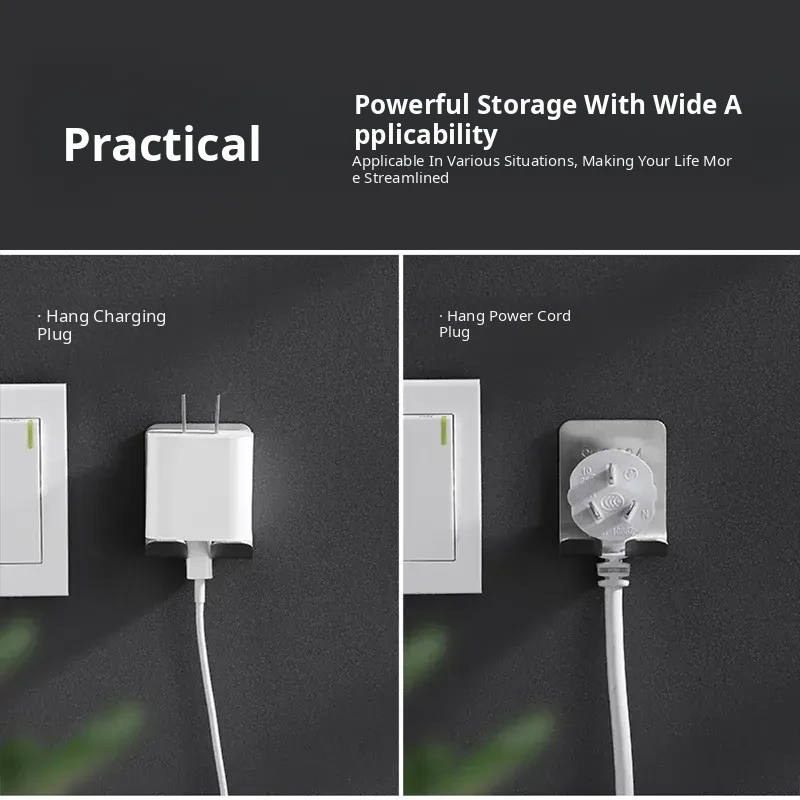 Wall-Mounted Power Strip and Charger Organizer - No Drill, Easy Installation for Kitchen and Home, Space-Saving Hook for Neat Cable Management