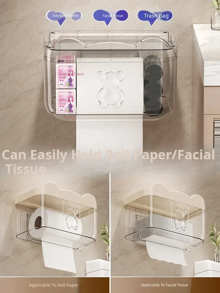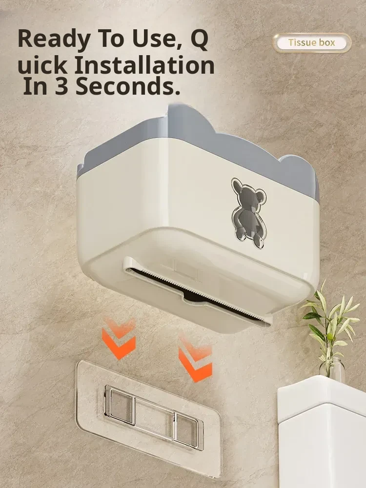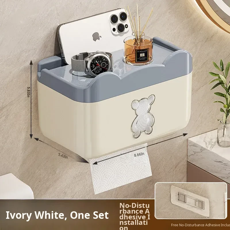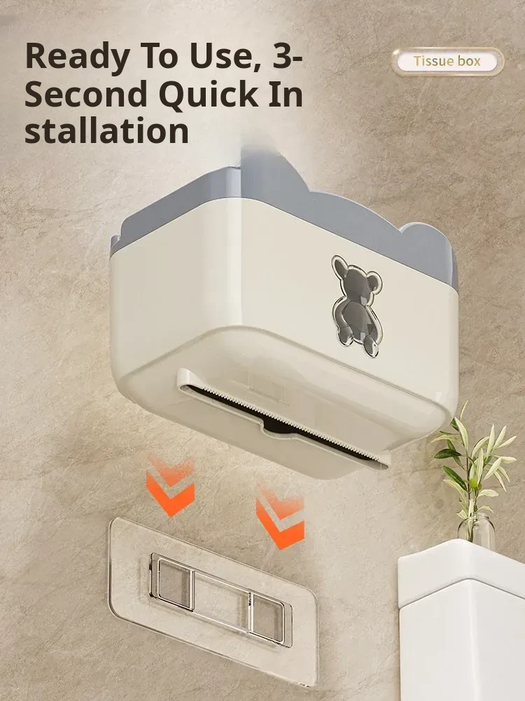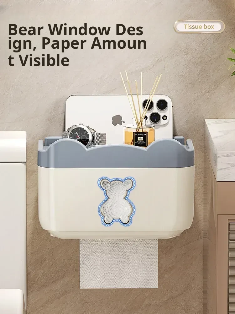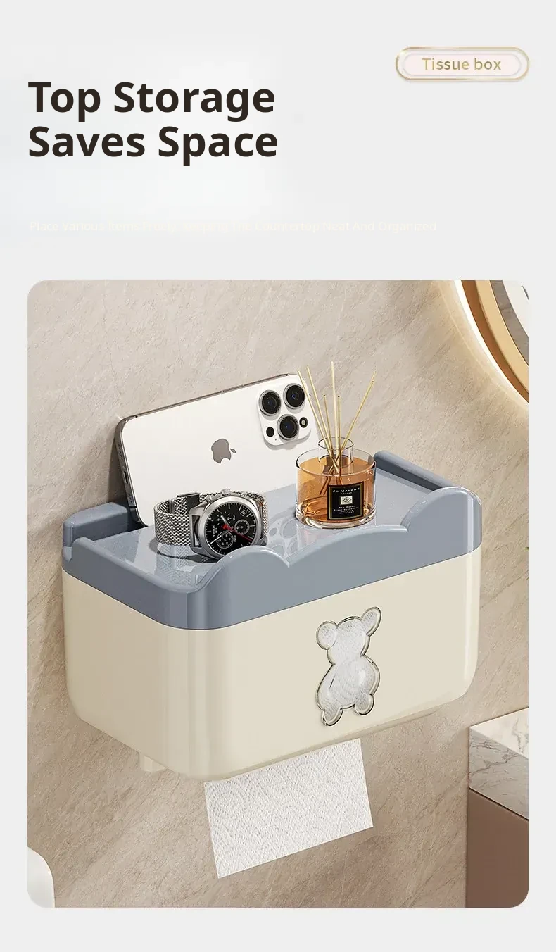 Wall-Mounted Waterproof Bear Tissue Box - No Drilling Required, Perfect for Bathroom Storage of Toilet Paper and Tissues, Stylish and Functional Design