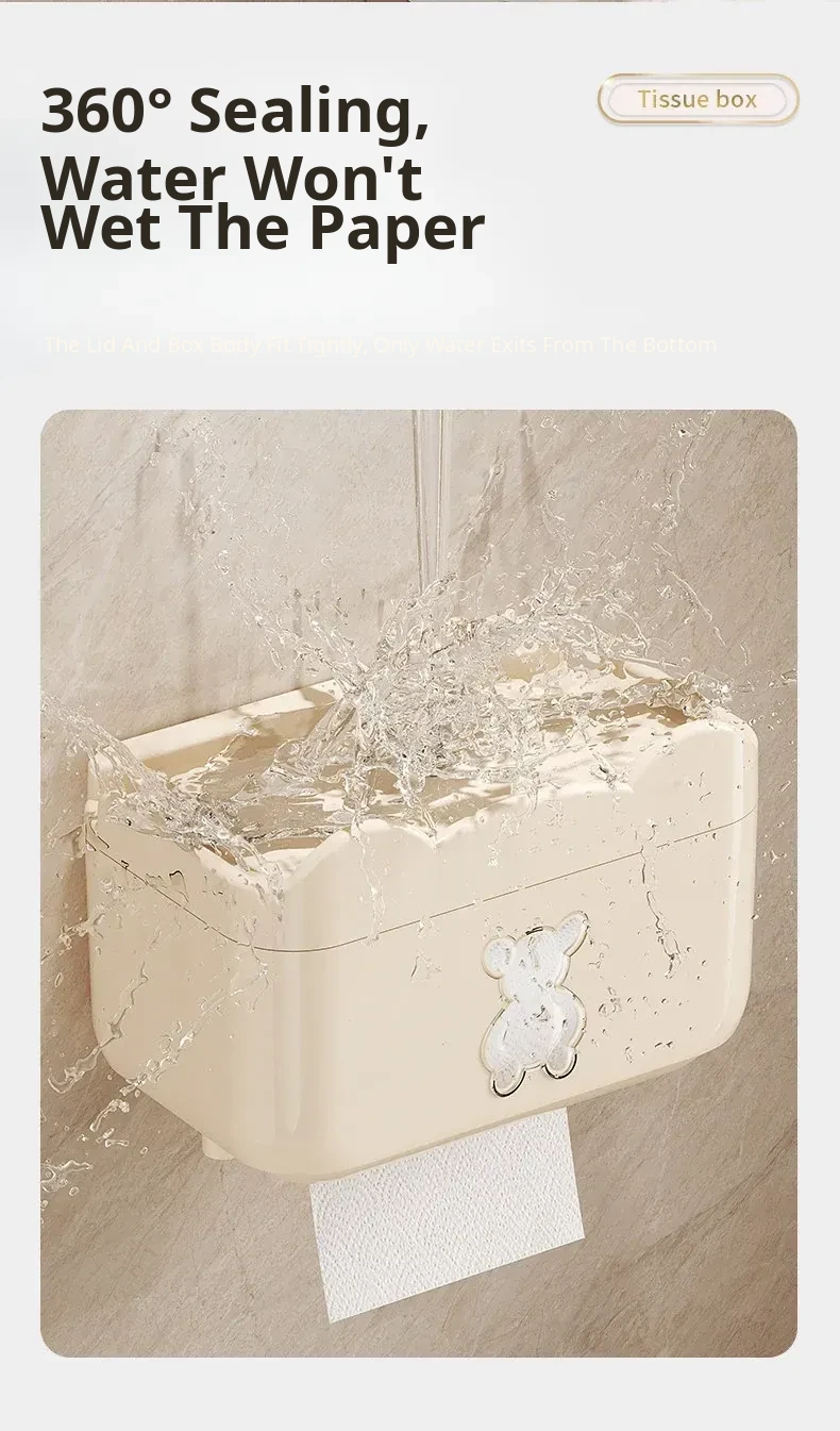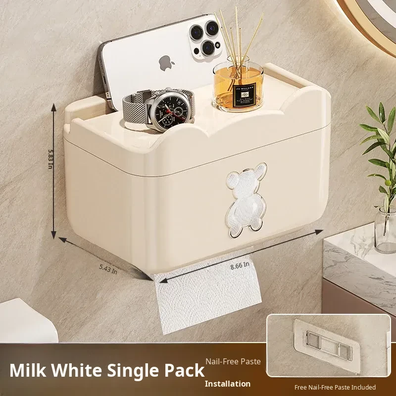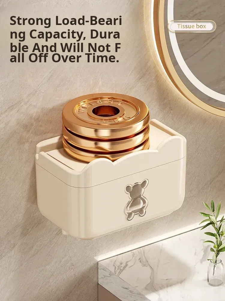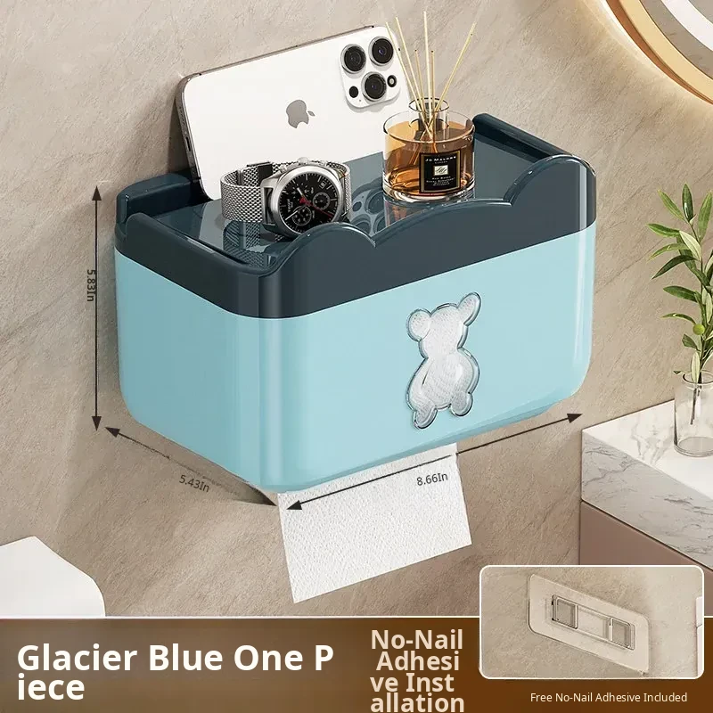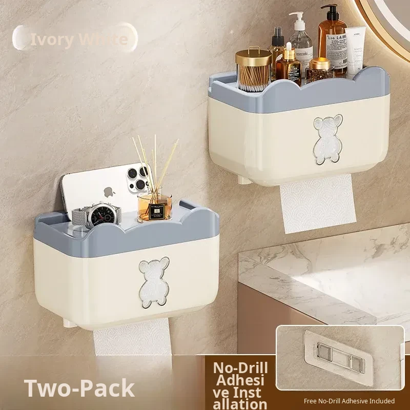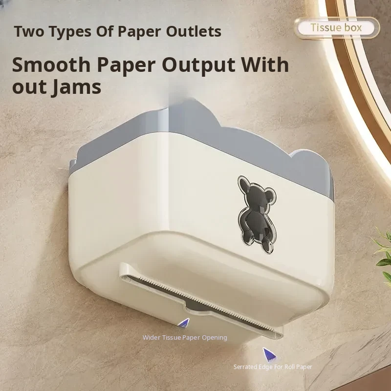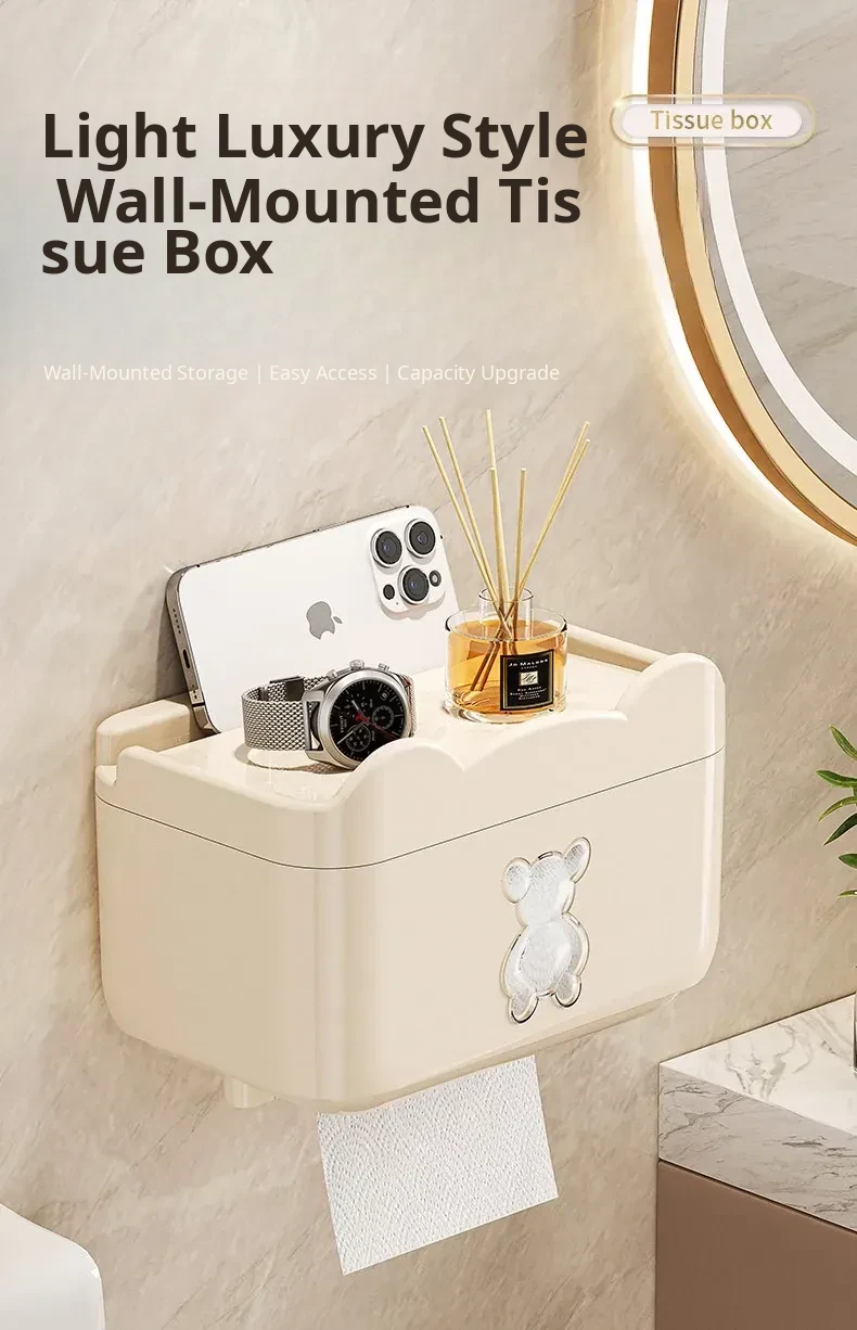 Wall-Mounted Waterproof Bear Tissue Box - No Drilling Required, Perfect for Bathroom Storage of Toilet Paper and Tissues, Stylish and Functional Design