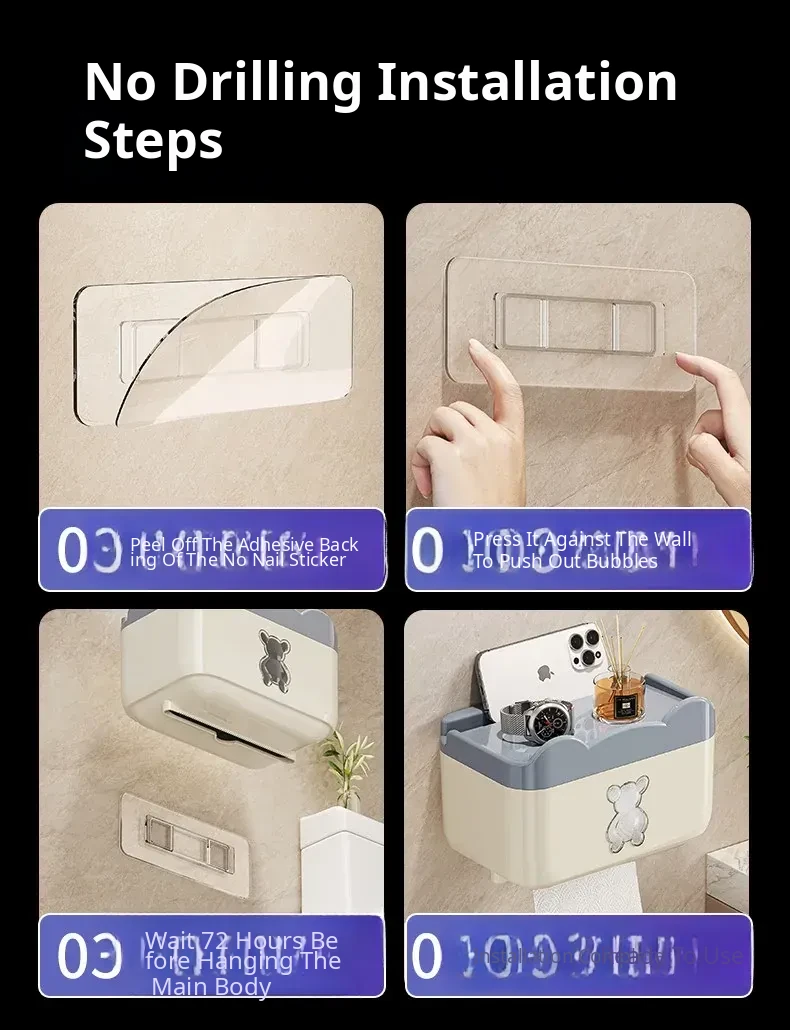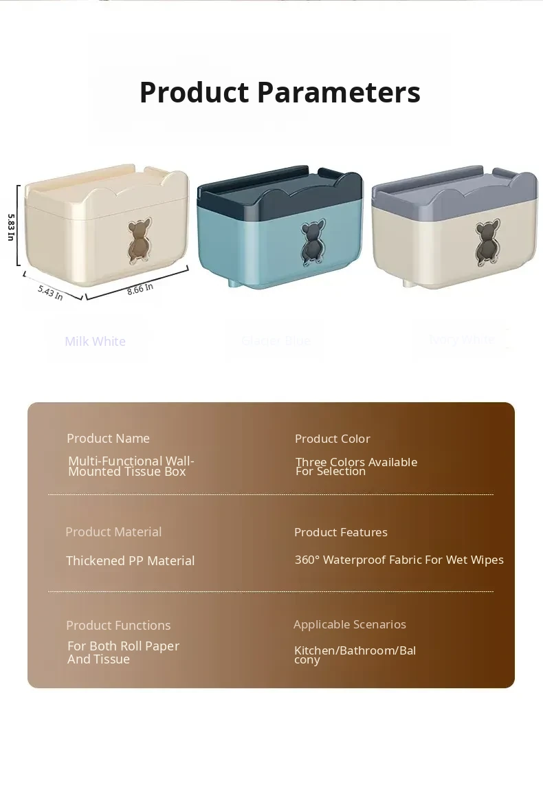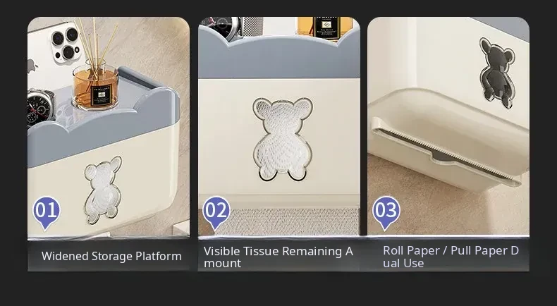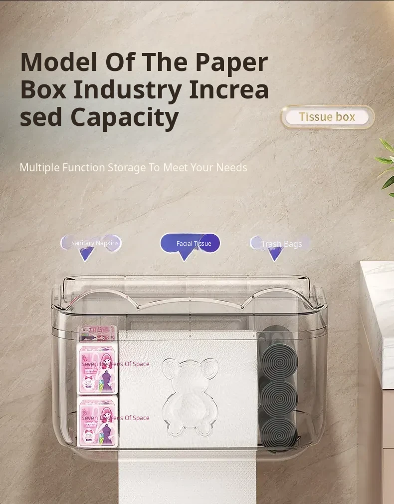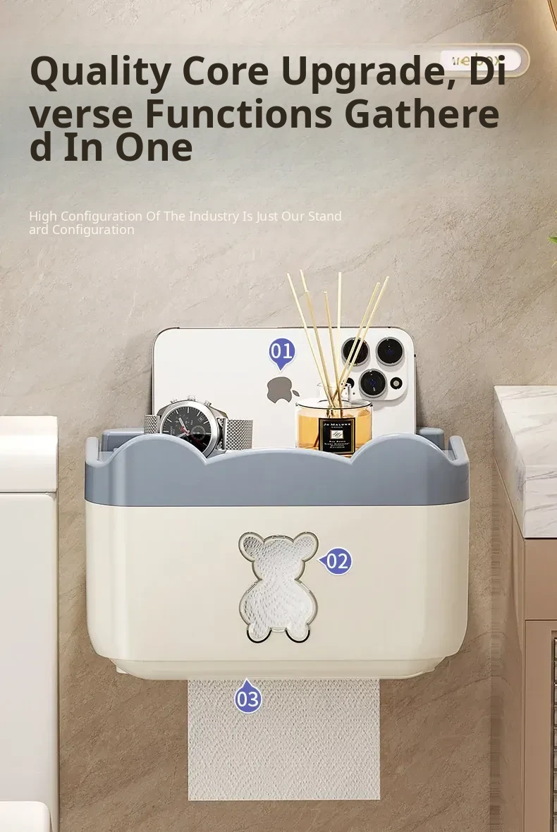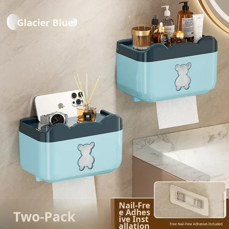 Wall-Mounted Waterproof Bear Tissue Box - No Drilling Required, Perfect for Bathroom Storage of Toilet Paper and Tissues, Stylish and Functional Design