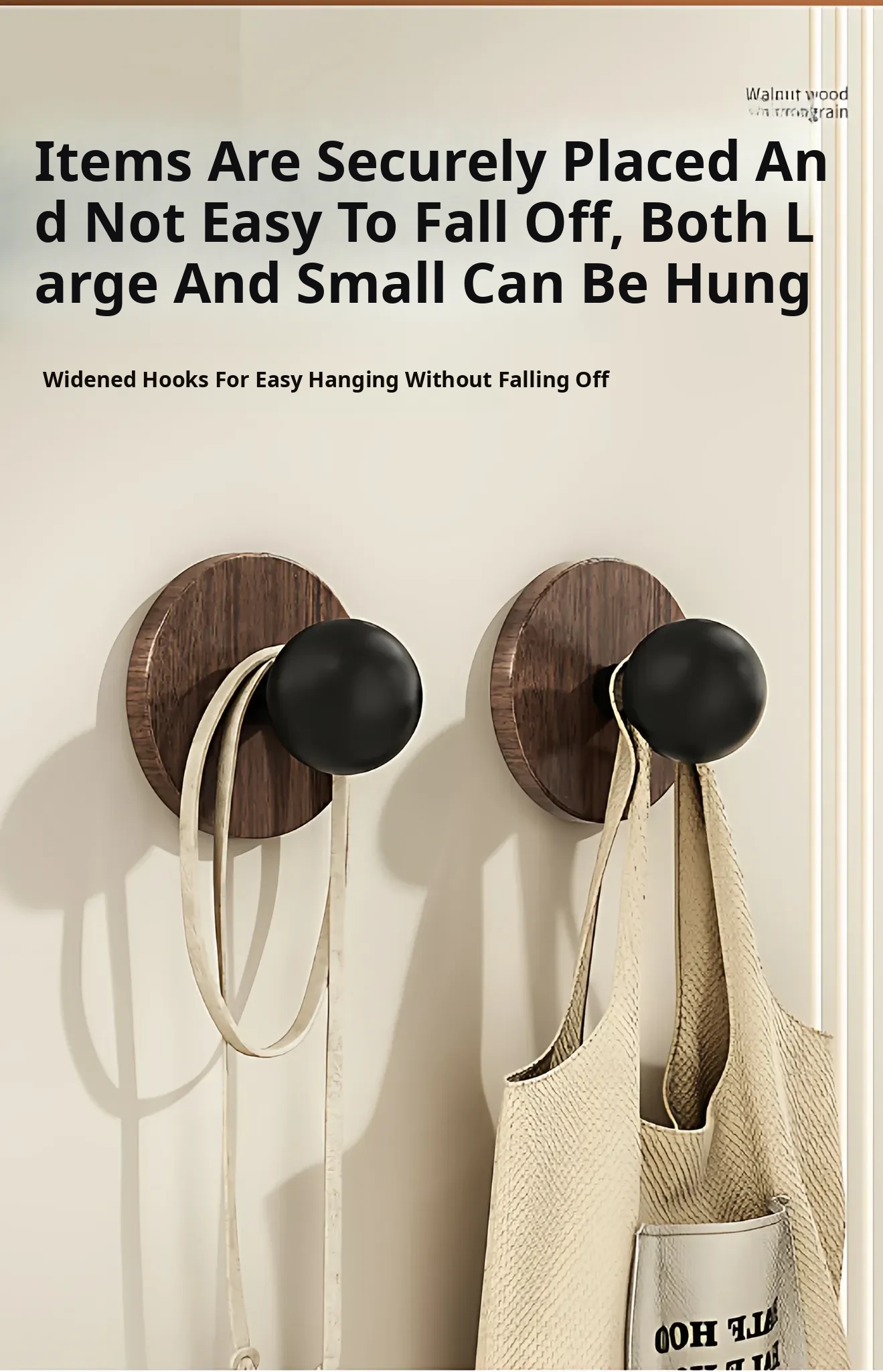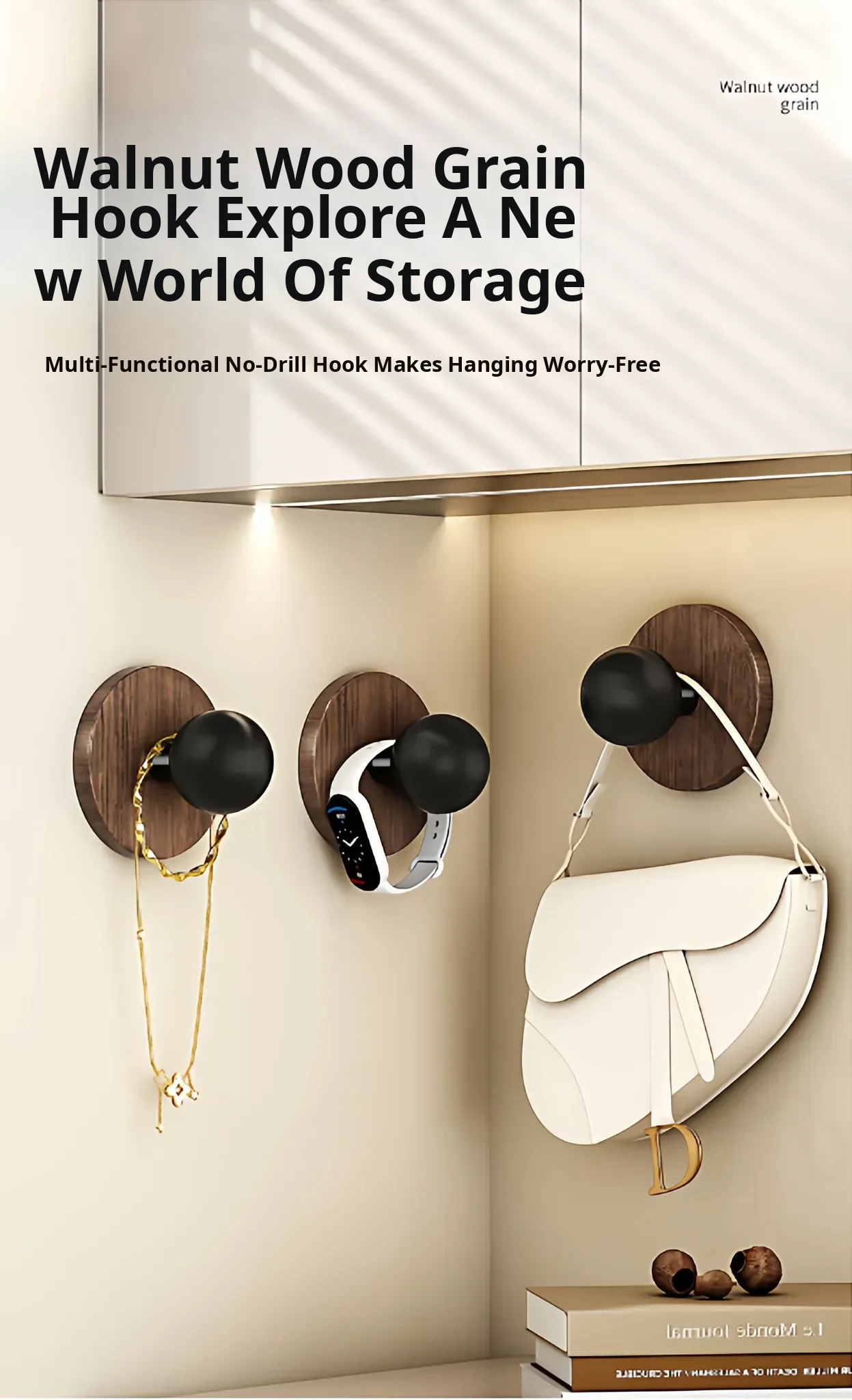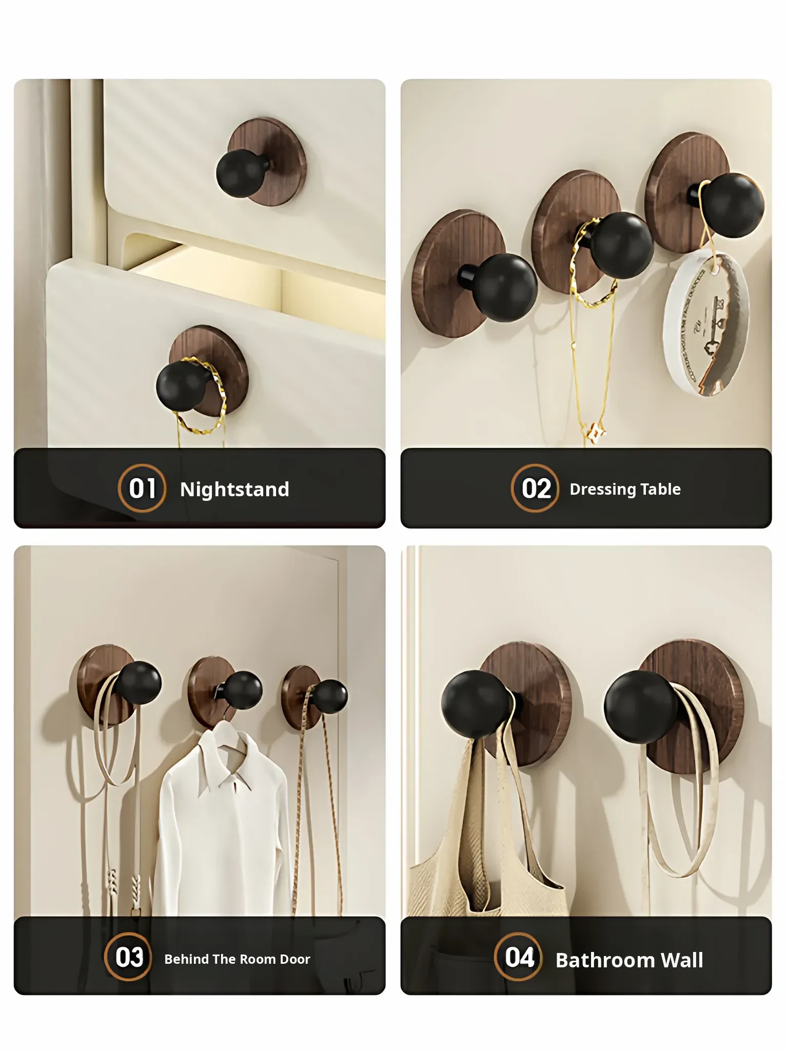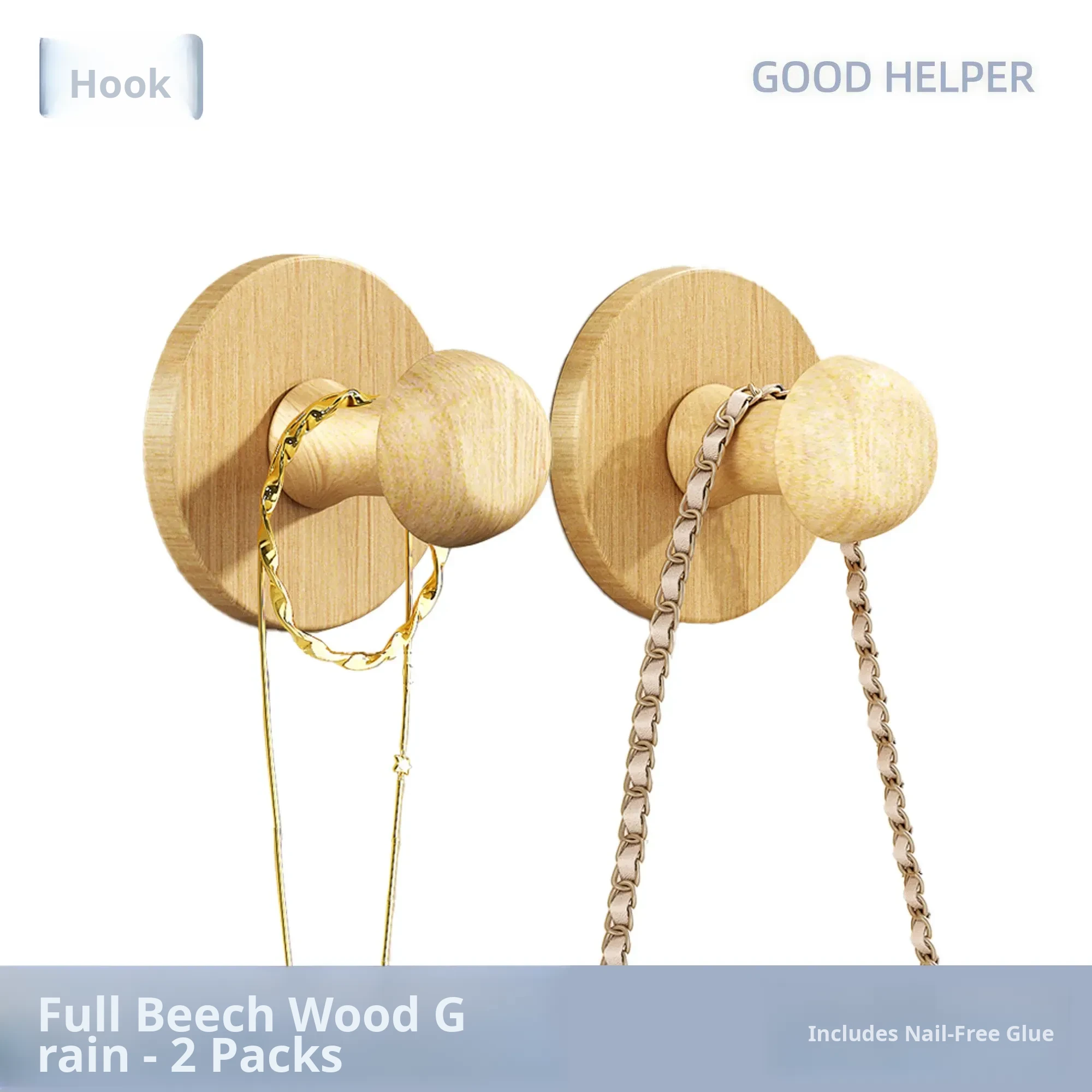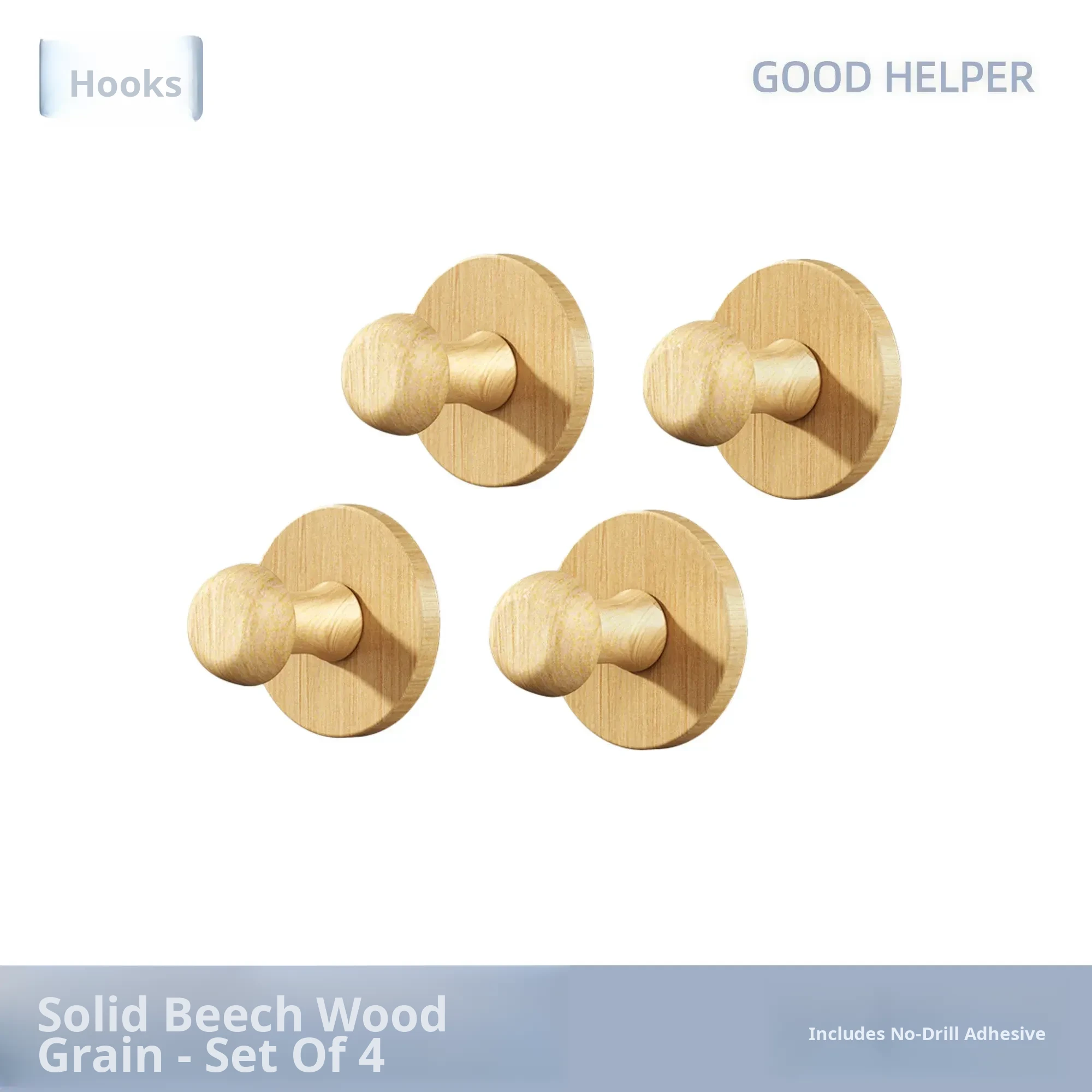 Wood Grain Round Adhesive Hooks - No Drill, Strong Load-Bearing Hat Hooks for Living Room and Bathroom, Damage-Free Wall Mounting Solution
