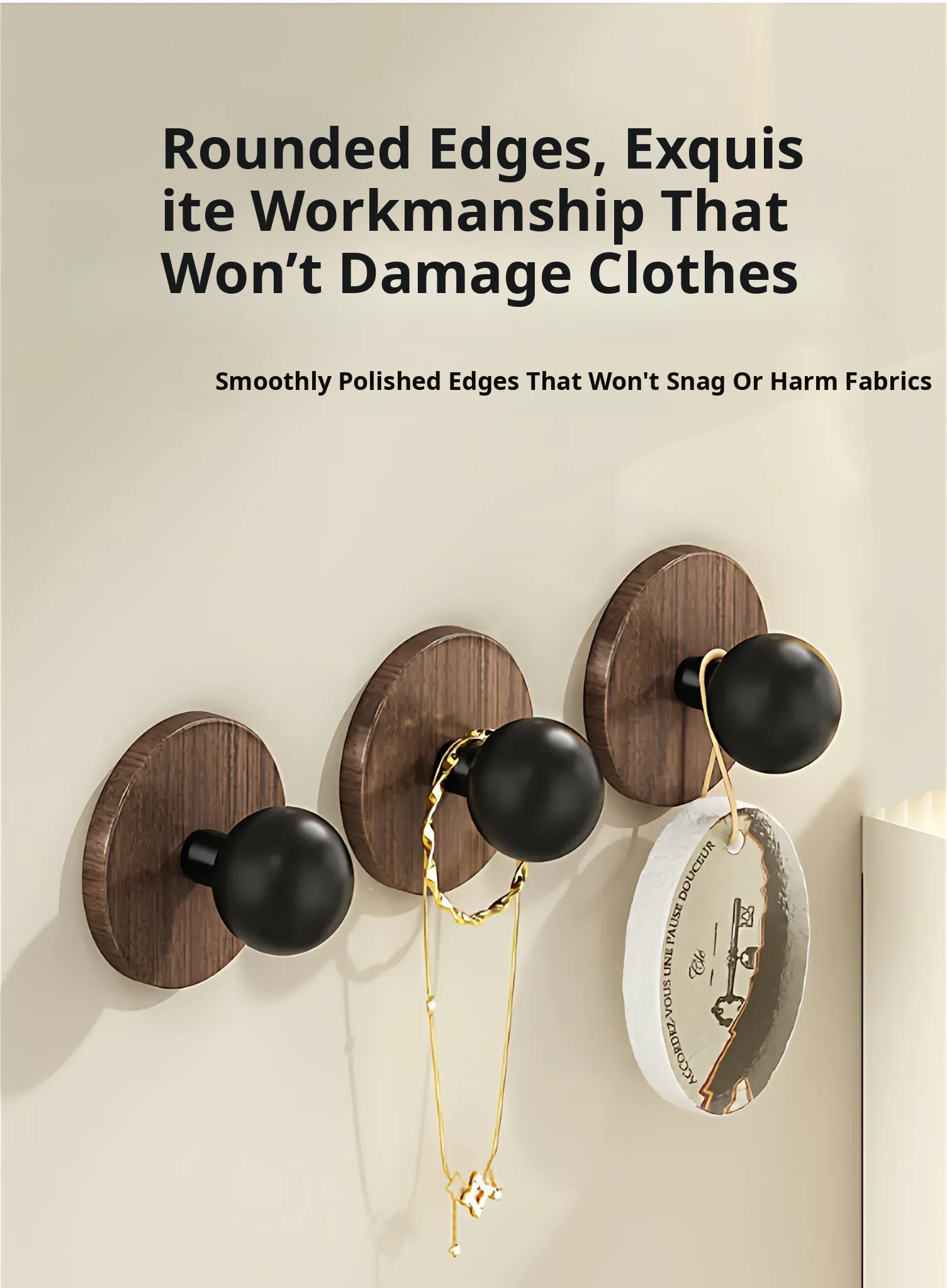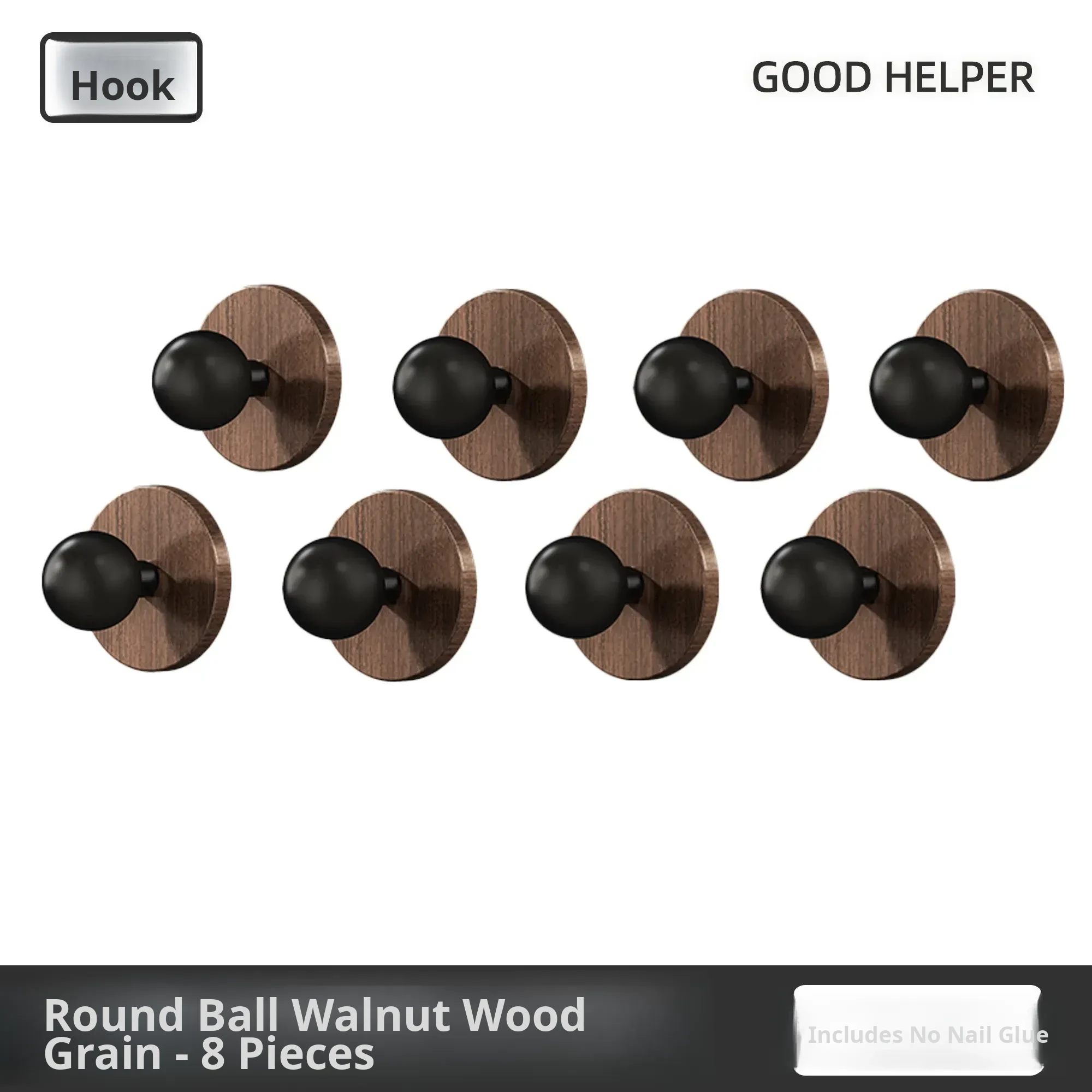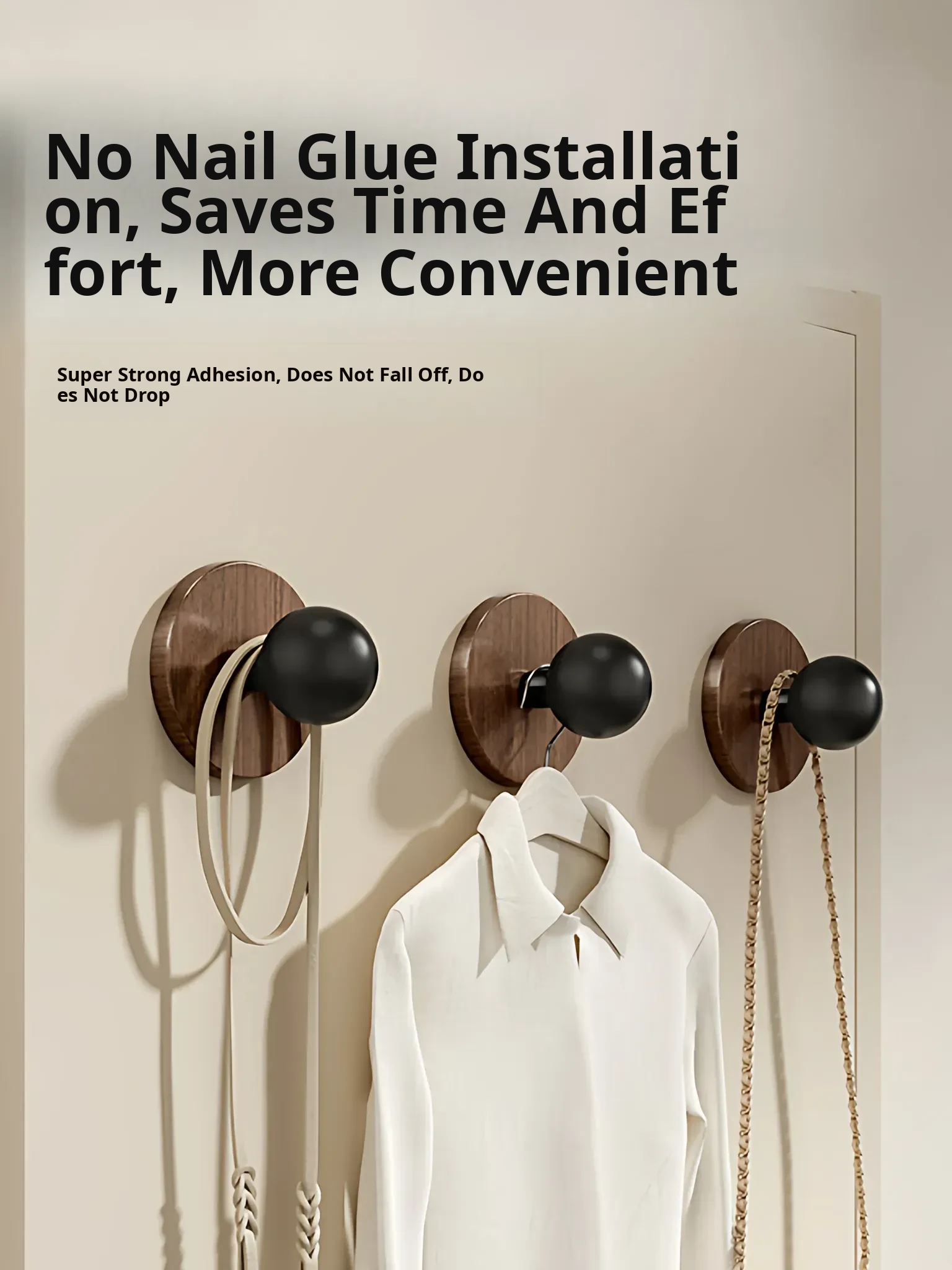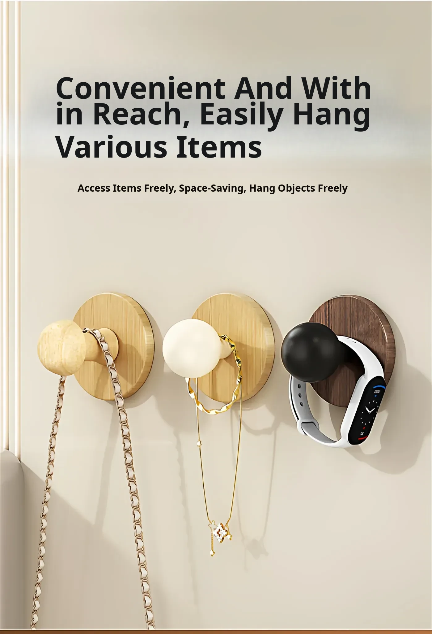 Wood Grain Round Adhesive Hooks - No Drill, Strong Load-Bearing Hat Hooks for Living Room and Bathroom, Damage-Free Wall Mounting Solution