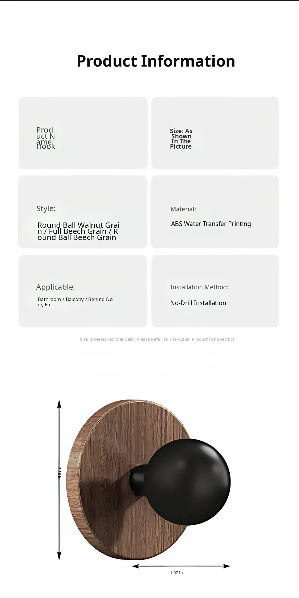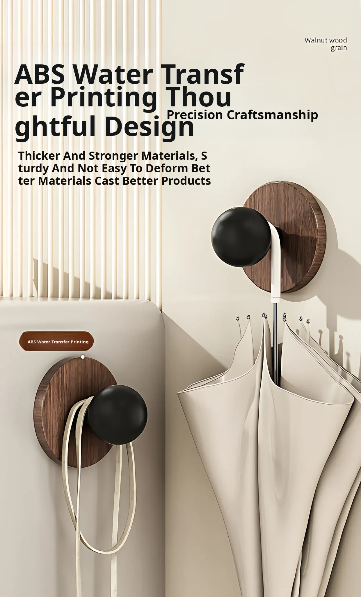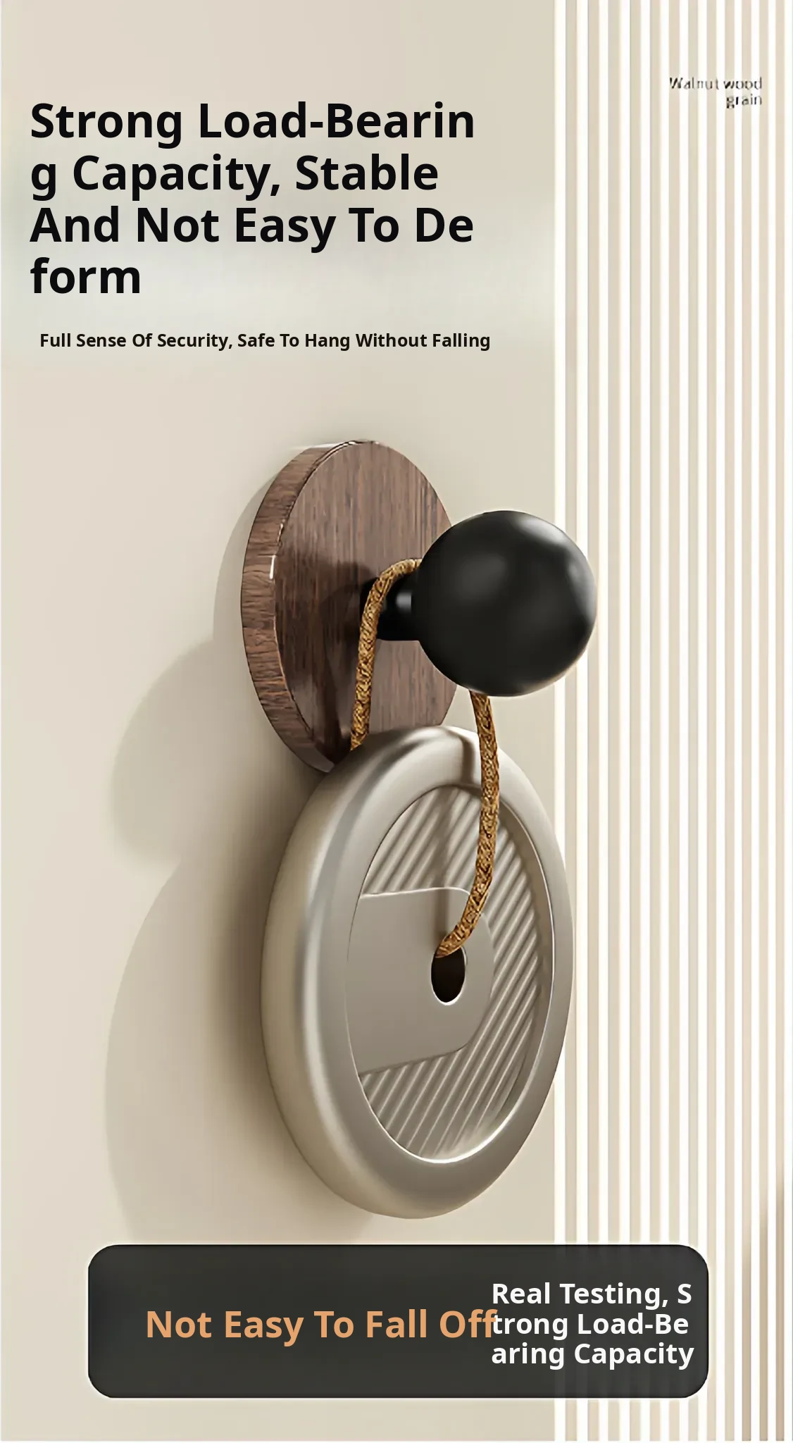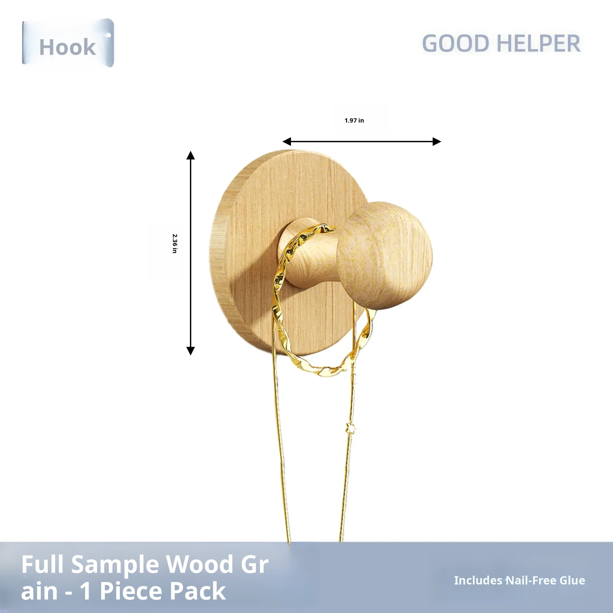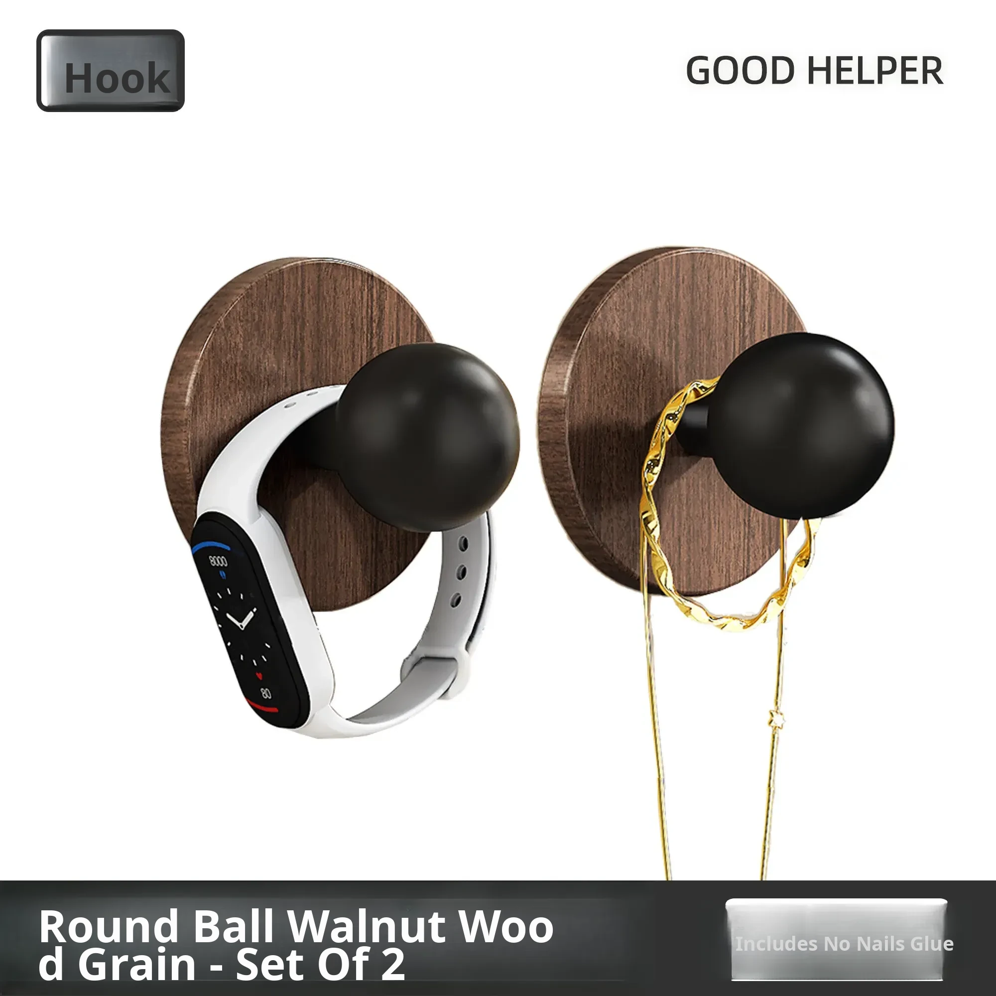 Wood Grain Round Adhesive Hooks - No Drill, Strong Load-Bearing Hat Hooks for Living Room and Bathroom, Damage-Free Wall Mounting Solution