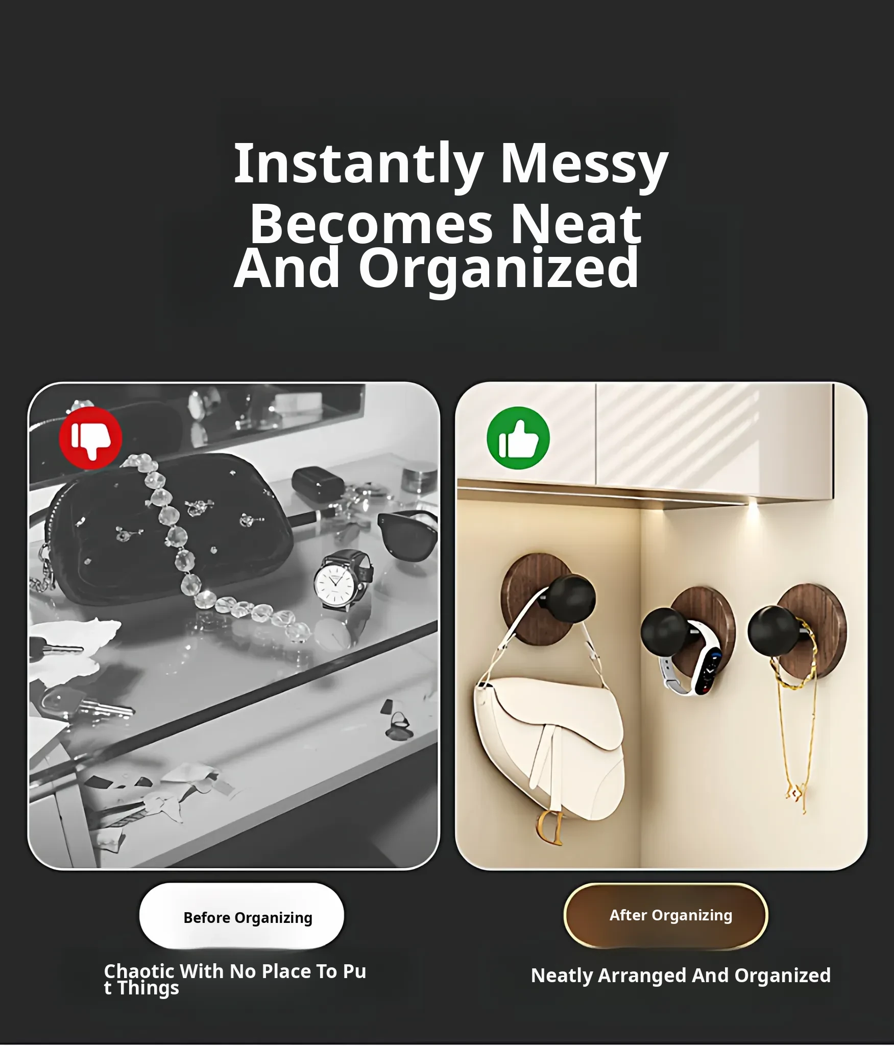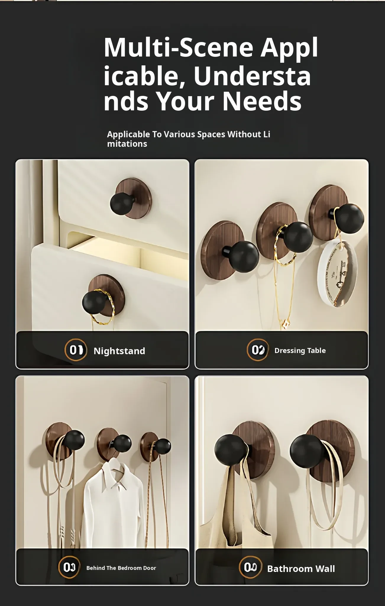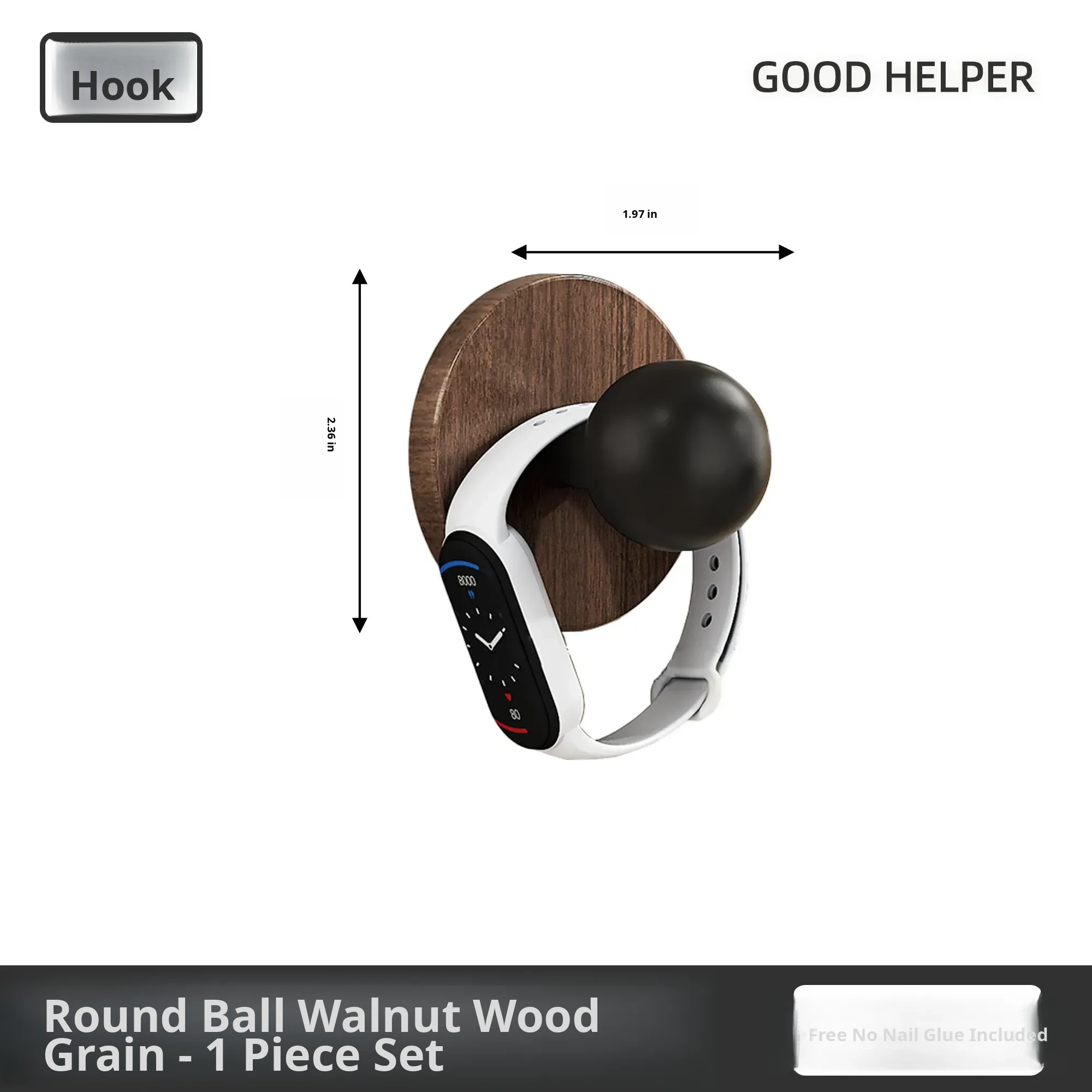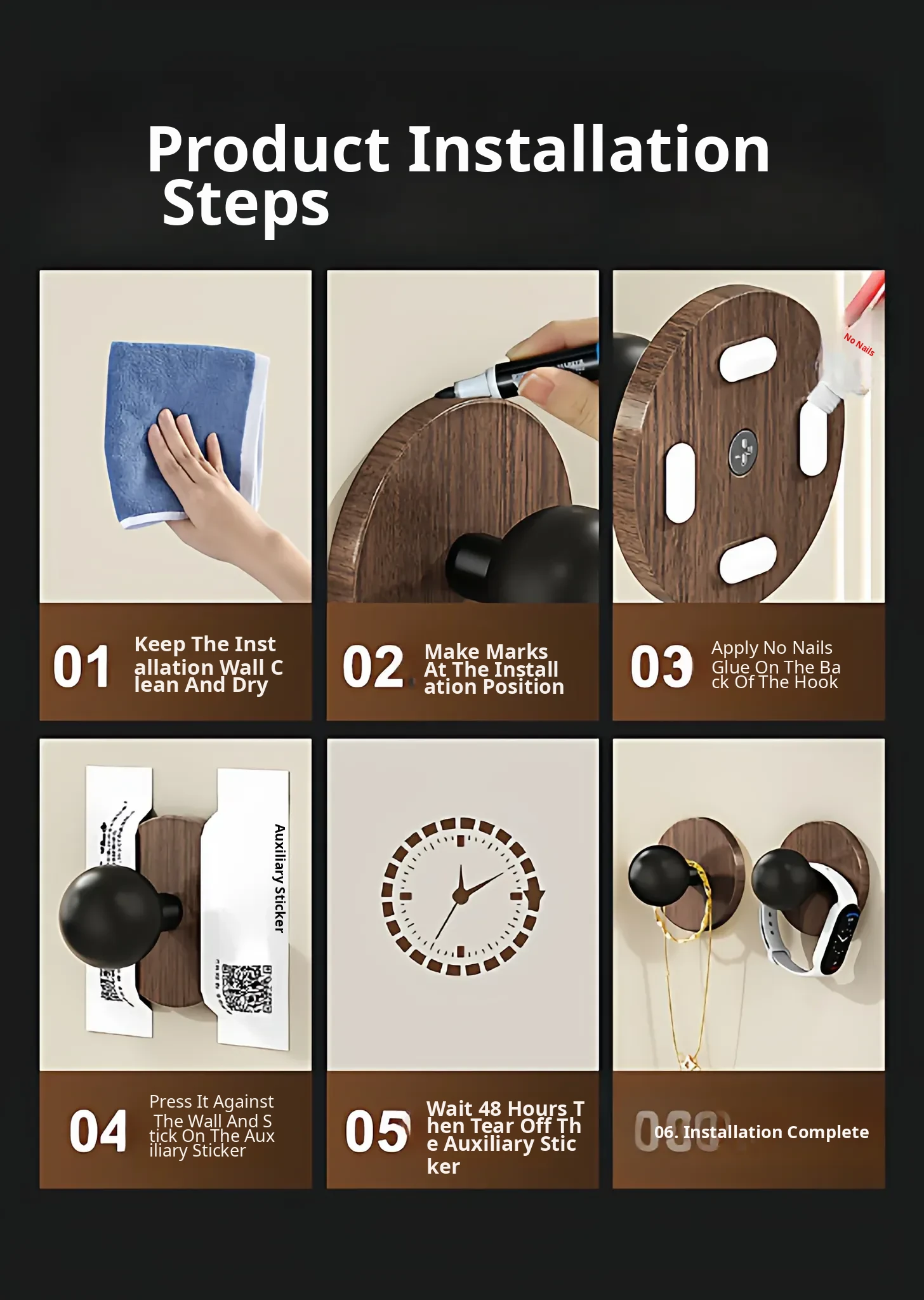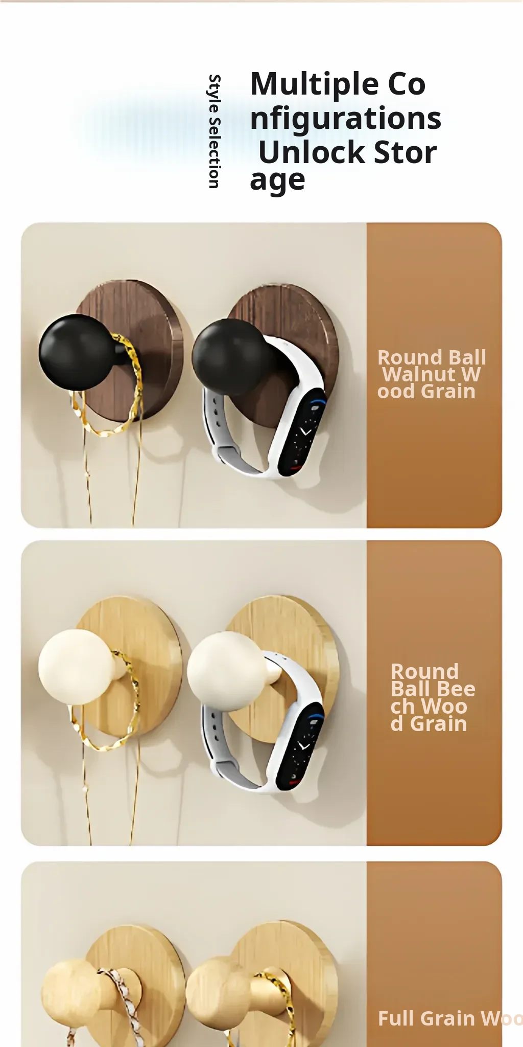 Wood Grain Round Adhesive Hooks - No Drill, Strong Load-Bearing Hat Hooks for Living Room and Bathroom, Damage-Free Wall Mounting Solution