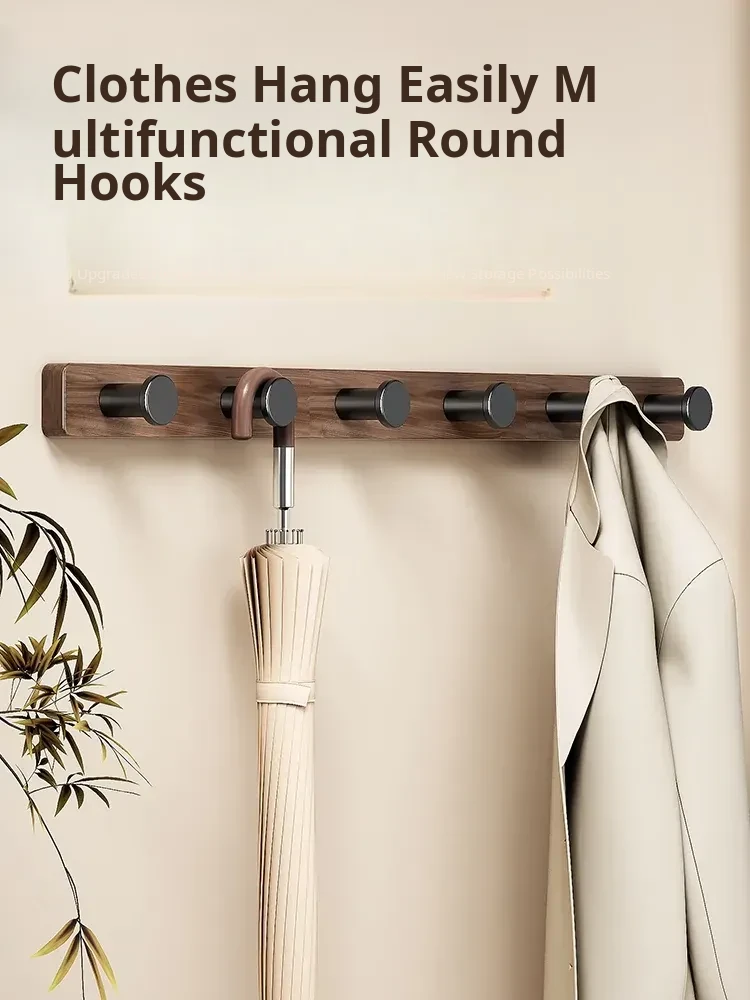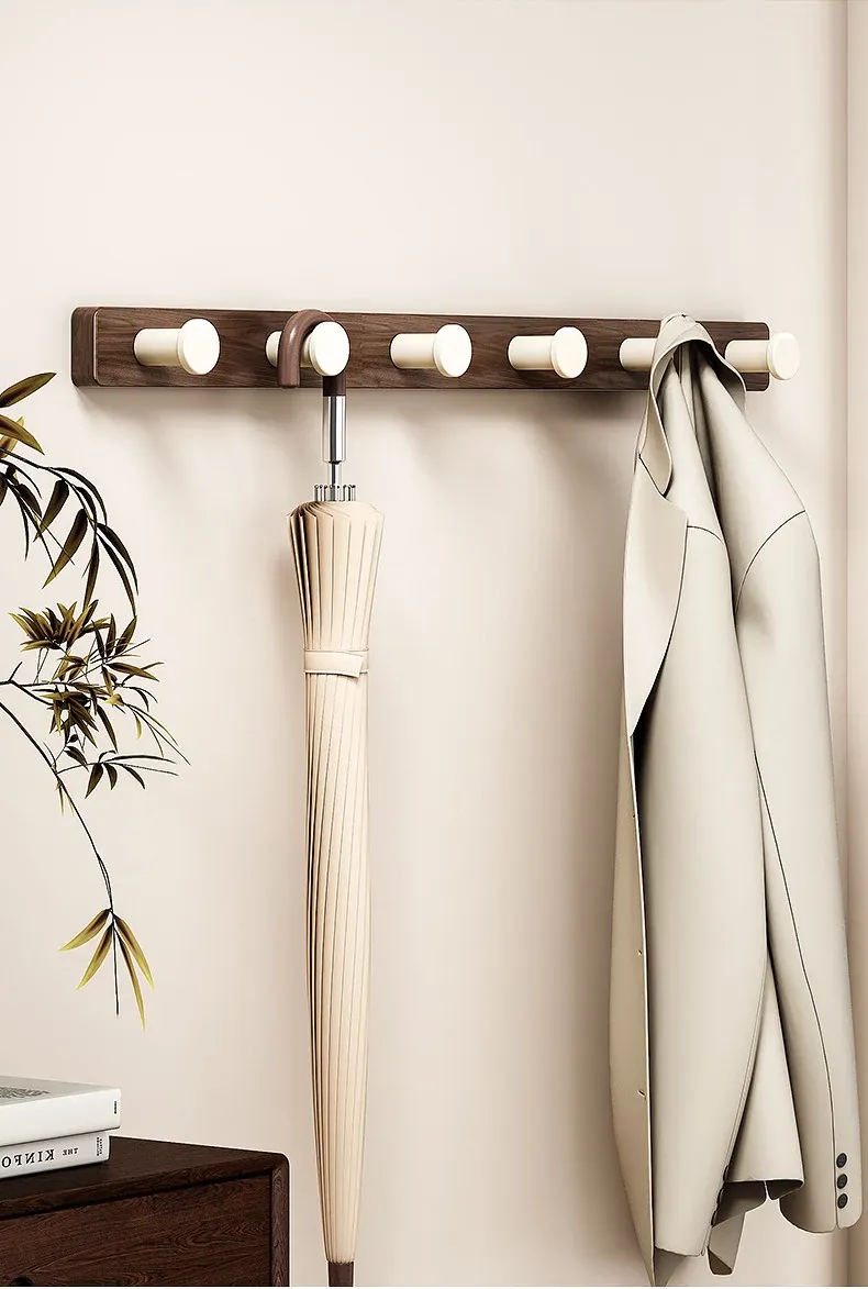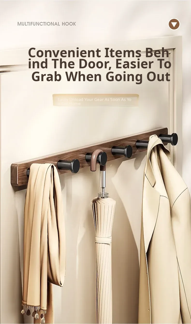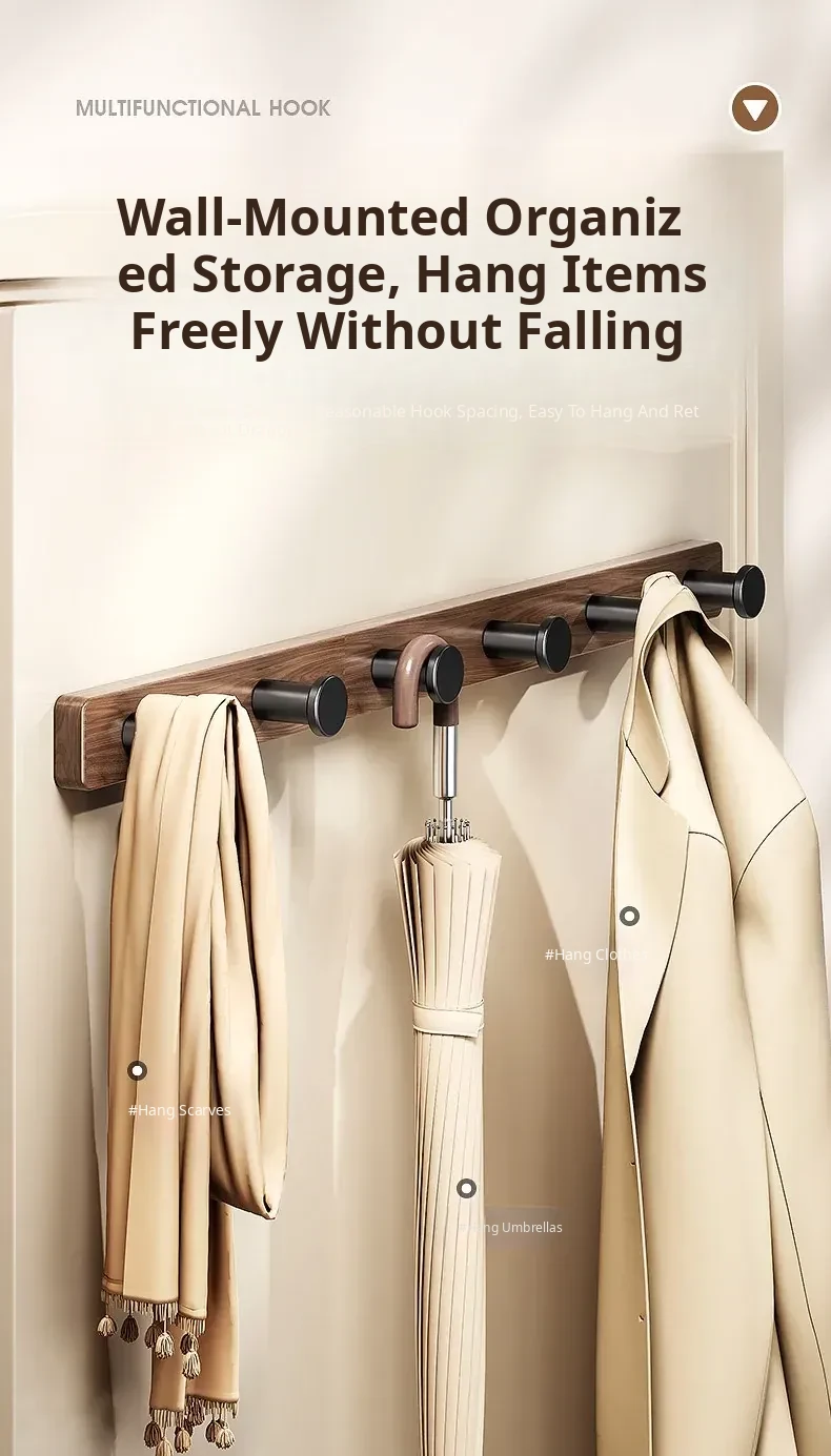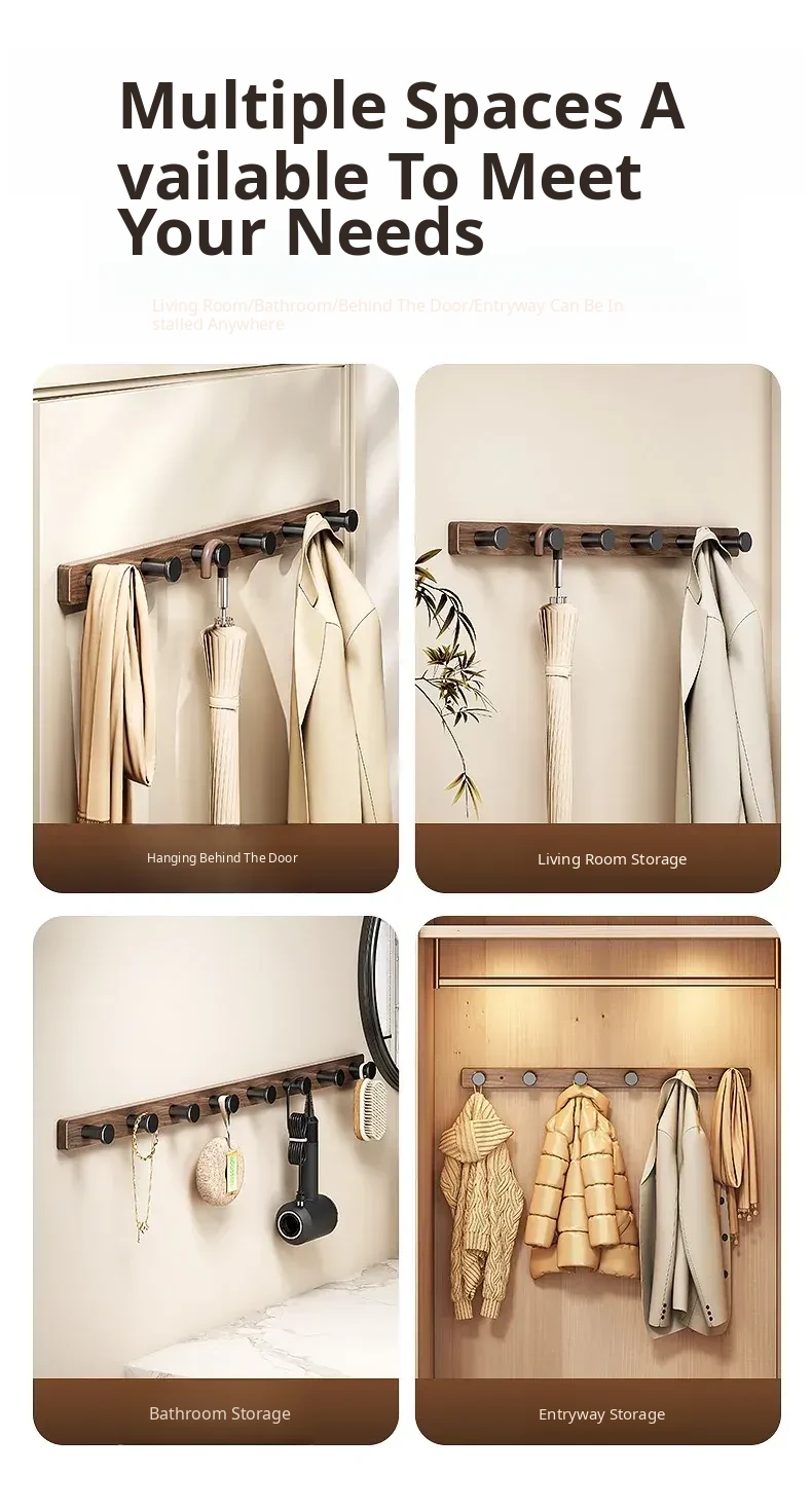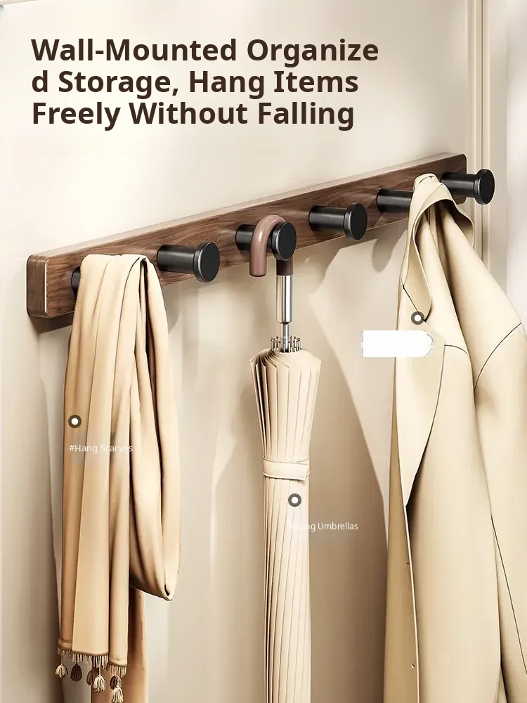 Wood-Look Walnut Grain Wall Hooks - No Drilling Required, Heavy-Duty for Strong Support, Perfect for Hanging Clothes and Organizing Behind Doors - Set of 1 Row