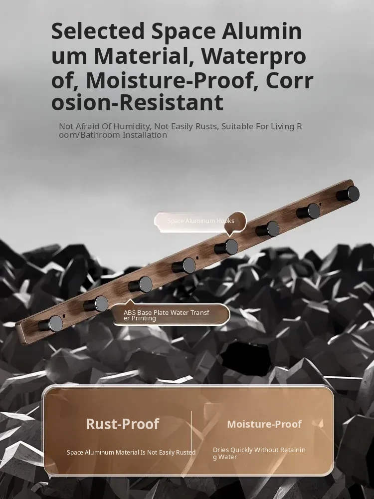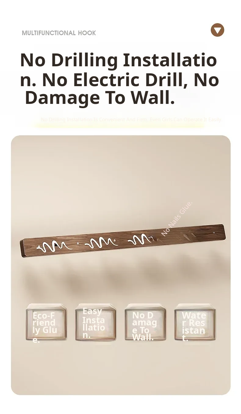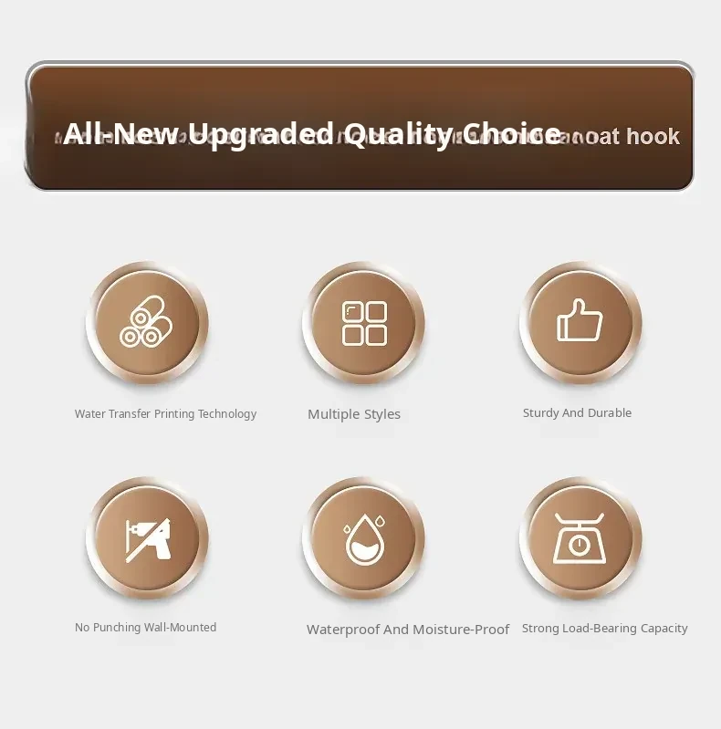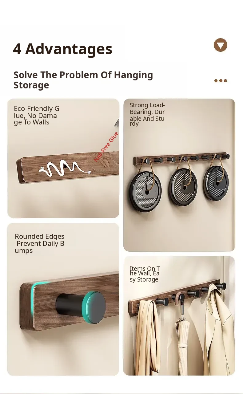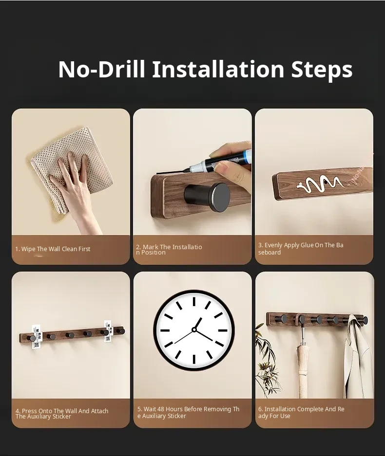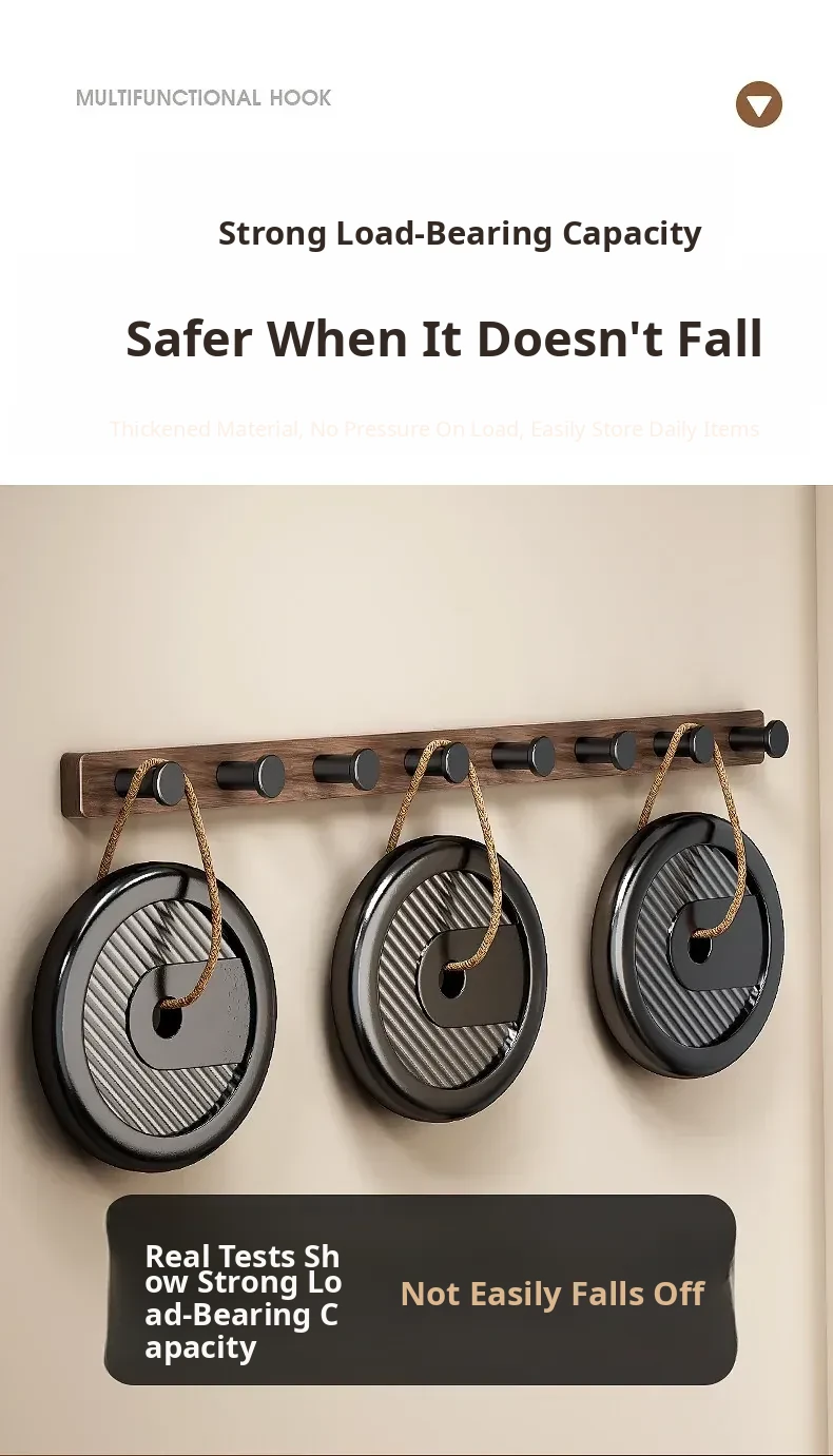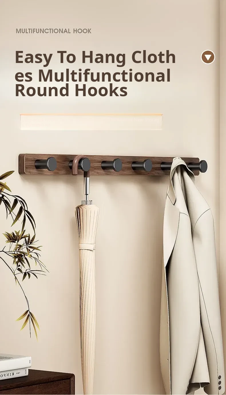 Wood-Look Walnut Grain Wall Hooks - No Drilling Required, Heavy-Duty for Strong Support, Perfect for Hanging Clothes and Organizing Behind Doors - Set of 1 Row