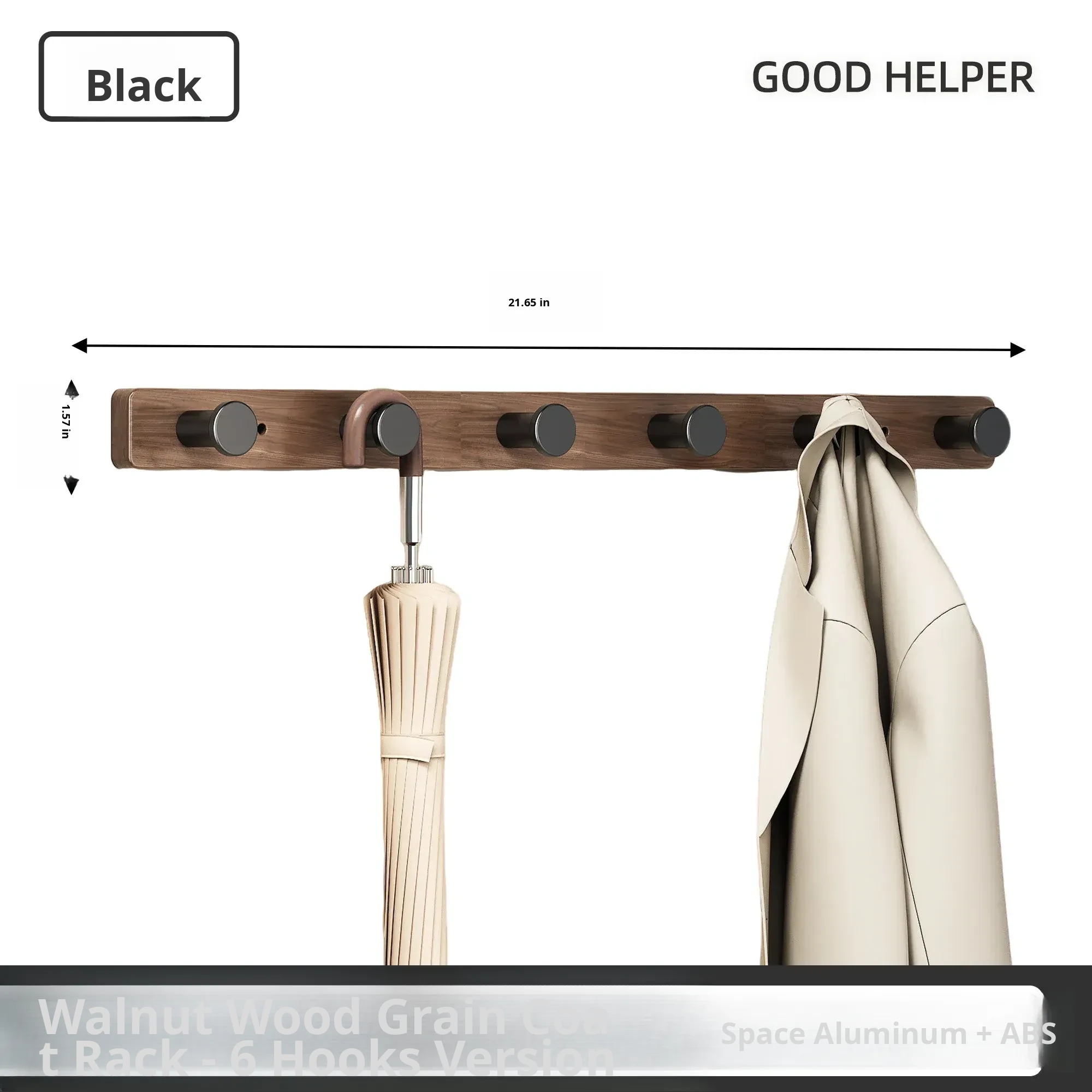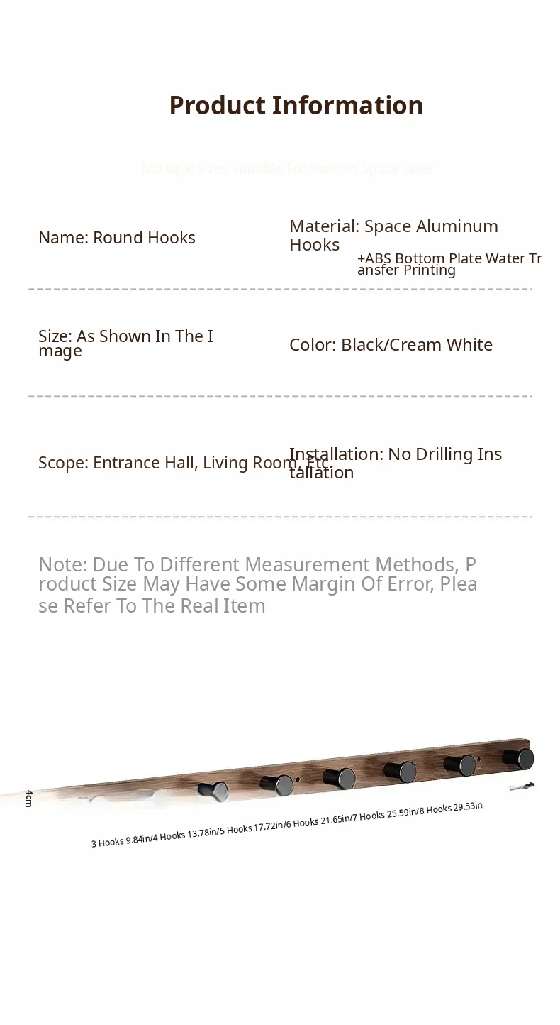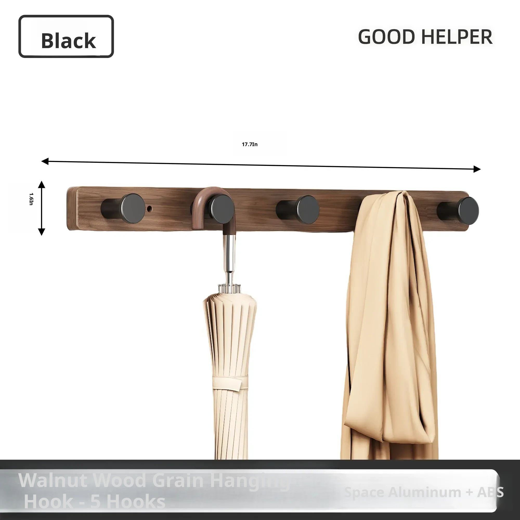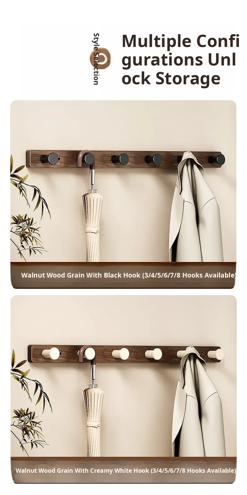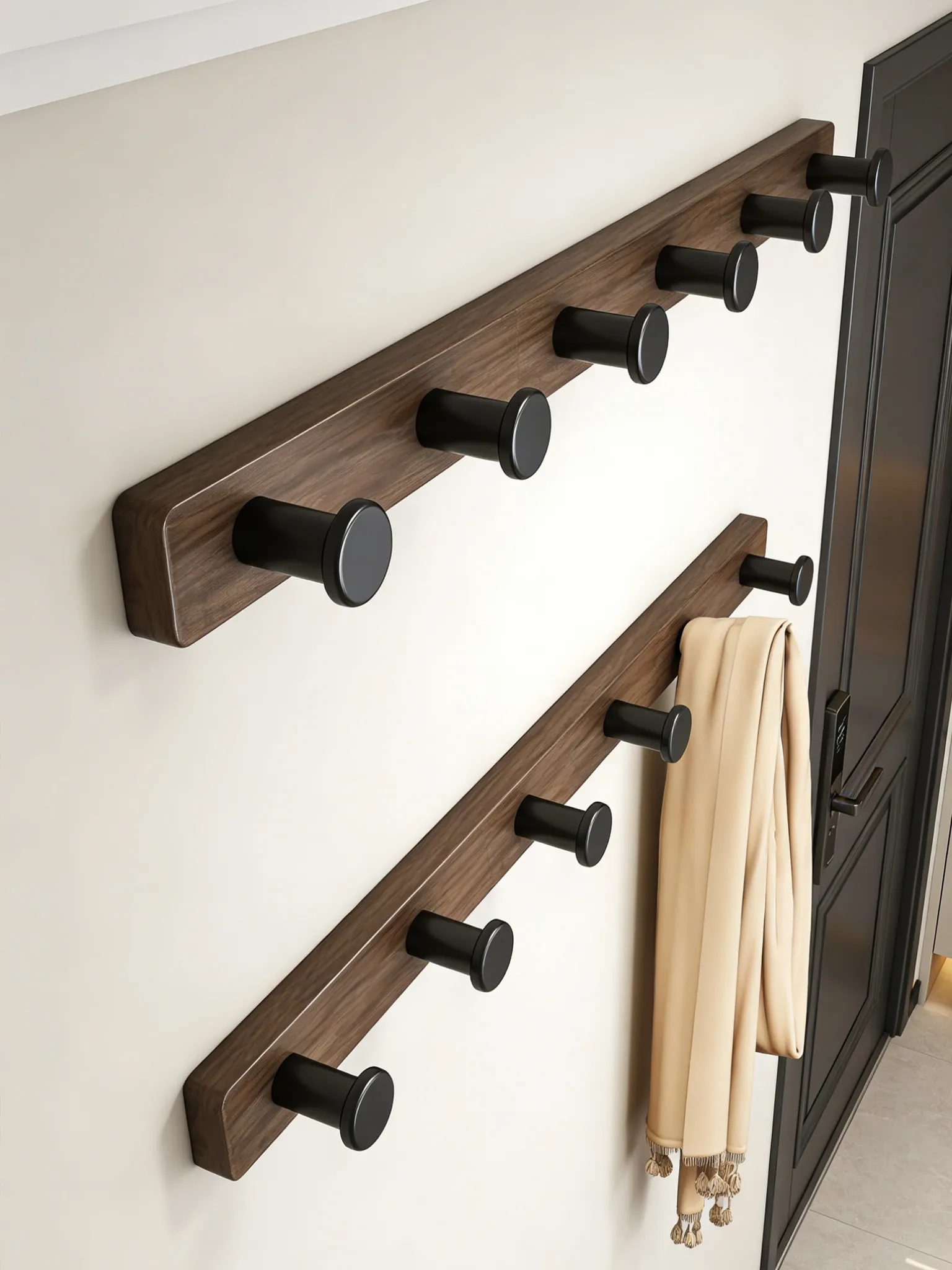 Wood-Look Walnut Grain Wall Hooks - No Drilling Required, Heavy-Duty for Strong Support, Perfect for Hanging Clothes and Organizing Behind Doors - Set of 1 Row