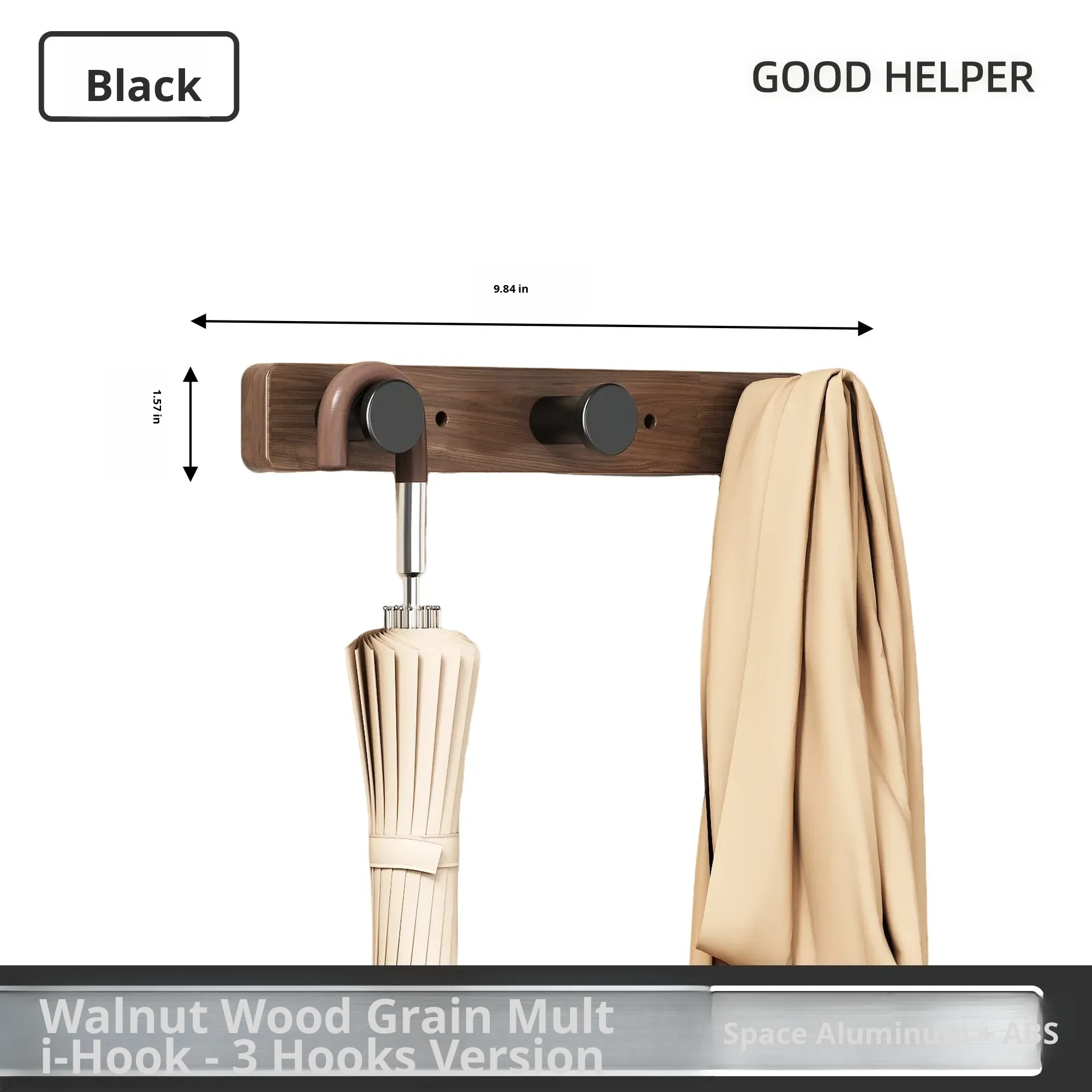 Imitation Wood Grain Row Hook-Mushroom Head Black-[3 Hooks]