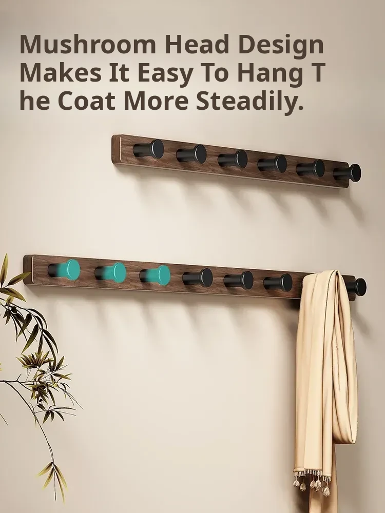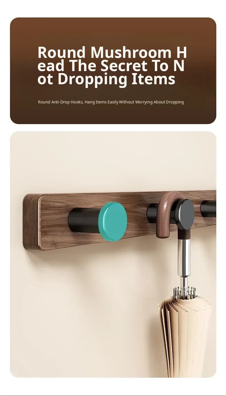 Imitation Wood Grain Row Hook-Mushroom Head Black-[7 Hooks]