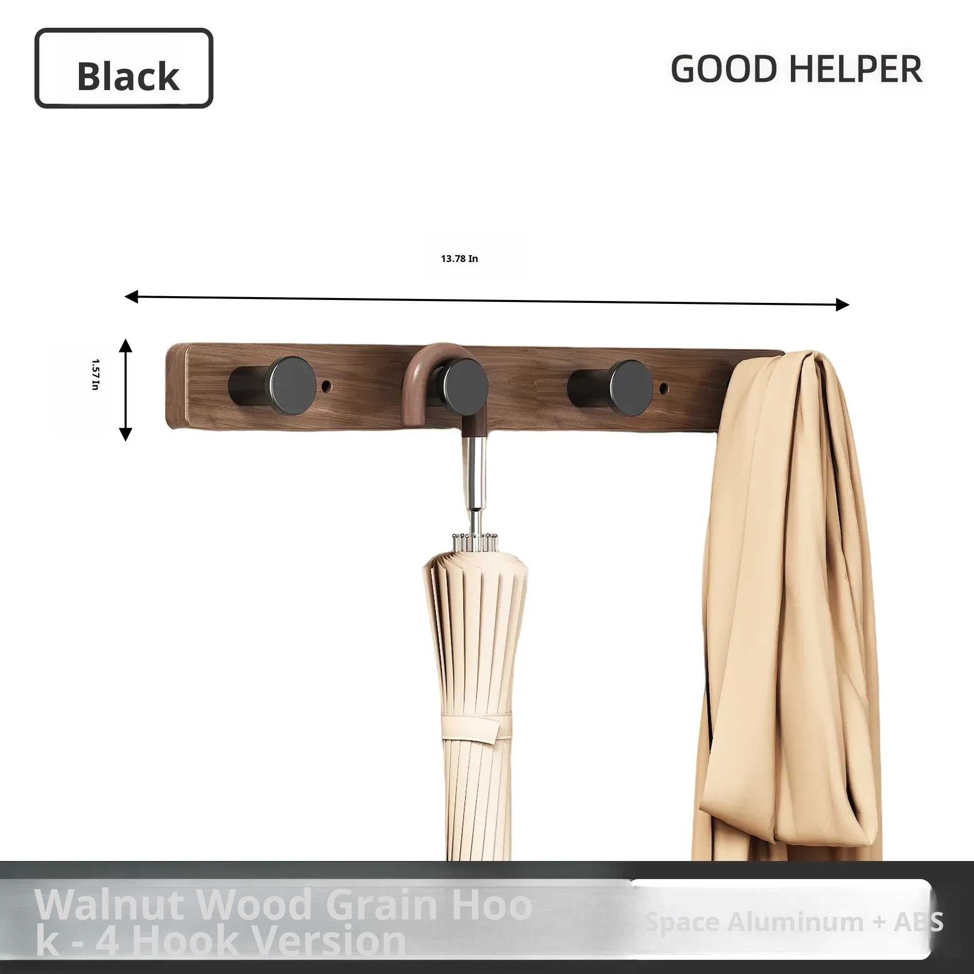Imitation Wood Grain Row Hook-Mushroom Head Black-[4 Hooks]
