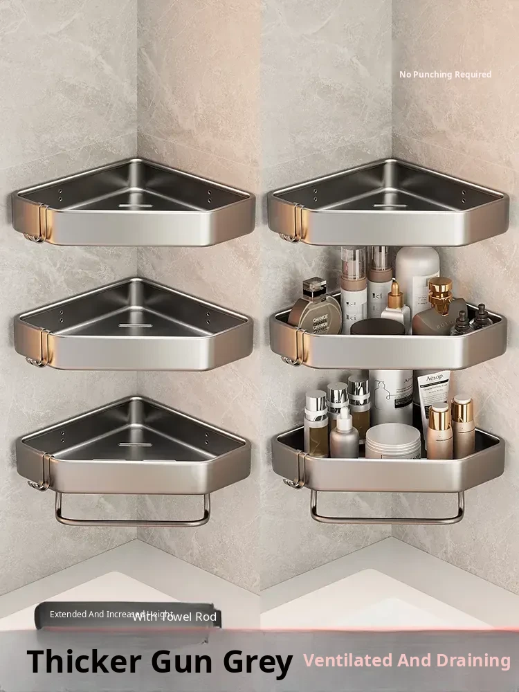 Corner Wall-Mounted Shower Storage Rack - No Drill Bathroom Triangle Shelf Organizer for Toilets and Showers, Perfect for Space-Saving in Your Bathroom!