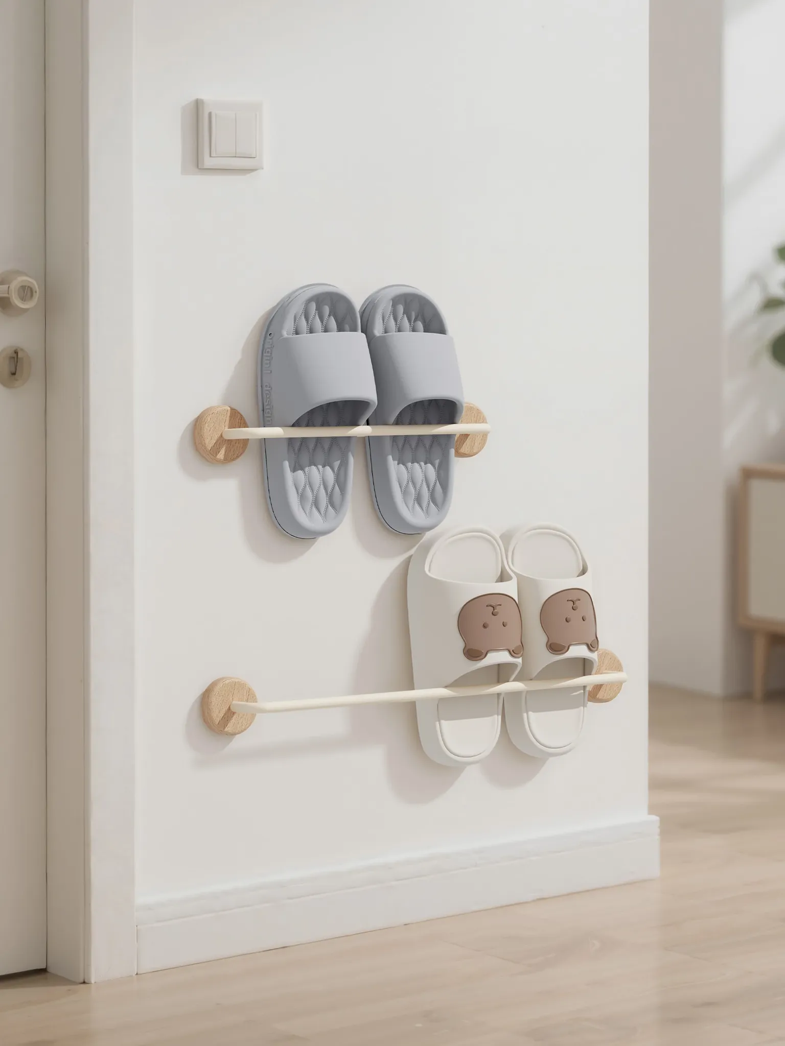 Creamy Bathroom Slipper Rack - No Drill, Moisture-Resistant Storage Solution for Wet Areas - Convenient Door-Mounted Shoe Organizer for Easy Access and Space Saving