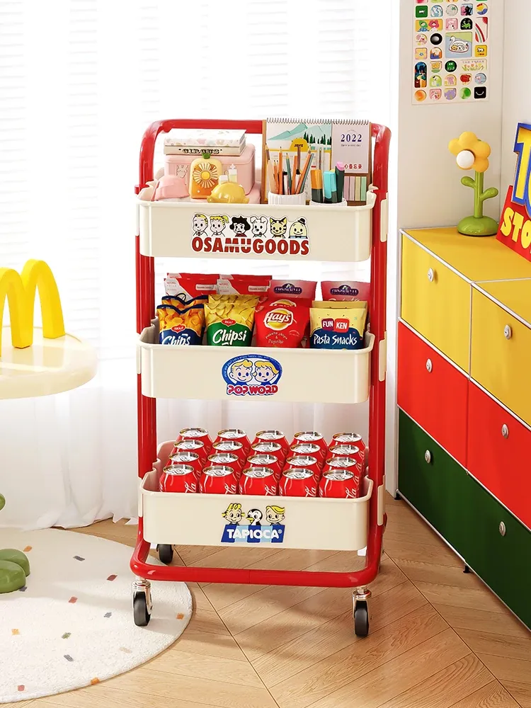 Multi-Layer Floor Toy Storage Rack for Kids - Space-Saving Baby Trolley Organizer with Large Capacity for Home Use - Perfect Solution for Clutter-Free Playtime!