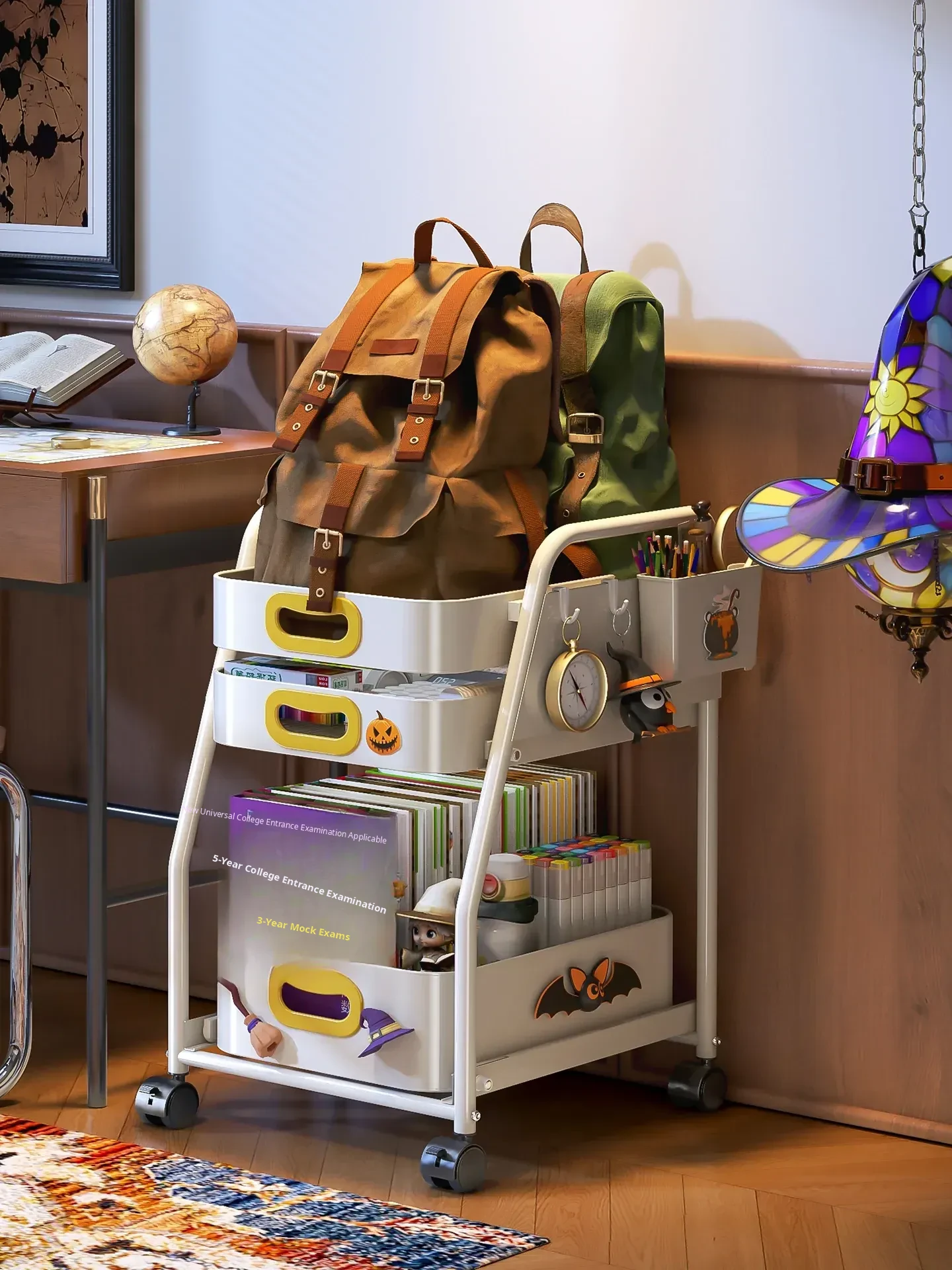 Flins Portable Book Bag Storage Cart - Ideal Side Organizer for Middle School Students, Perfect for Kids' Desks, Your Ultimate Storage Solution!