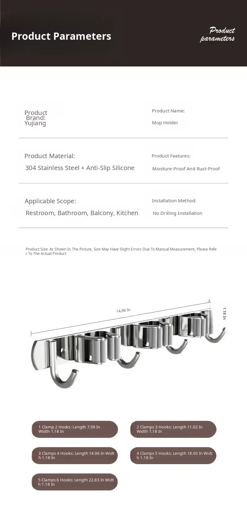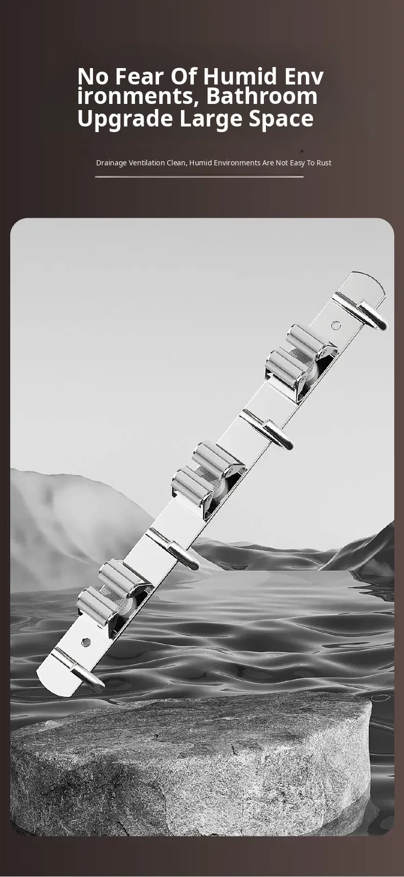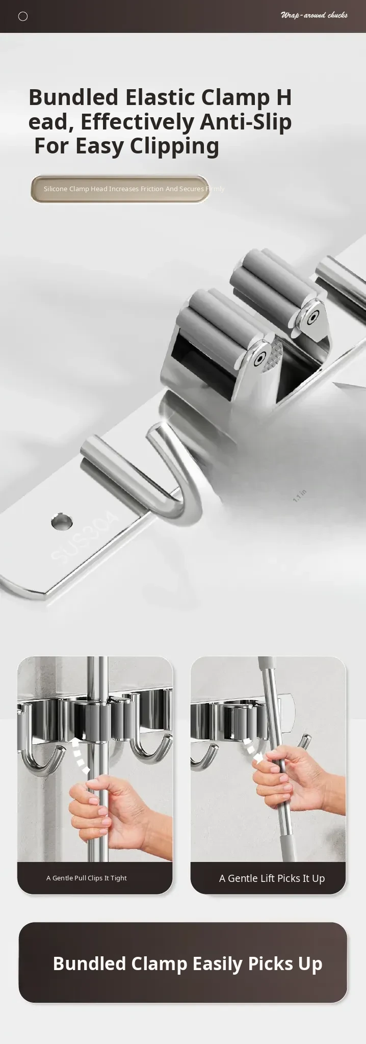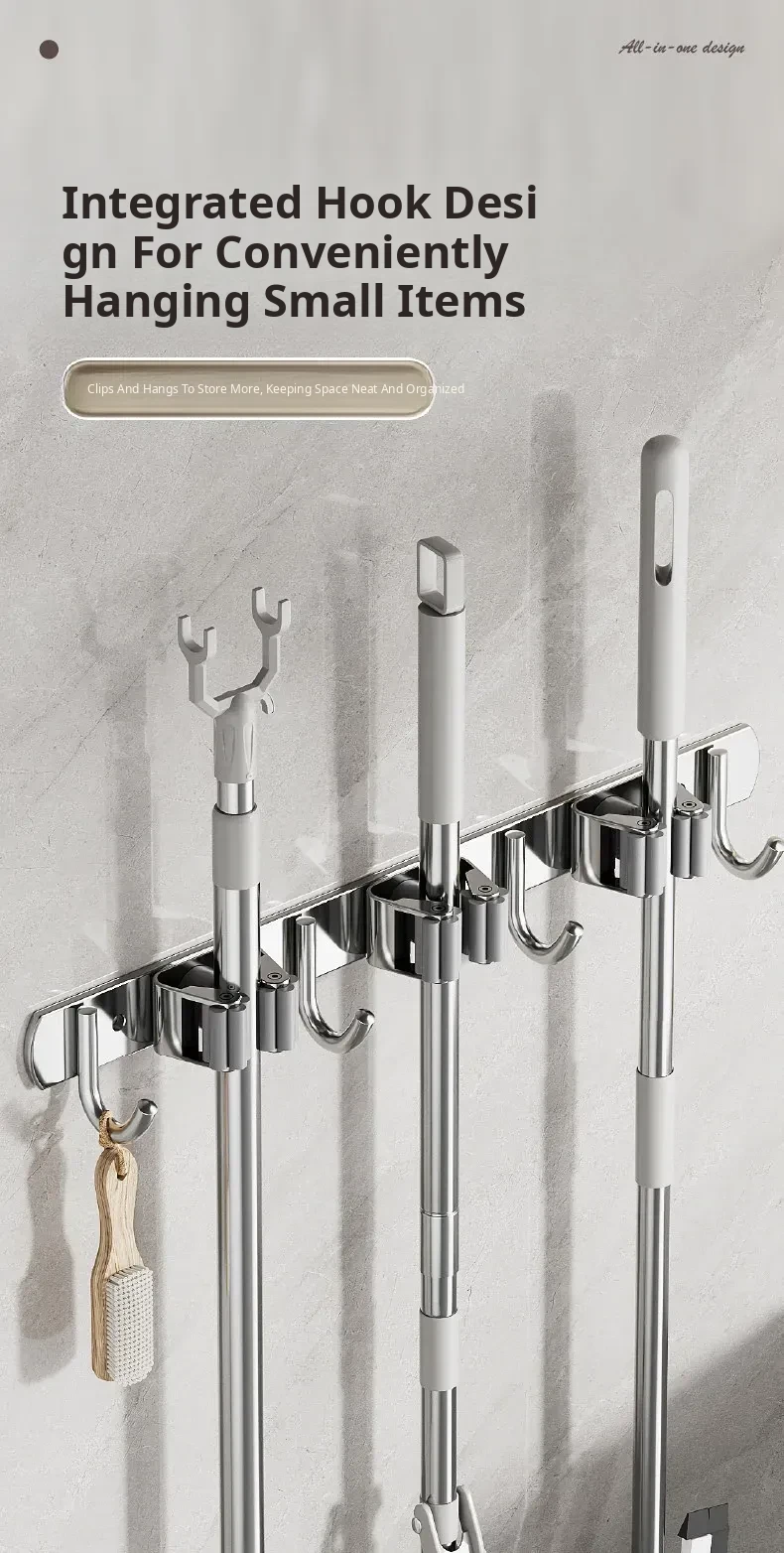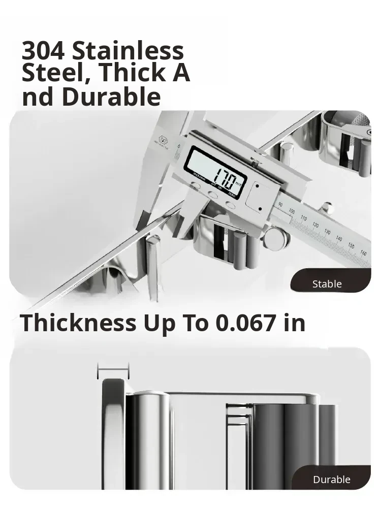 304 Stainless Steel Mop Wall-Mounted Holder - No Drill Hook for Mops and Brooms, Heavy-Duty Bathroom Organizer, Space-Saving Cleaning Tool, Rust-Proof Design