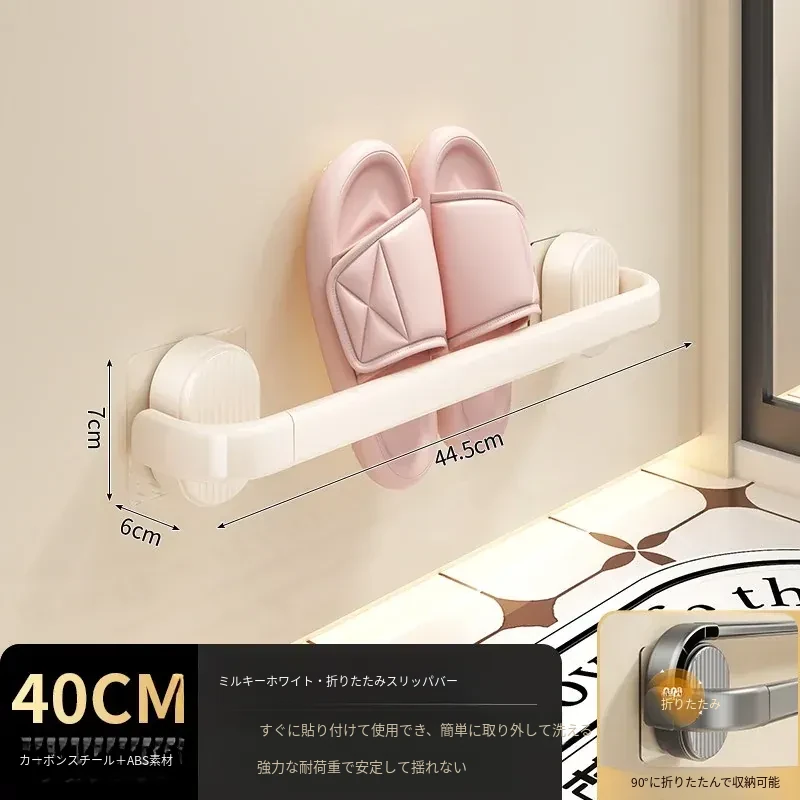 【クリーム-40cm】折りたたみスリッパ棒