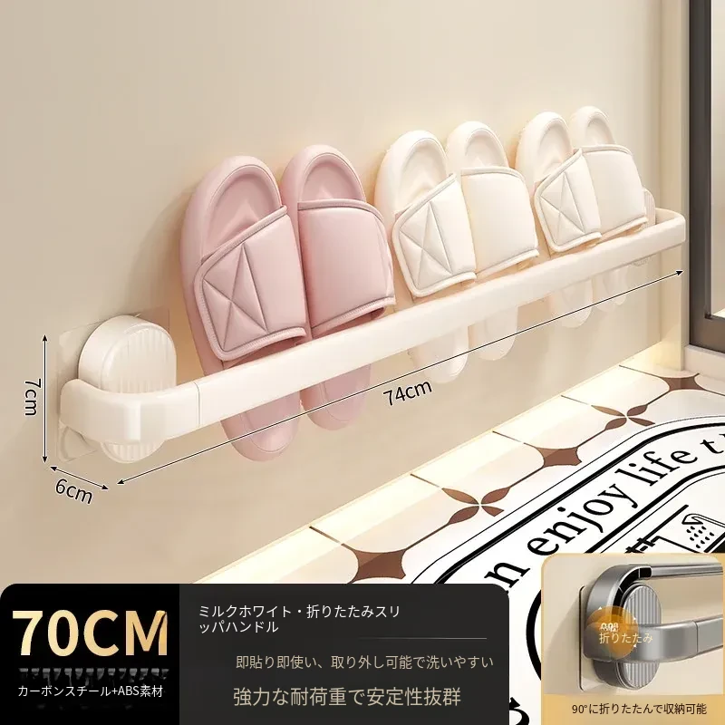 【クリーム-70cm】折りたたみスリッパ棒