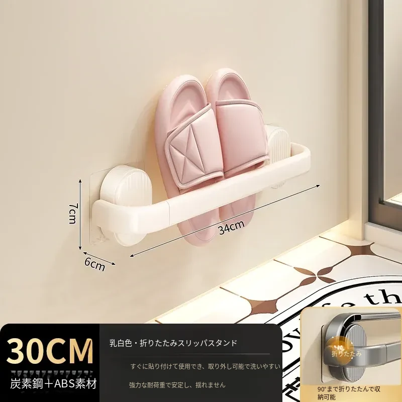 【クリーム-30cm】折りたたみスリッパ棒