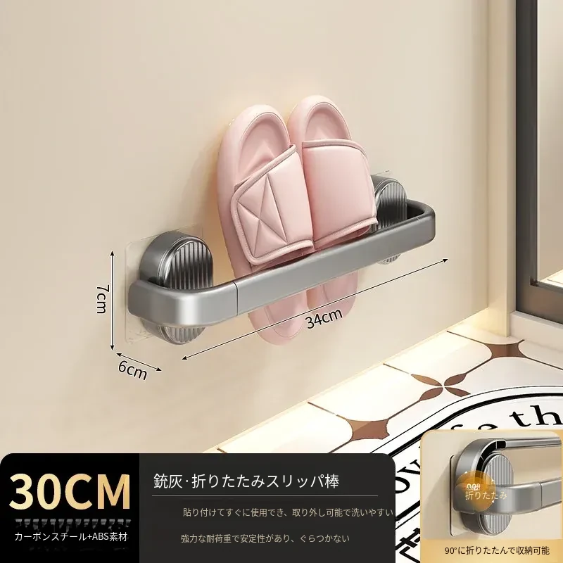 【グレー-30cm】折りたたみスリッパ棒