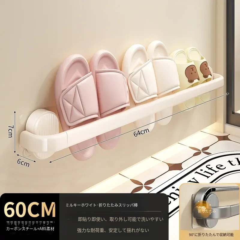 【クリーム-60cm】折りたたみスリッパ棒