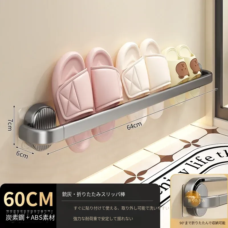 【グレー-70cm】折りたたみスリッパ棒