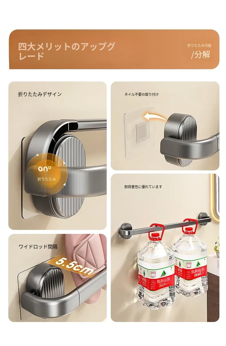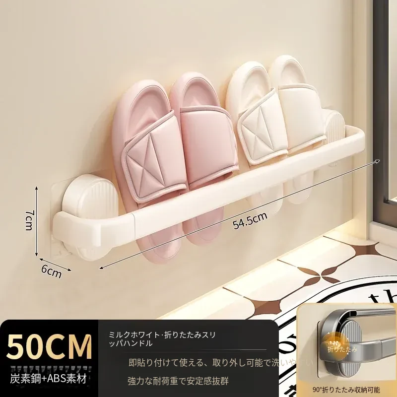 【クリーム-50cm】折りたたみスリッパ棒
