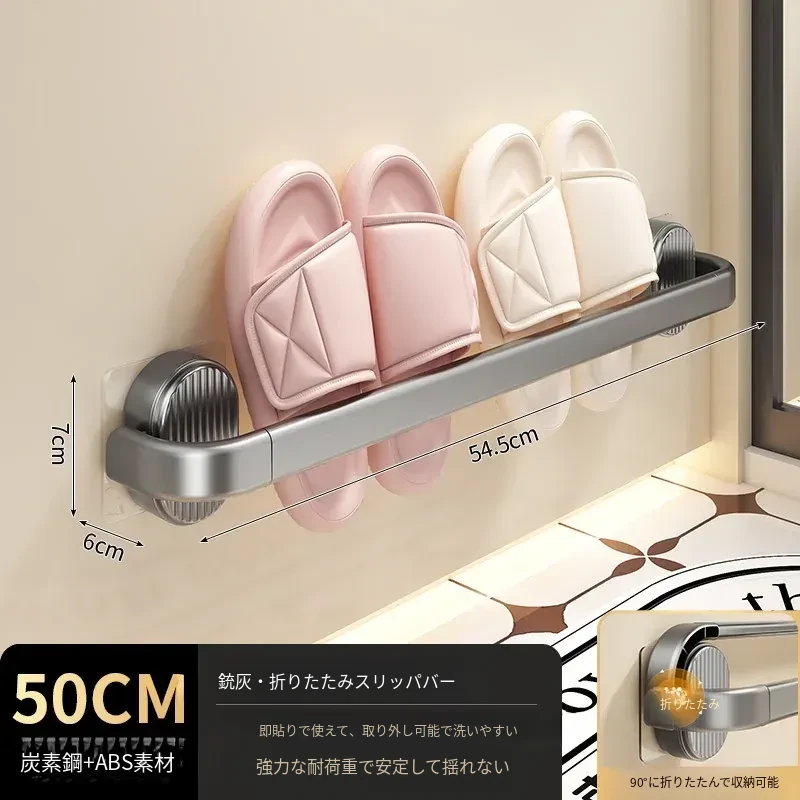 【グレー-50cm】折りたたみスリッパ棒