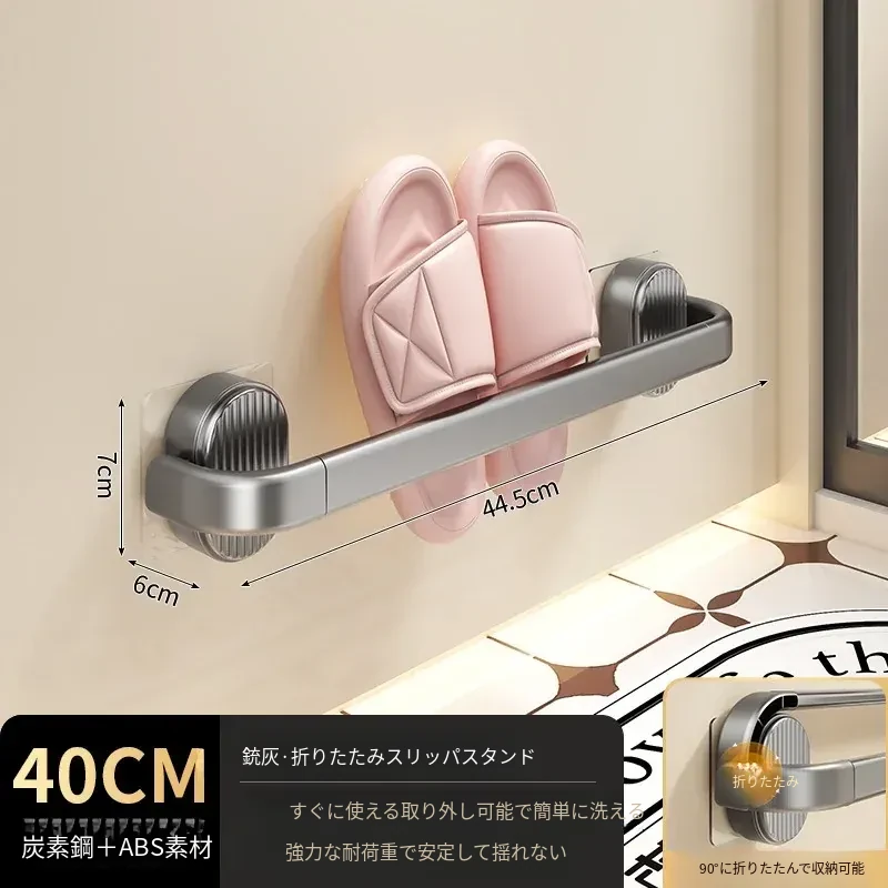 【グレー-40cm】折りたたみスリッパ棒