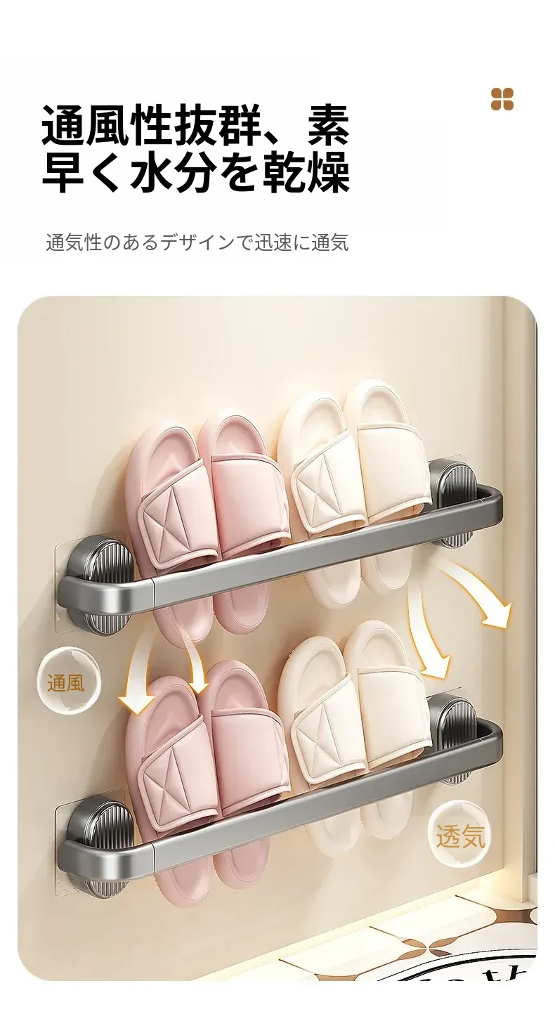 バスルームスリッパラック 取り付け不要の収納棚 トイレやシャワーで活躍する水切りハンガー 靴の整理に最適な便利アイテム!