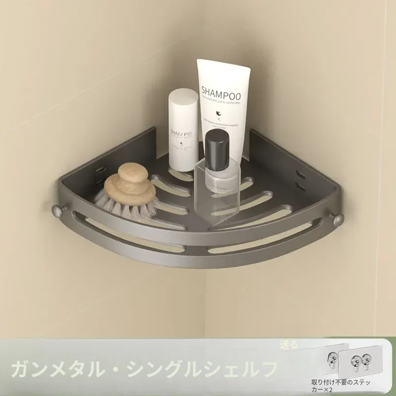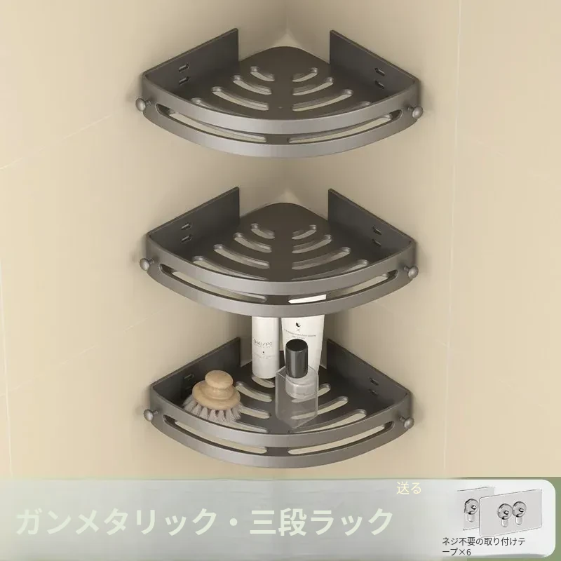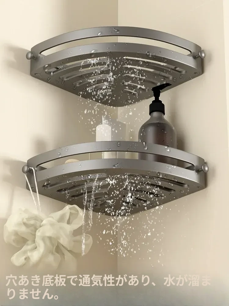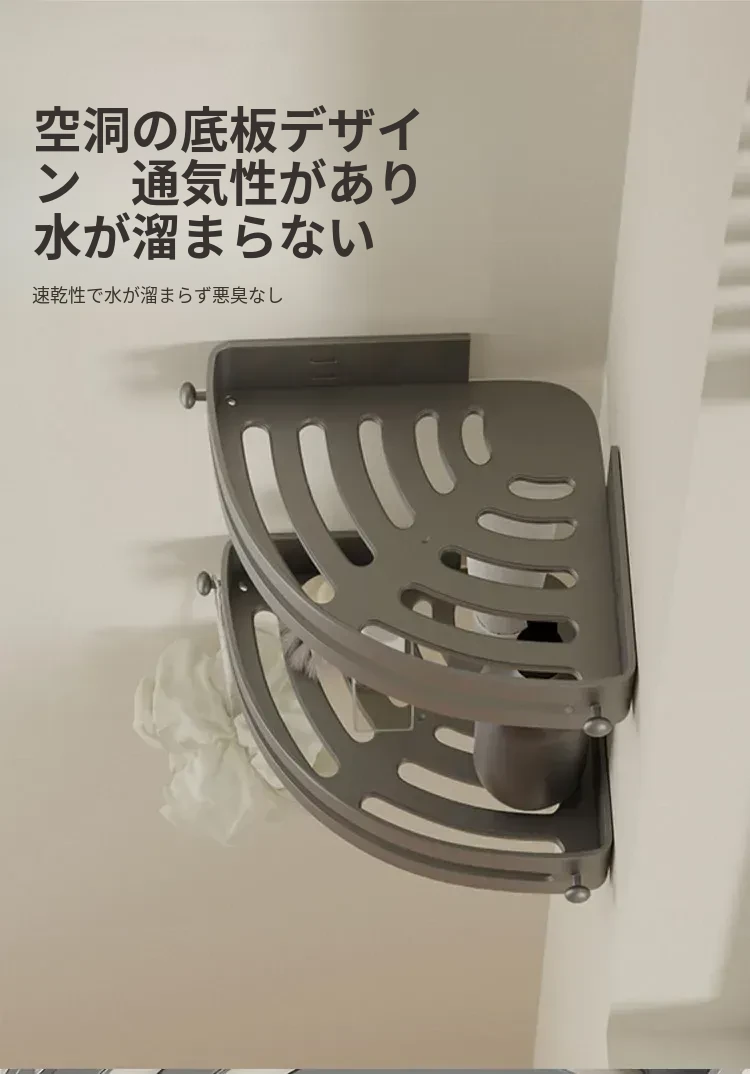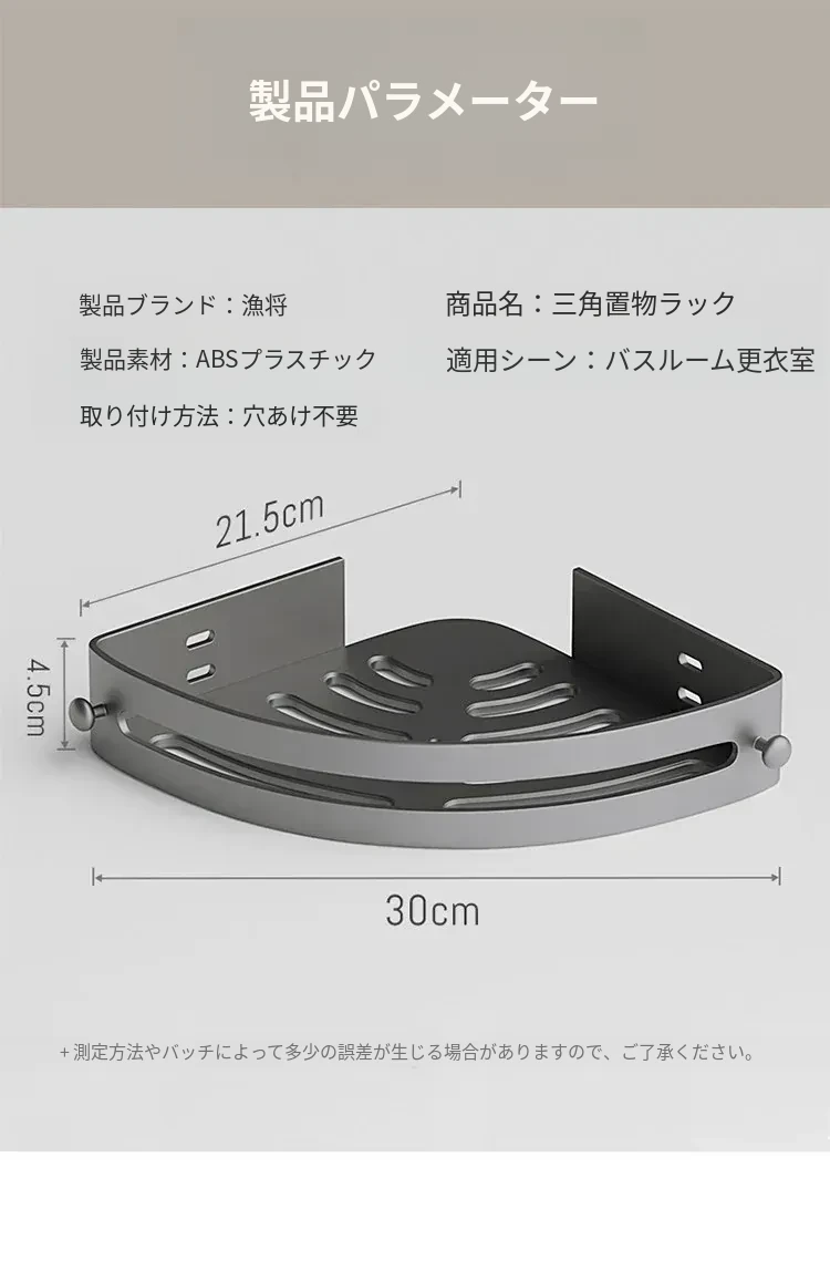 バスルーム用三角形収納シェルフ|トイレ・洗面台用壁掛けコーナーラック|簡単取り付け、穴あけ不要!おしゃれでスッキリ整理整頓!