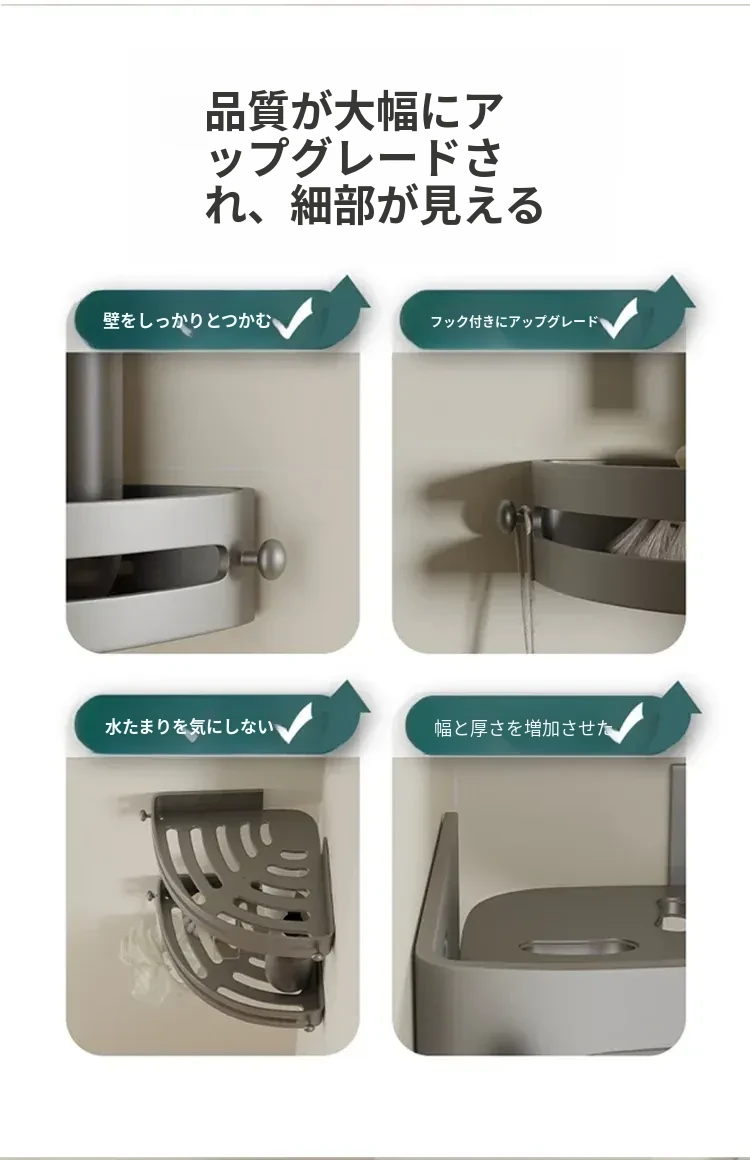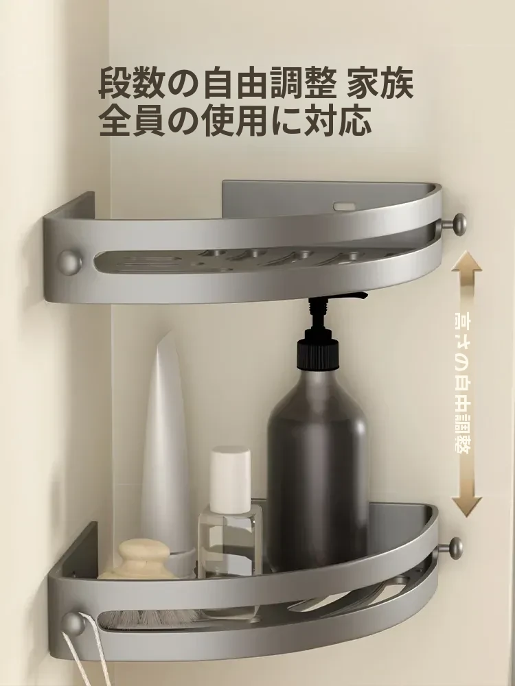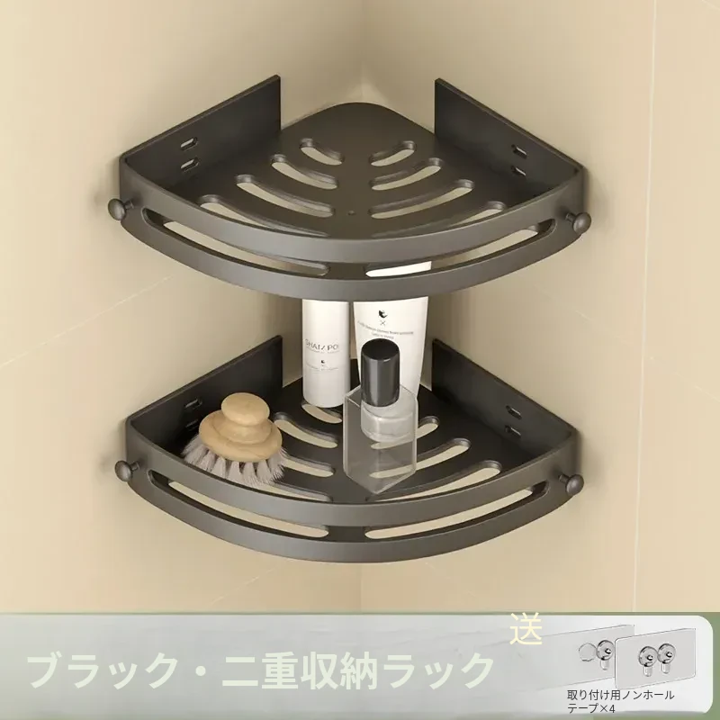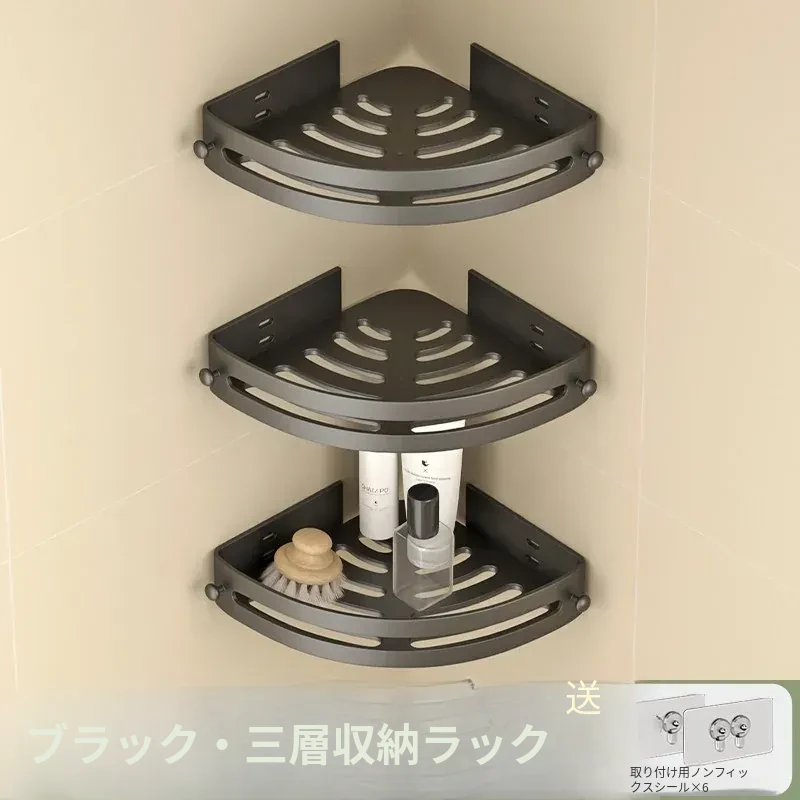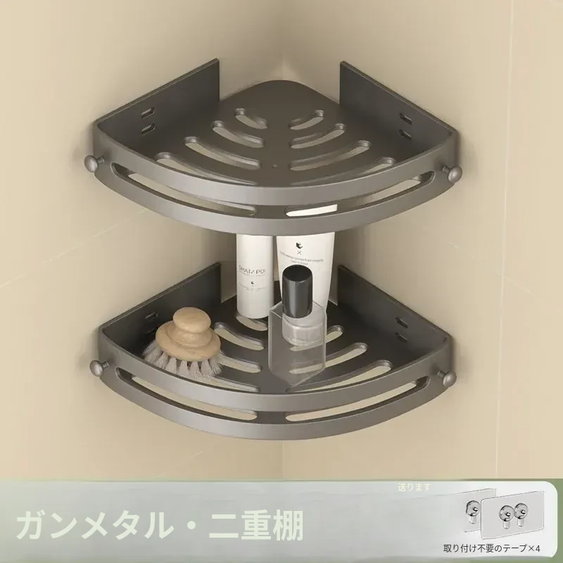 バスルーム用三角形収納シェルフ|トイレ・洗面台用壁掛けコーナーラック|簡単取り付け、穴あけ不要!おしゃれでスッキリ整理整頓!
