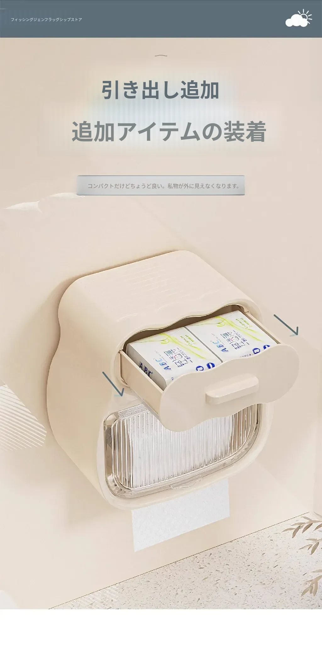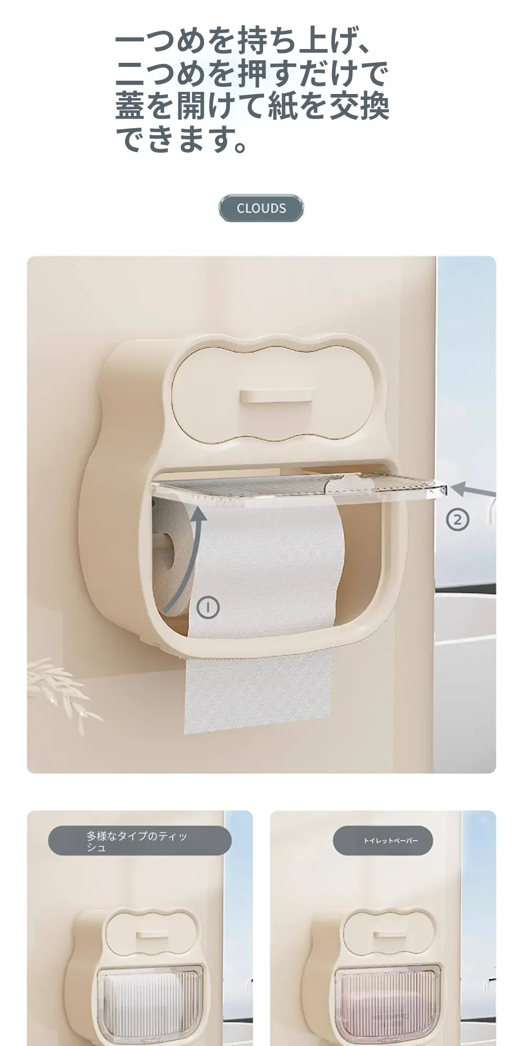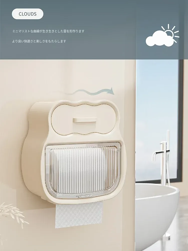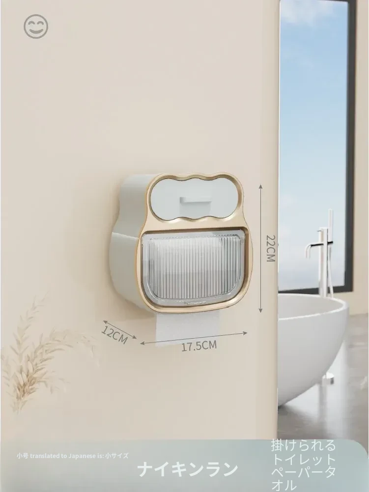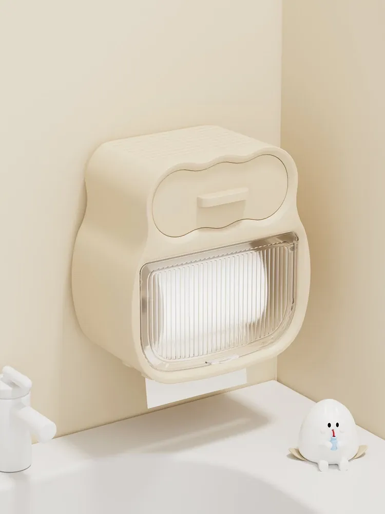 クリーム風バスルーム用トイレットペーパー収納ボックス 壁掛けタイプでスマートに整理整頓!トイレを洗練された空間に変えるアイテムです。