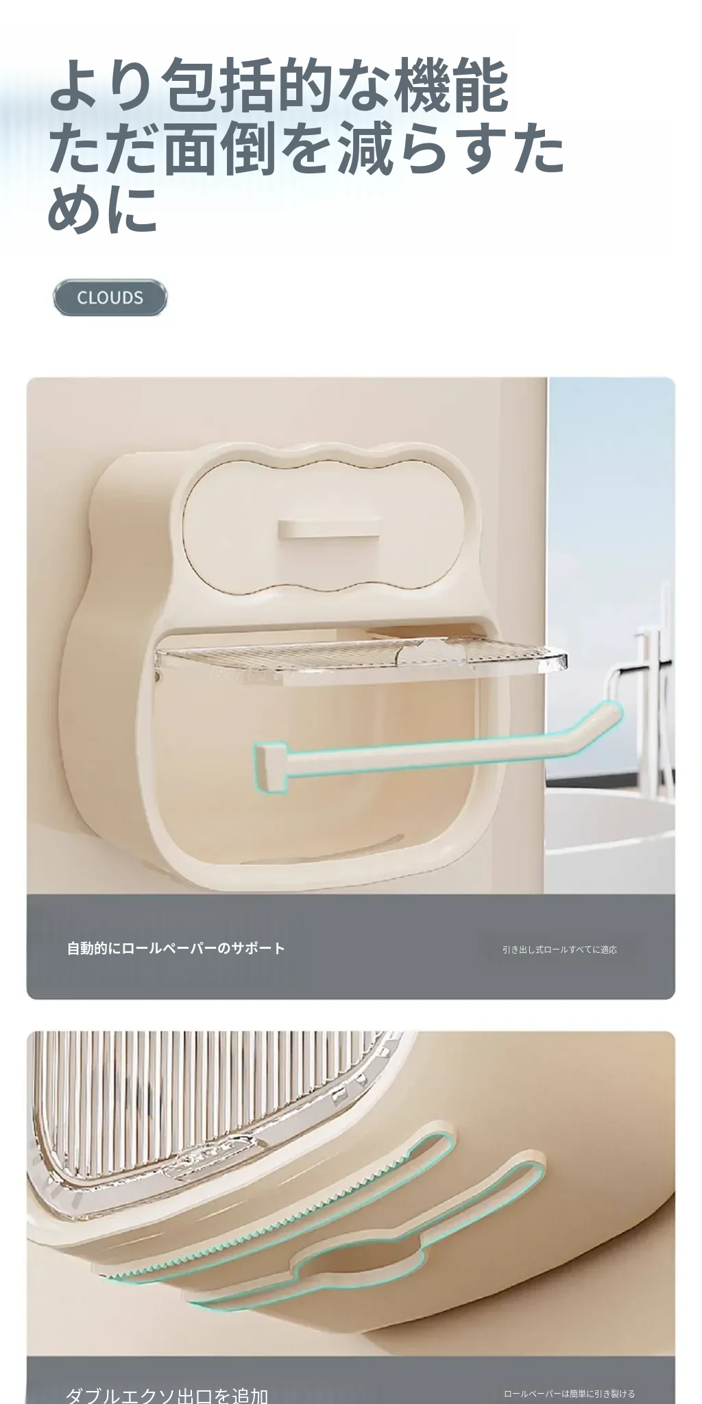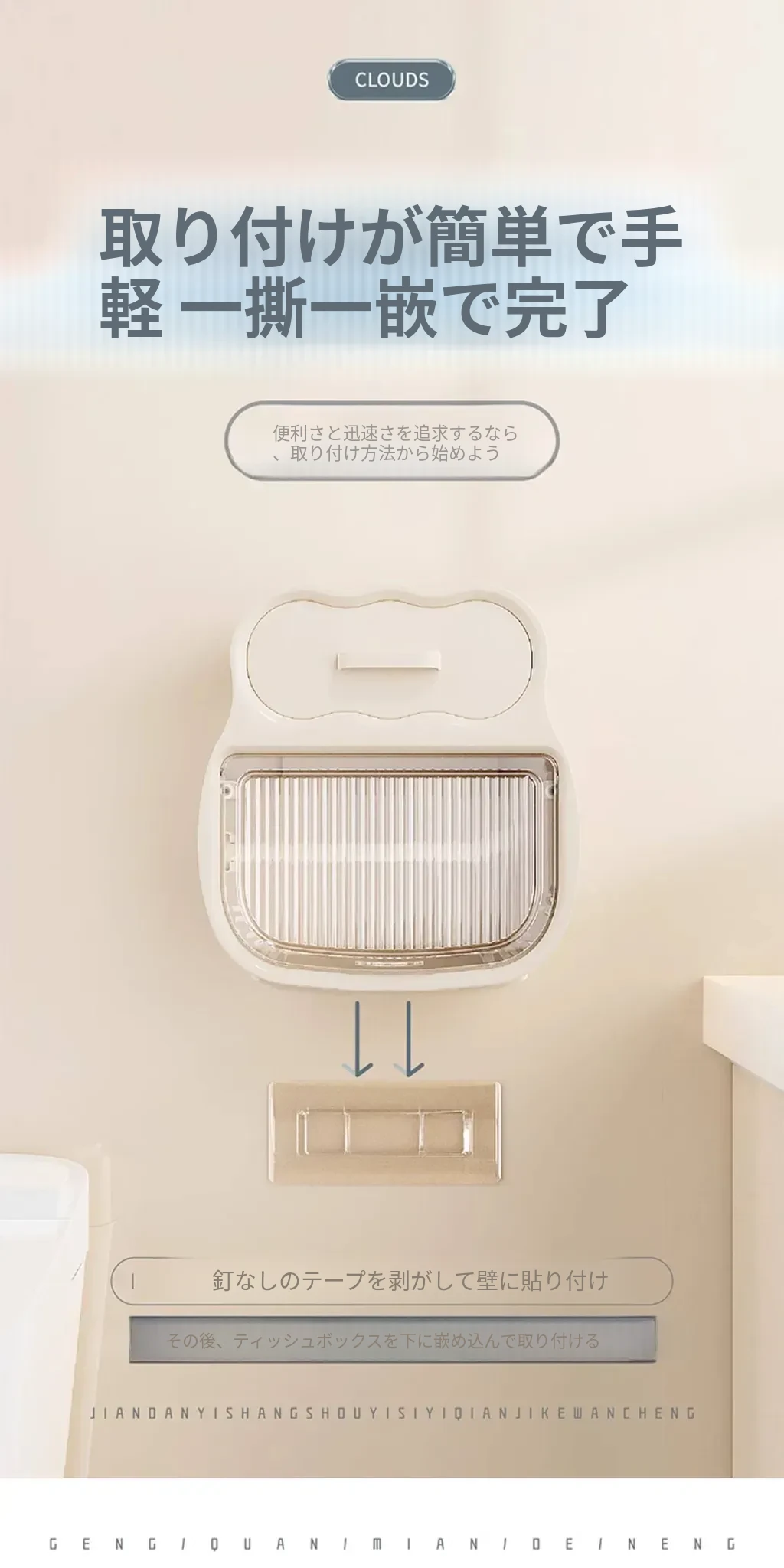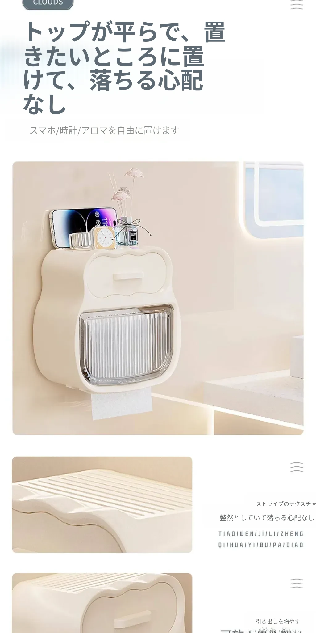クリーム風バスルーム用トイレットペーパー収納ボックス 壁掛けタイプでスマートに整理整頓!トイレを洗練された空間に変えるアイテムです。