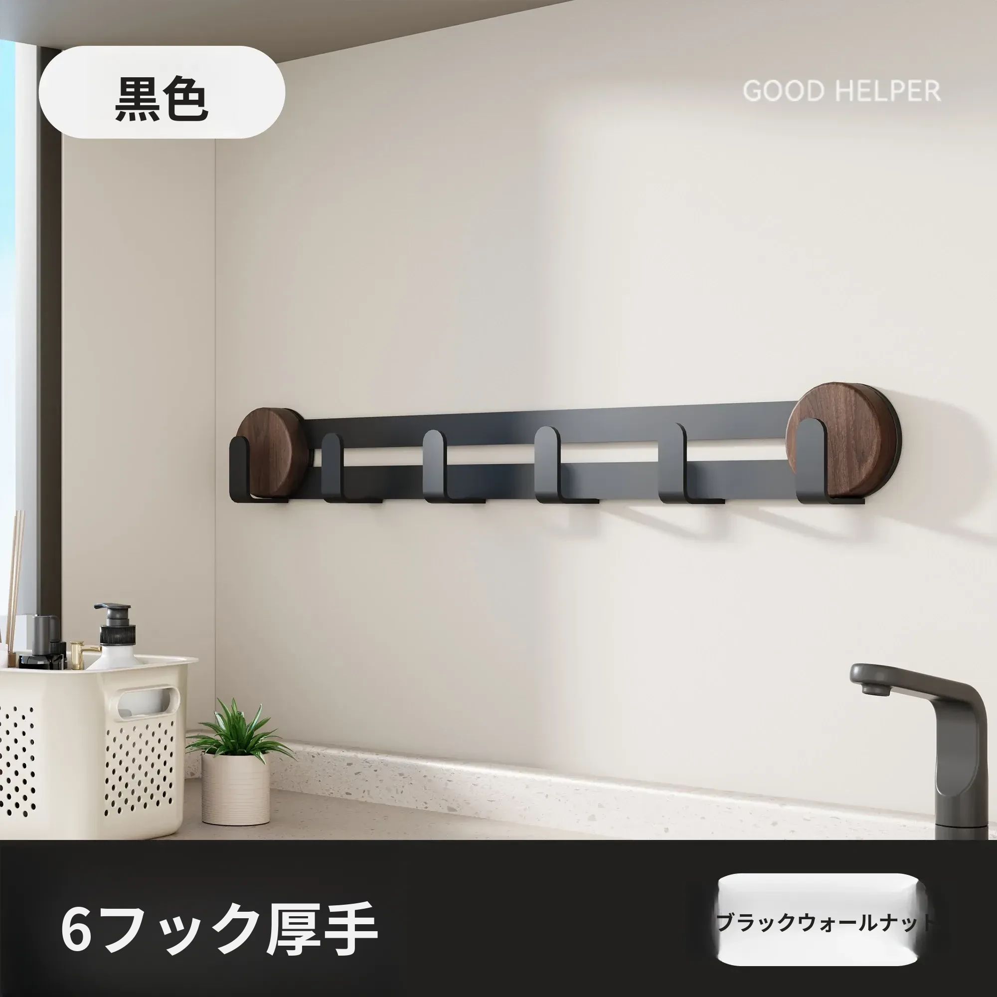 ブラック - ウォールナット【吸盤フック6フック】