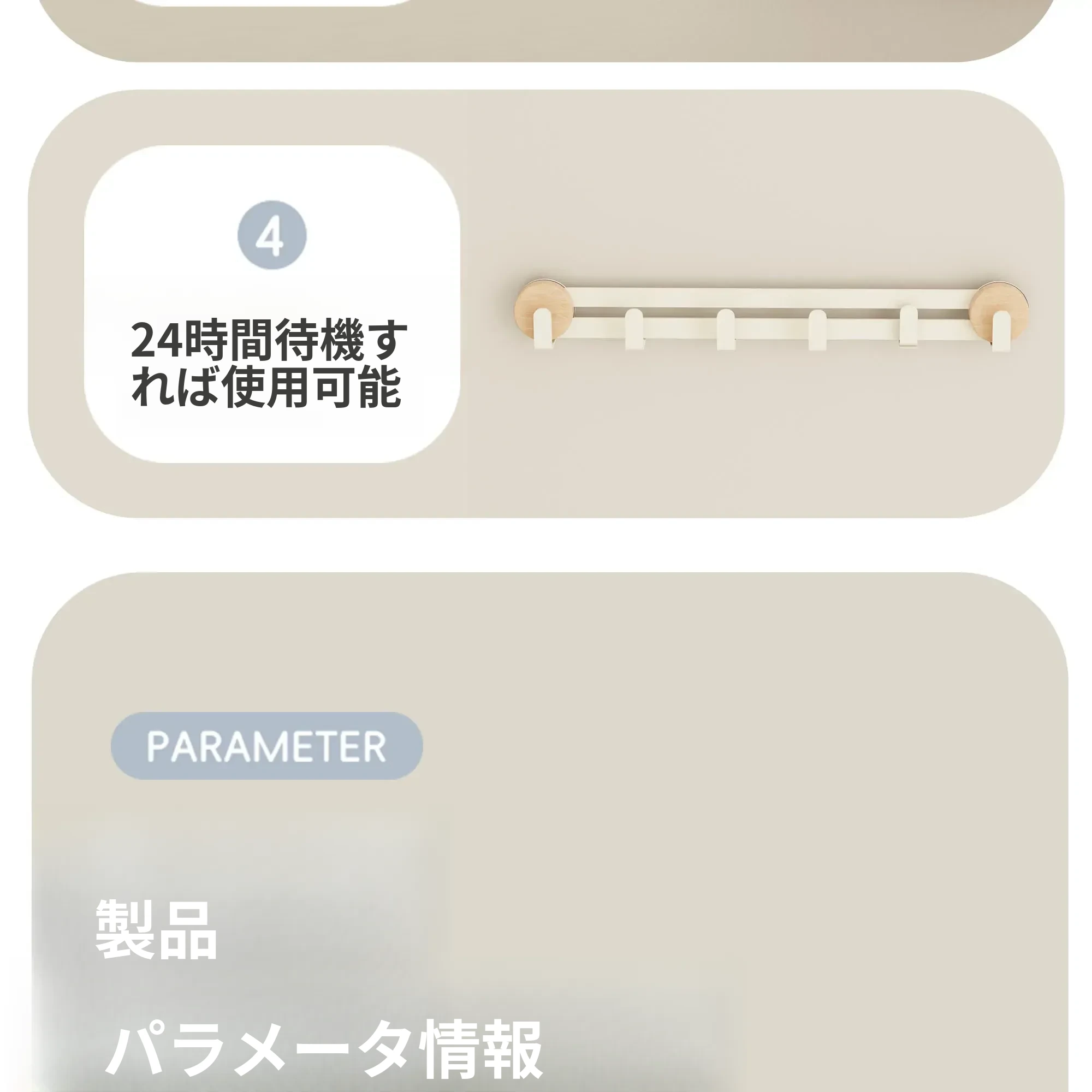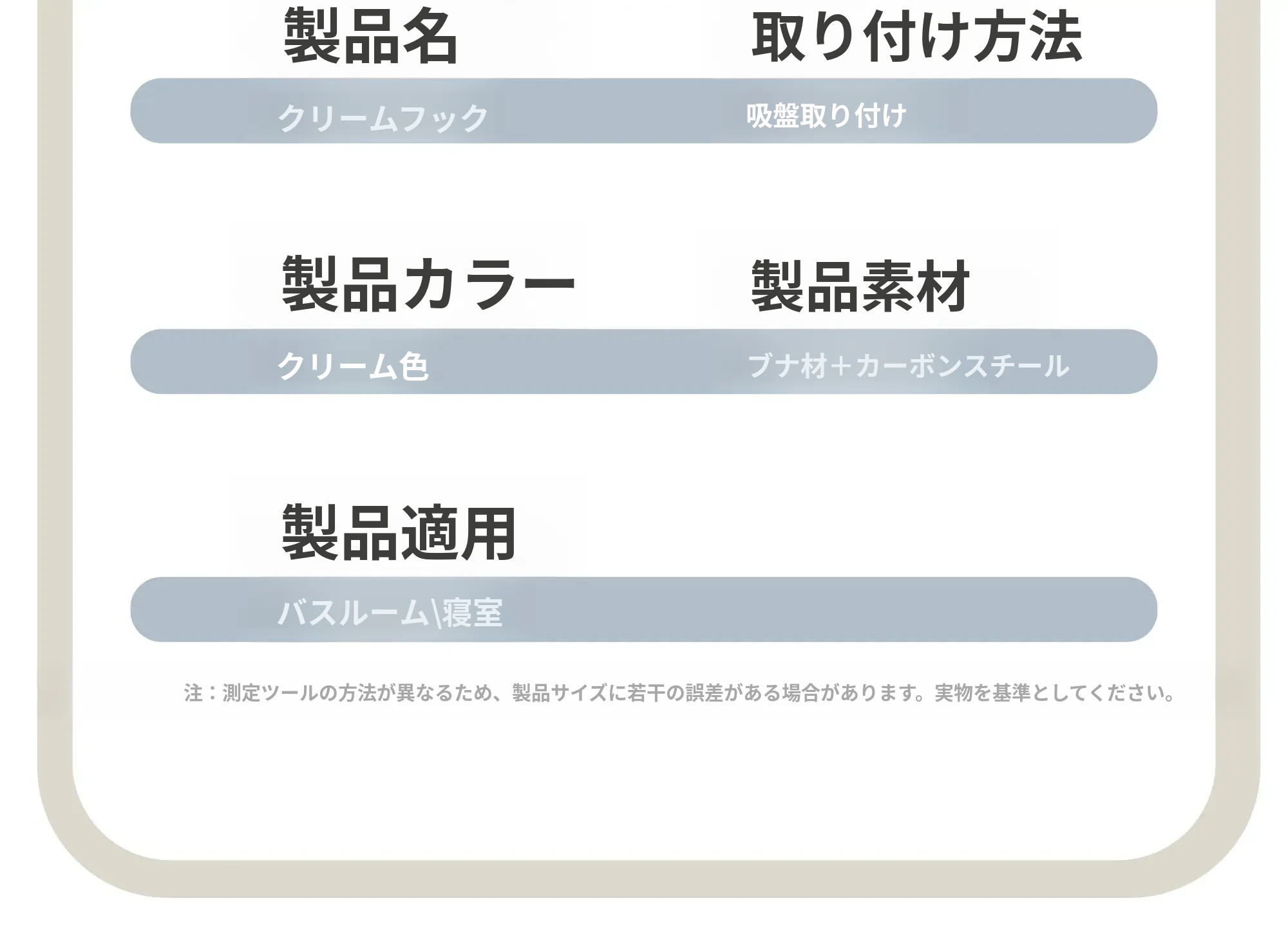 クリーム - ブナ【吸盤フック4フック】