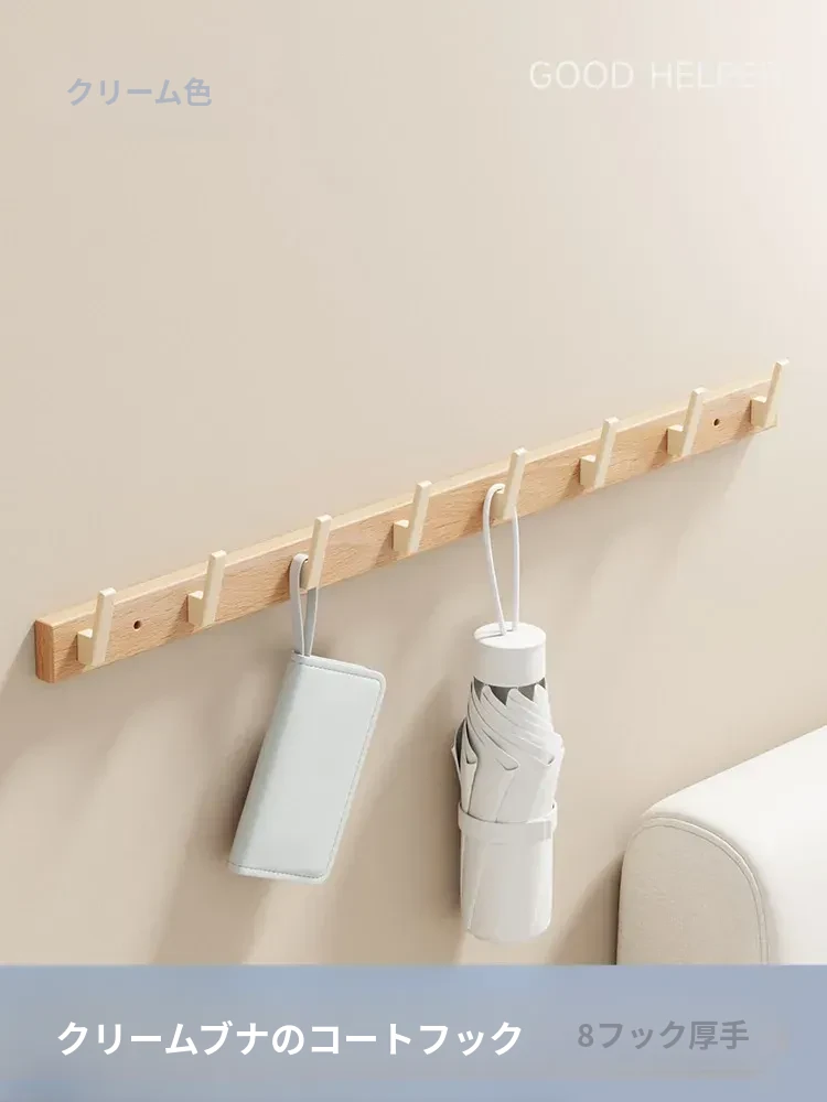 クリームビーチ【シンプルな四角形のコートフック8フック】