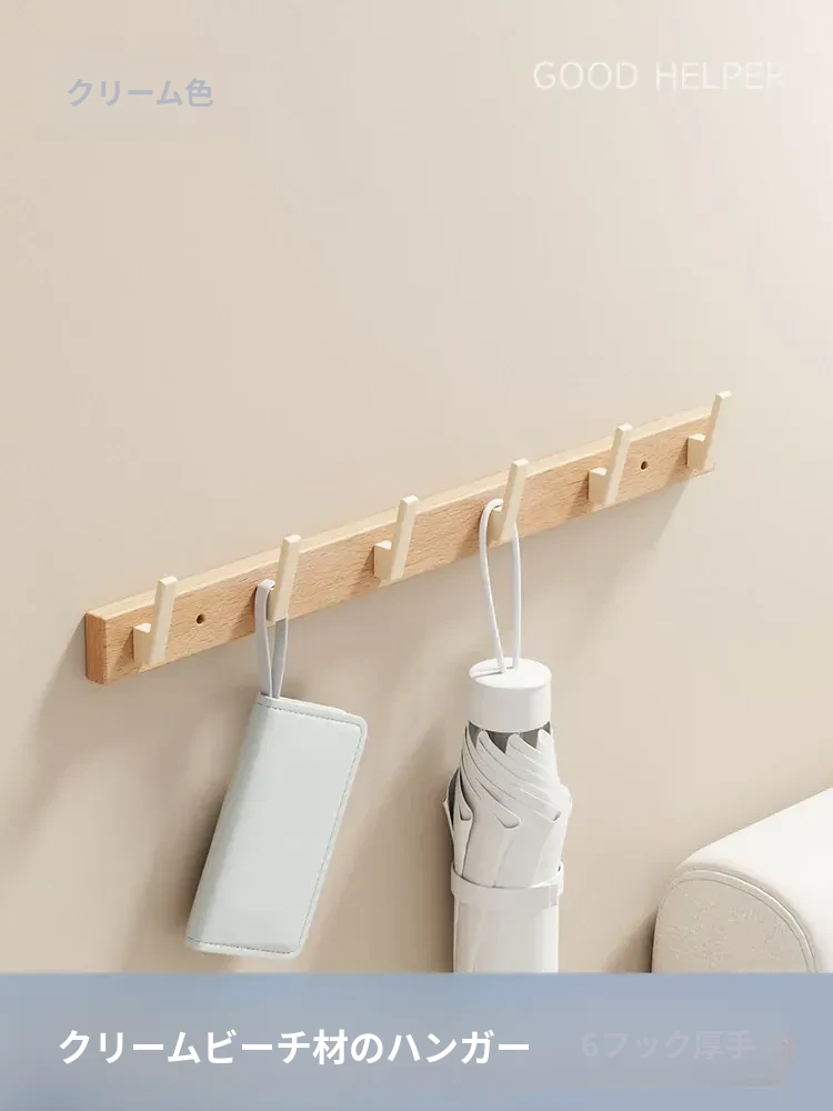 クリームビーチ【シンプルな四角形のコートフック6フック】