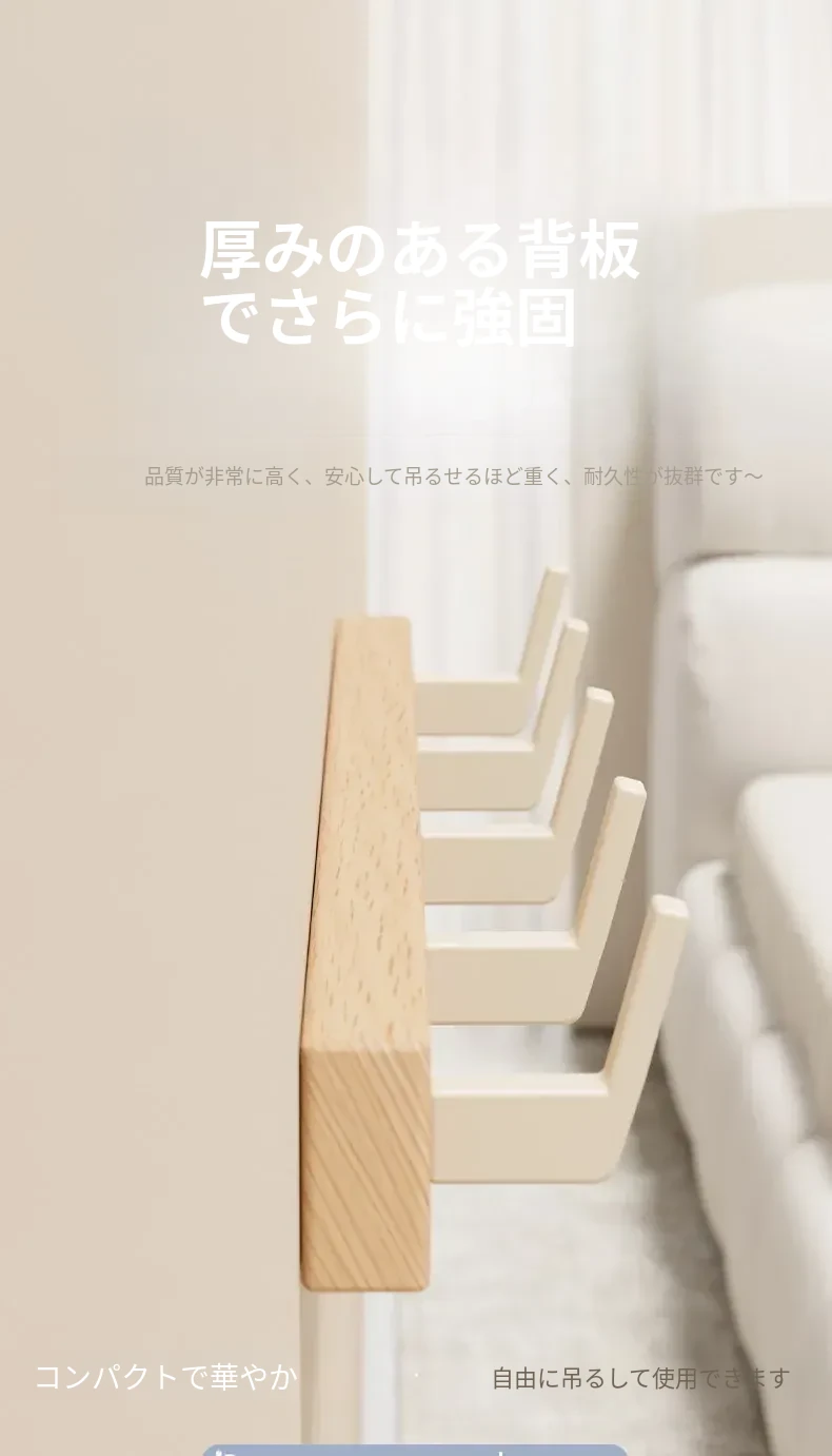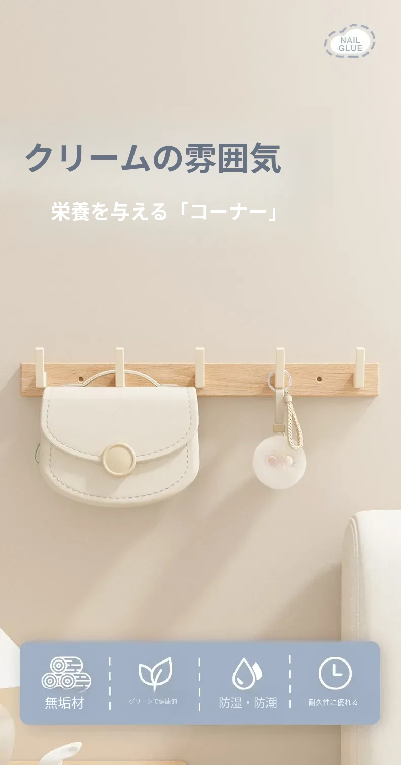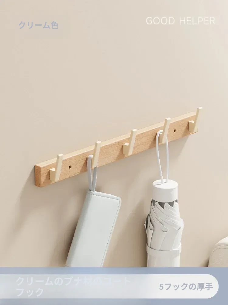 クリームビーチ【シンプルな四角形のコートフック5フック】