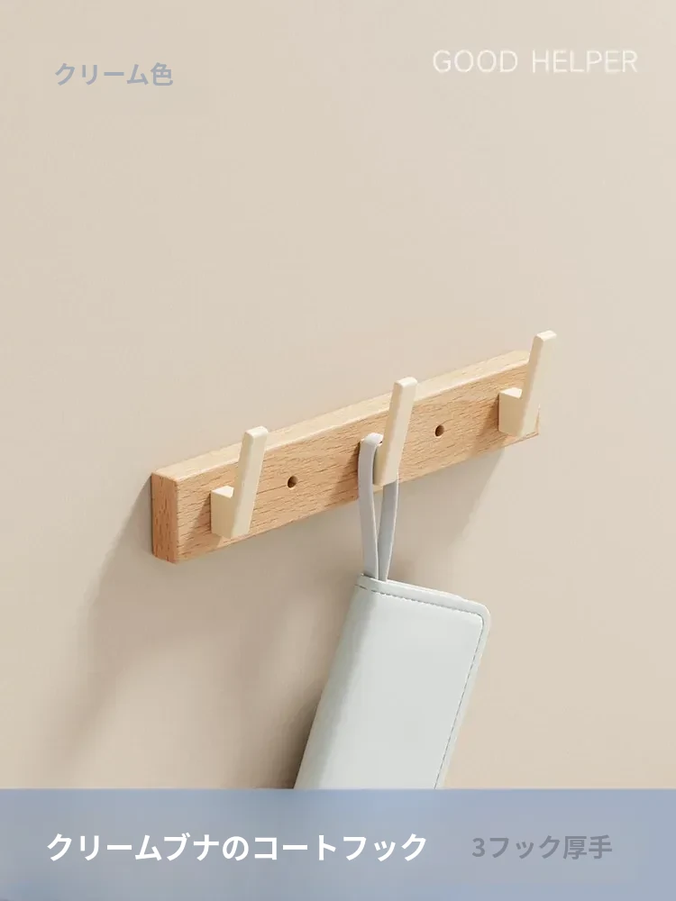 クリームビーチ【シンプルな四角形のコートフック3フック】