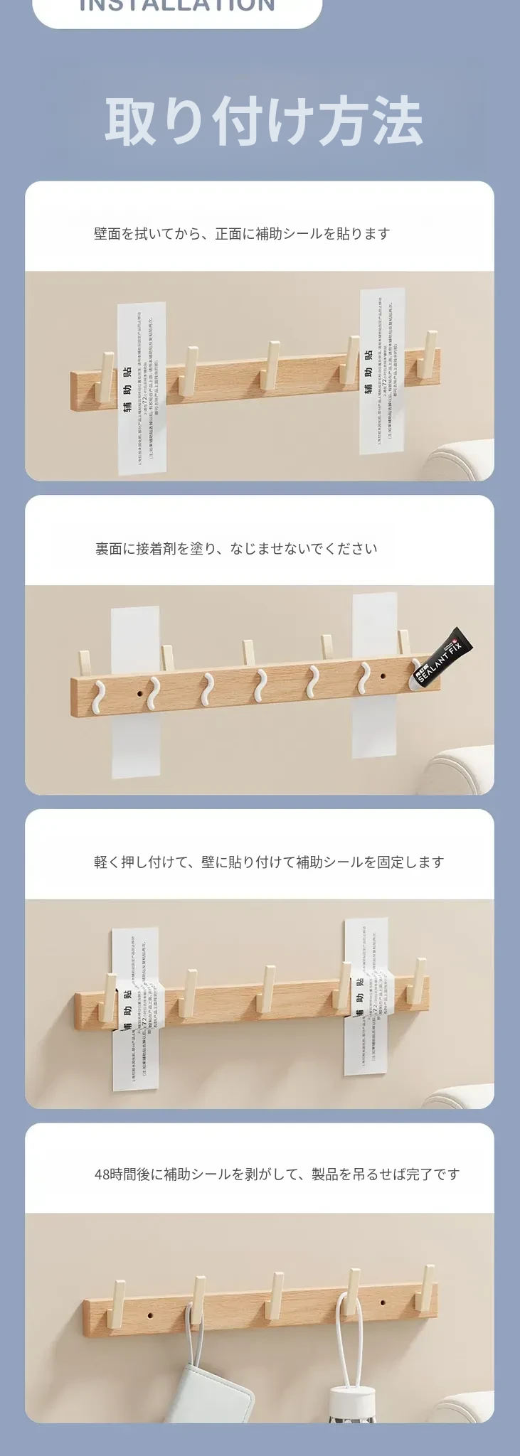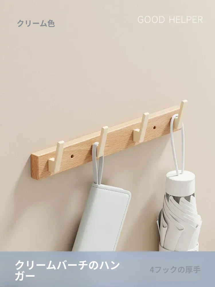 クリームビーチ【シンプルな四角形のコートフック4フック】