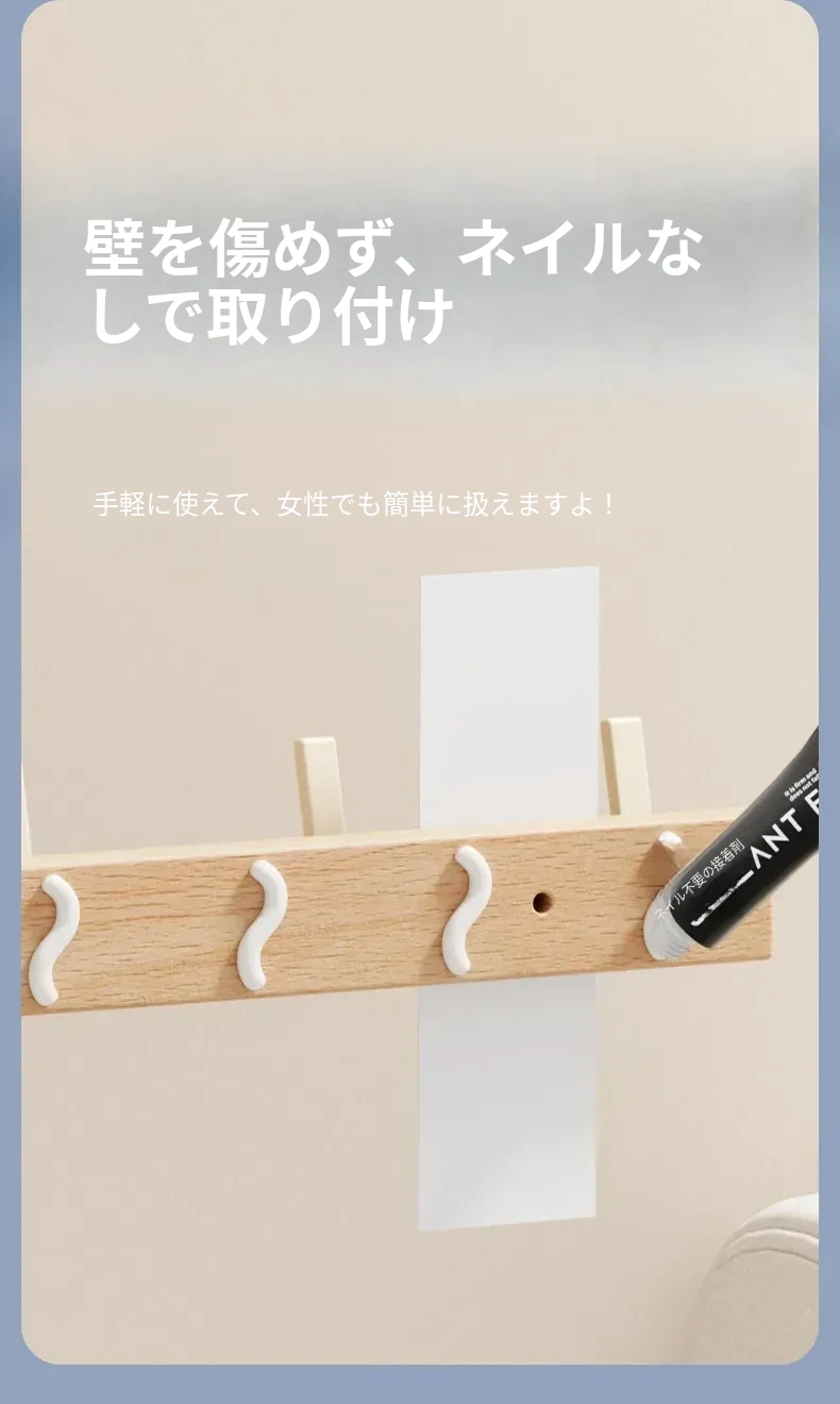 クリーム風の掛け衣フック・ハンガー ドア裏フック 穴あけ不要のコートハンガー アイデア壁掛けバッグハンガー ロングタイプで収納力抜群!
