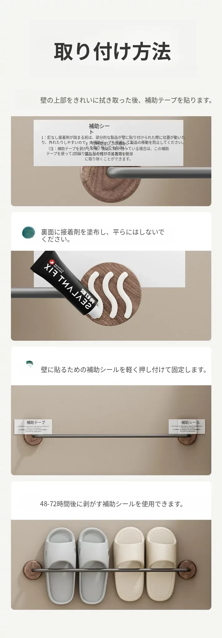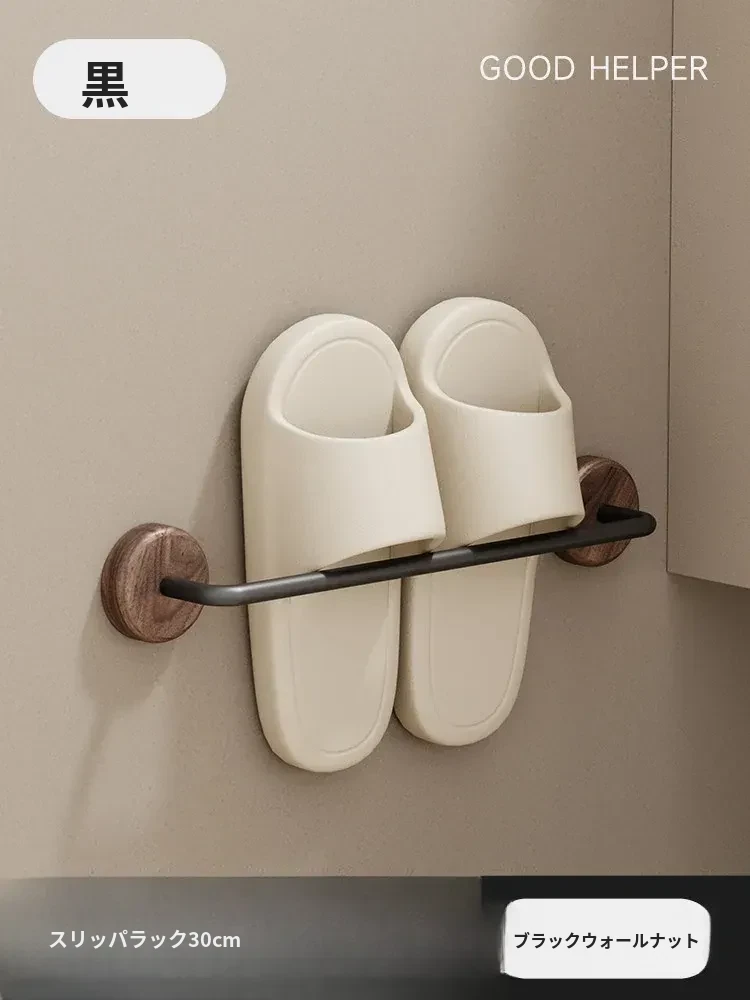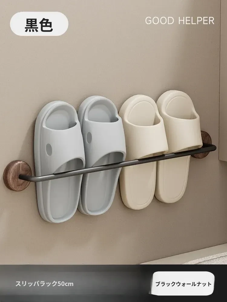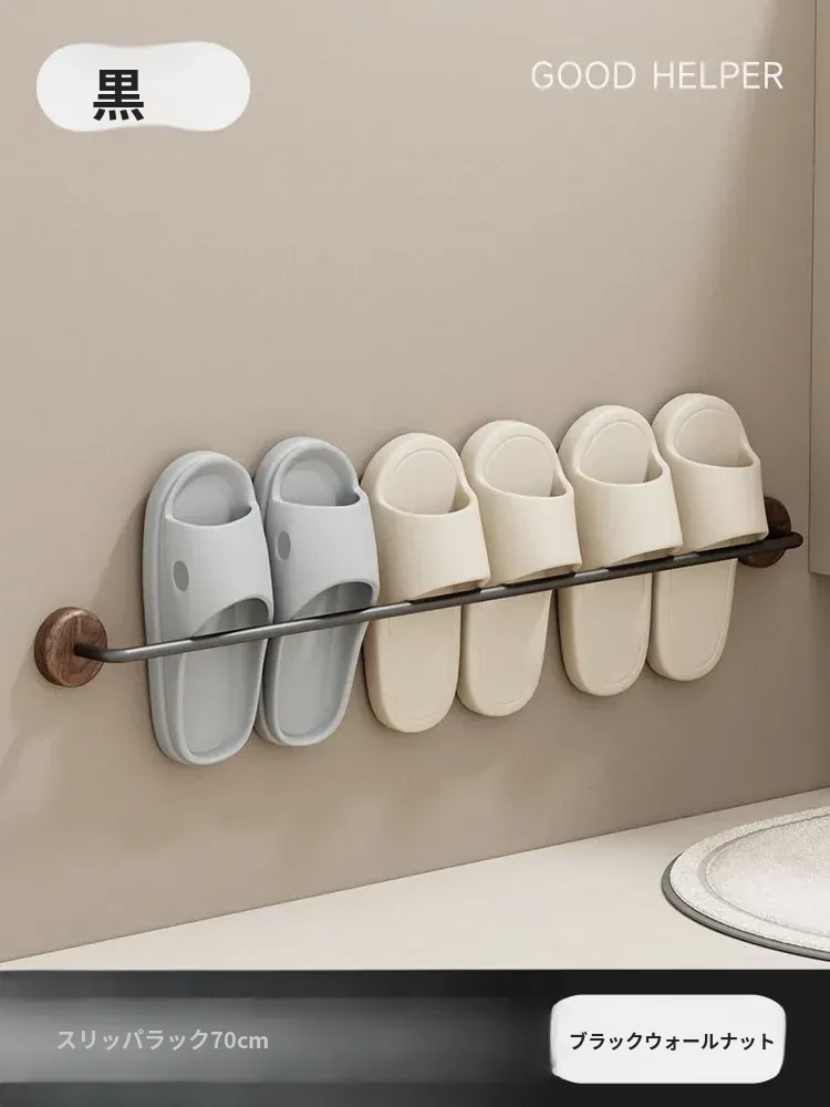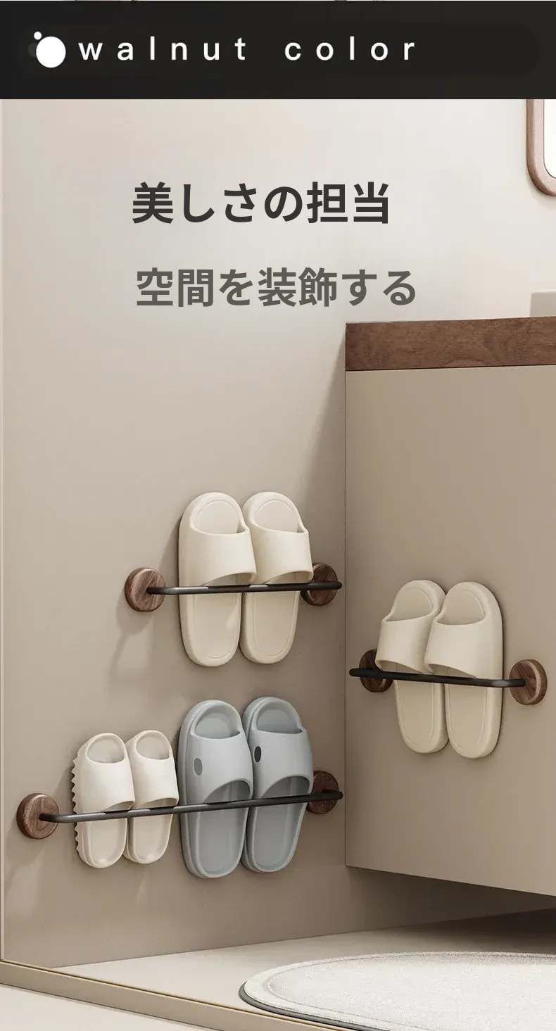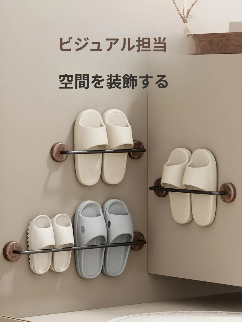 クリーム風の天然木製バスルームスリッパラック - 穴を開けずに簡単取り付け!衛生的な収納で、玄関やバスルームのスペースを有効活用。水切り機能付きで、靴を清潔に保つ便利アイテム!